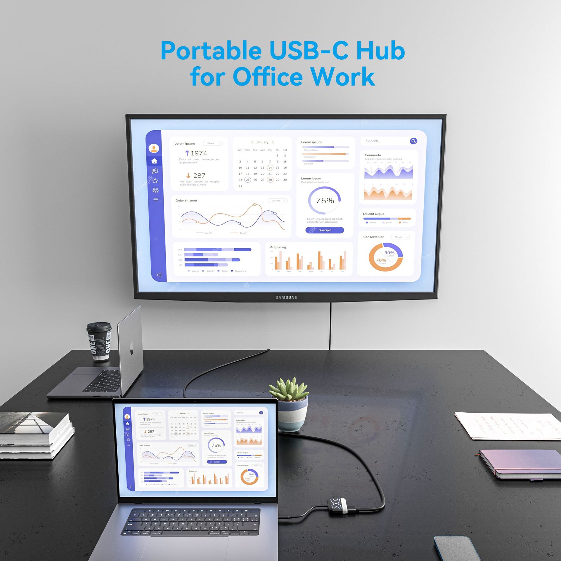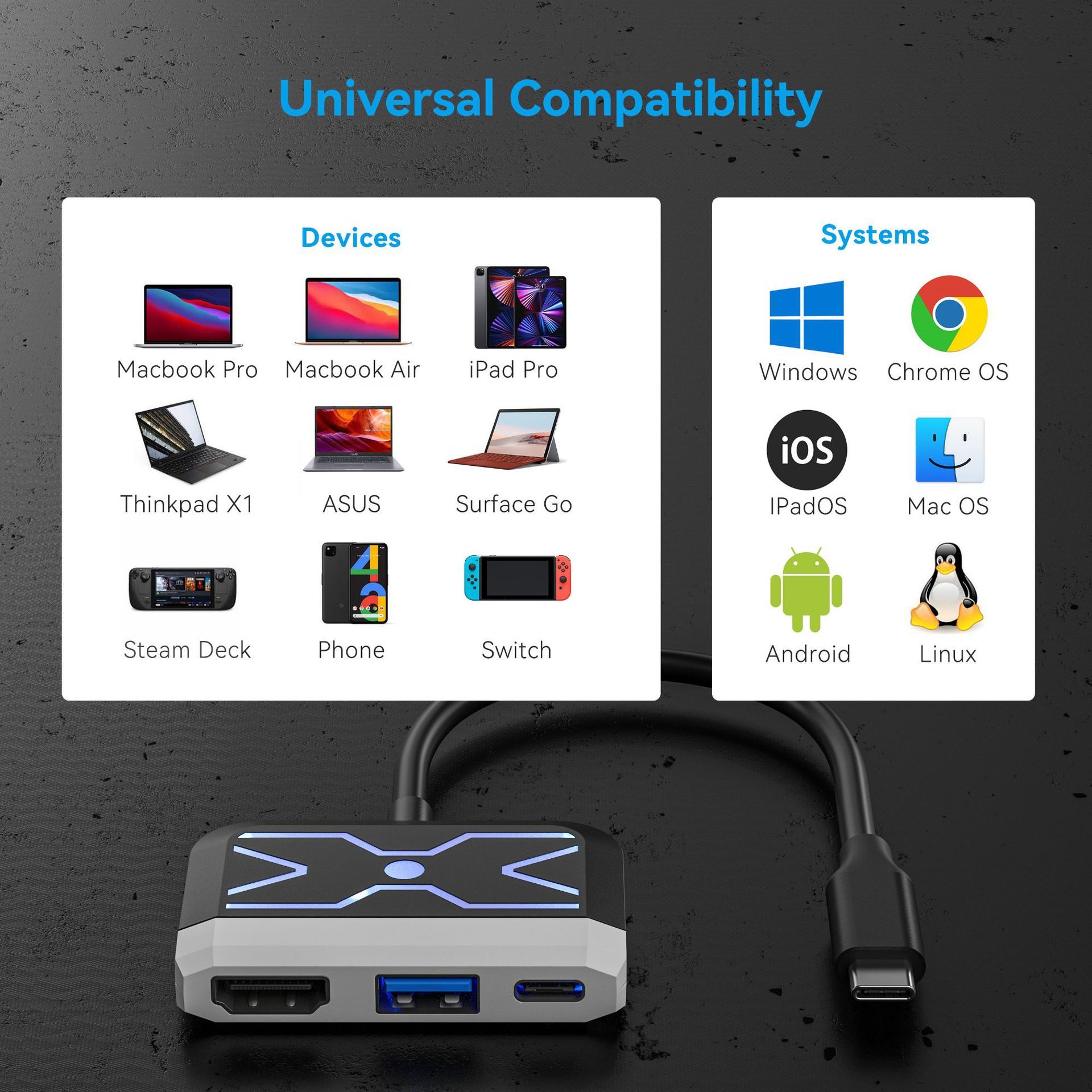 USB C 3 대 1 도킹 스테이션 지원 화면 충전 데이터 전송, 1 대 3 다기능 도킹 스테이션