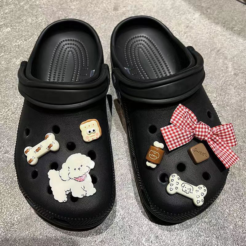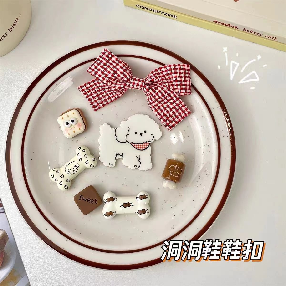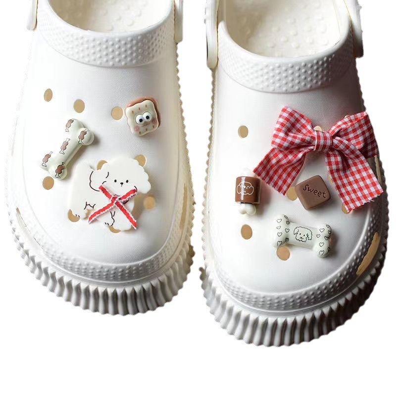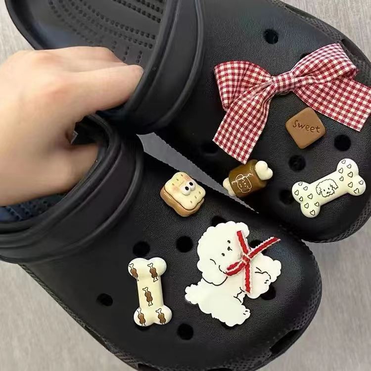 새로운 리본 강아지 신발 장식, DIY 탈부착 가능한 구멍 신발 액세서리, 귀여운 입체 장식품스토어 가기