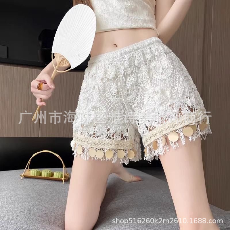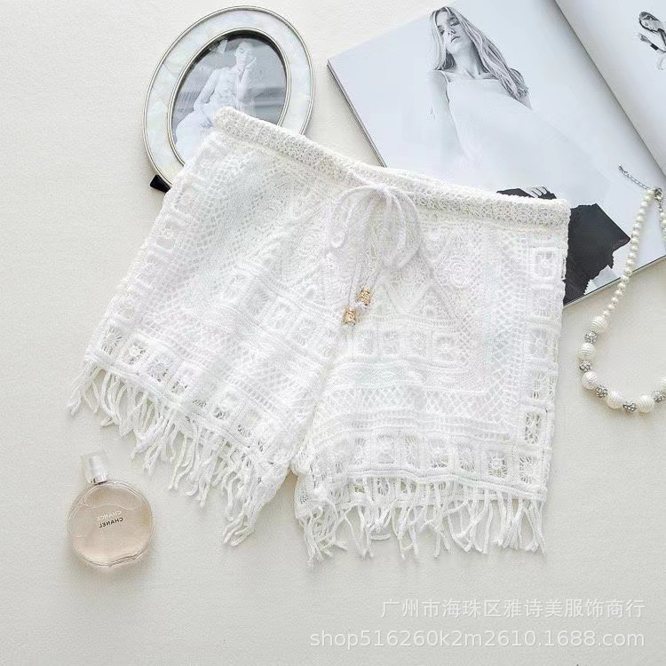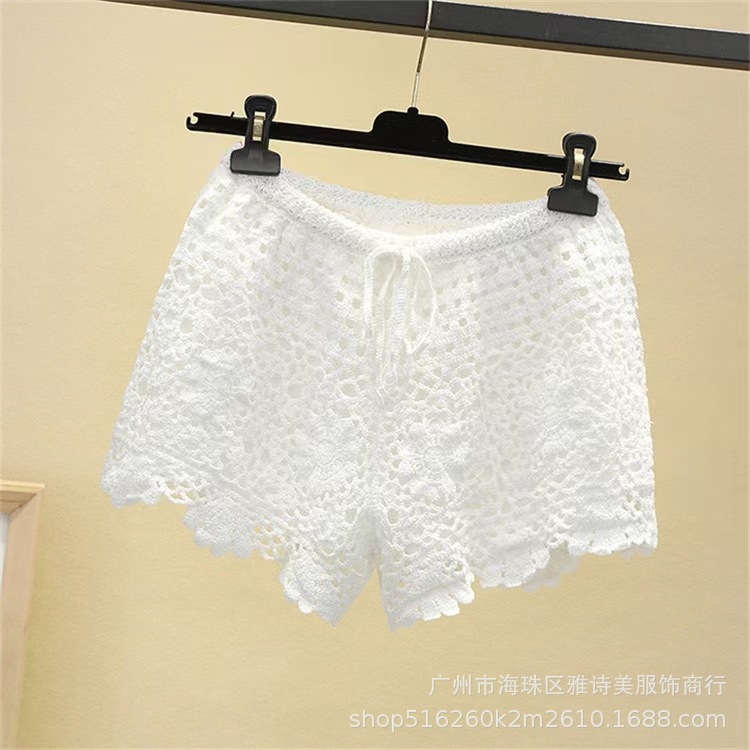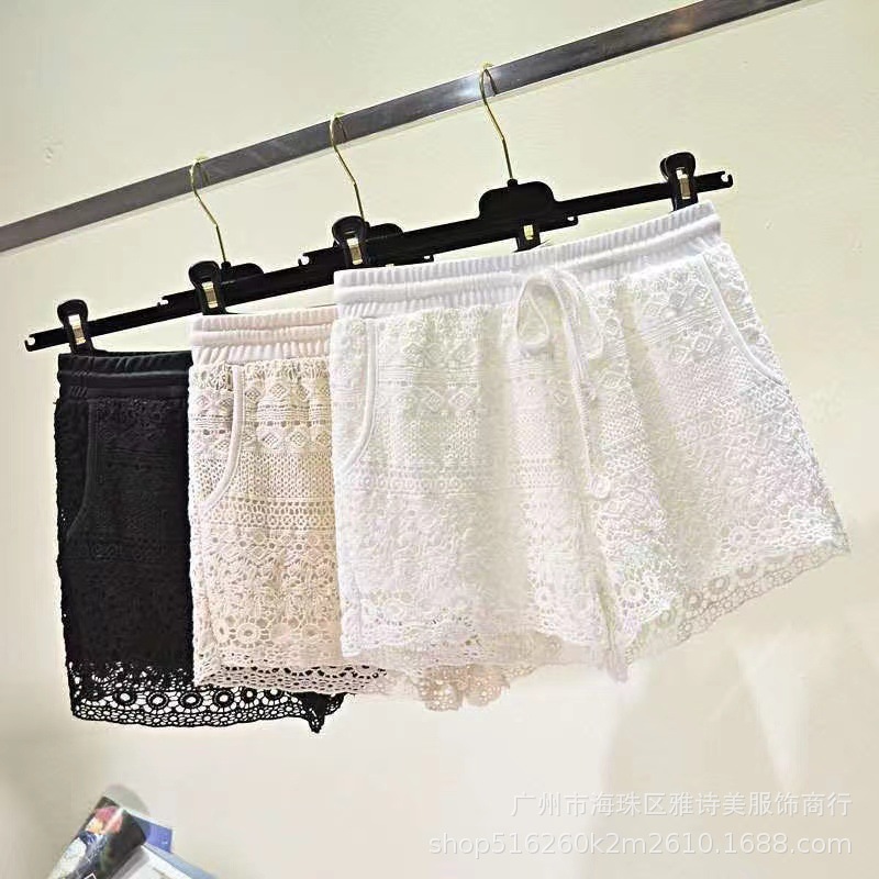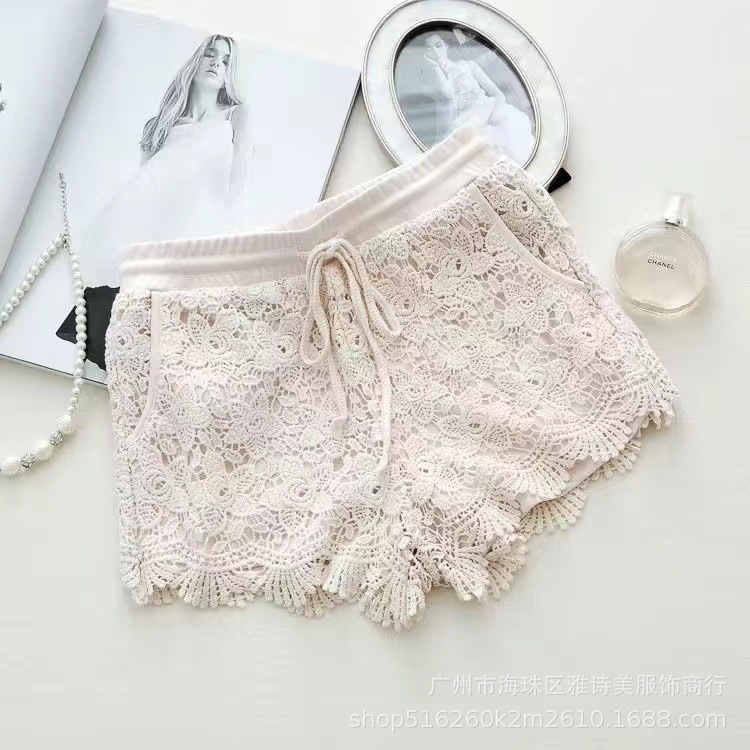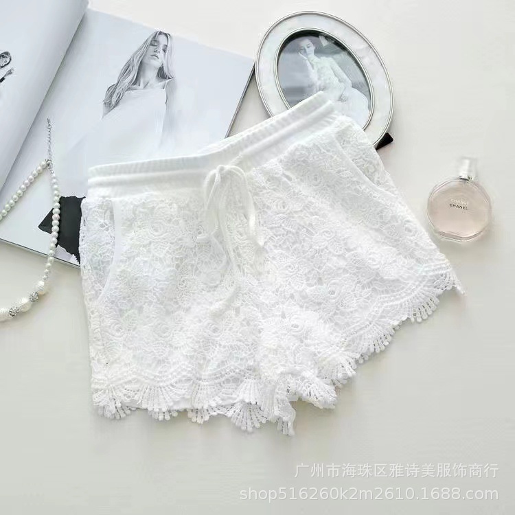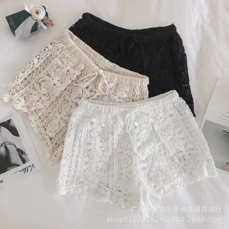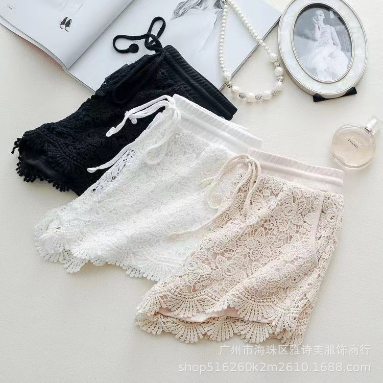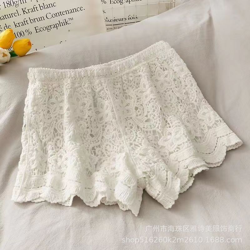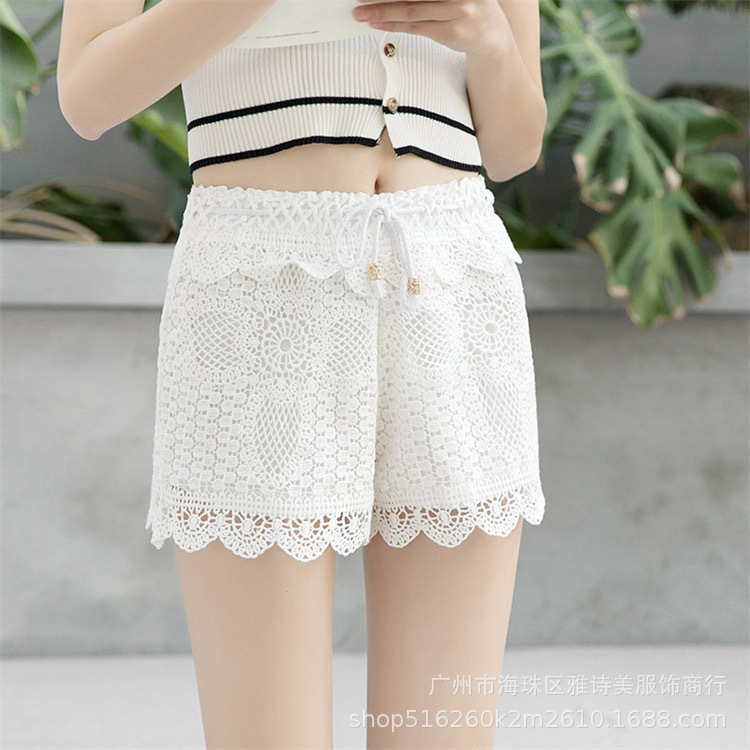 레이스 할로우 스포츠 반바지 여자 겨울 얇은 작은 외부 착용 높은 허리 안티 라이트 A 라인 넓은 다리 3 점 바지스토어 가기