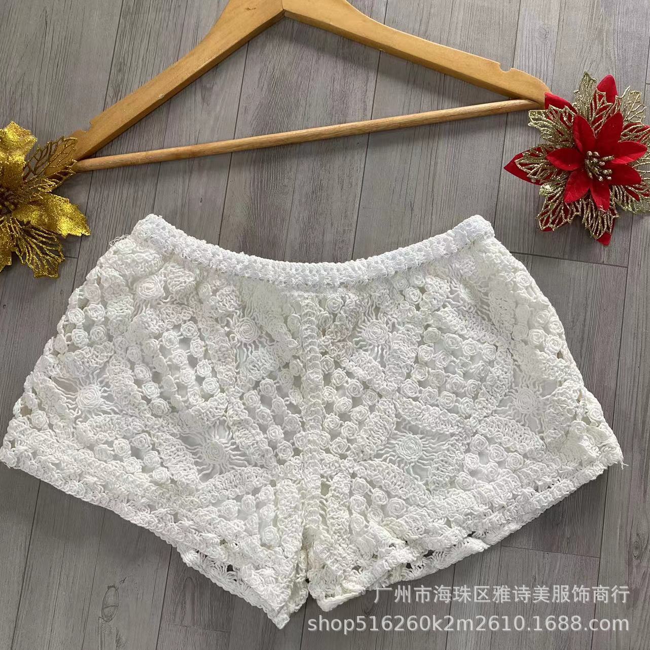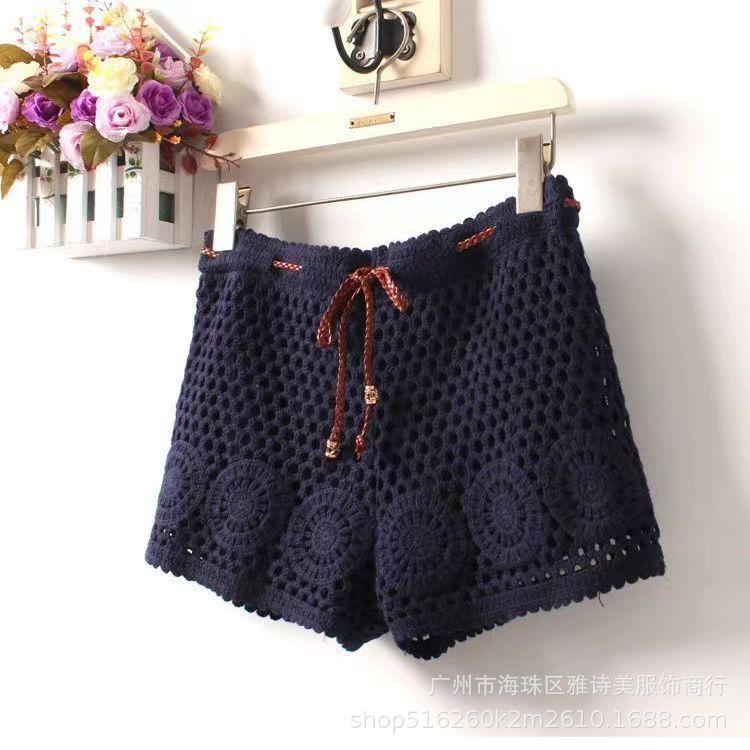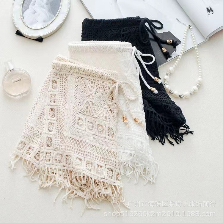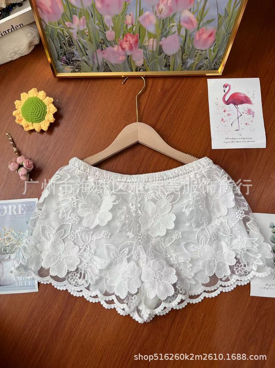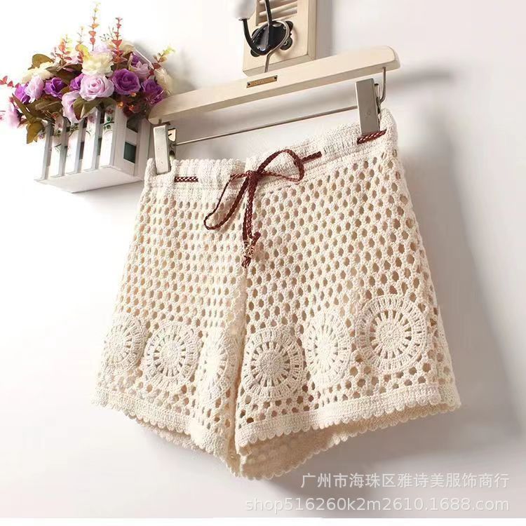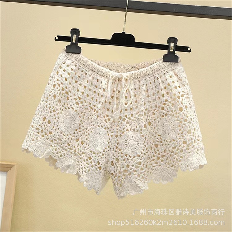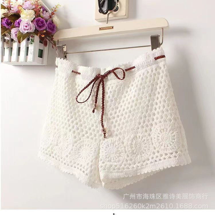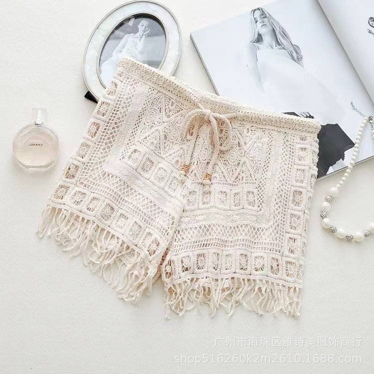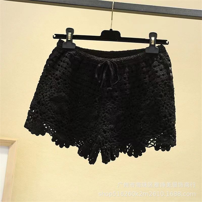 레이스 할로우 스포츠 반바지 여자 겨울 얇은 작은 외부 착용 높은 허리 안티 라이트 A 라인 넓은 다리 3 점 바지스토어 가기