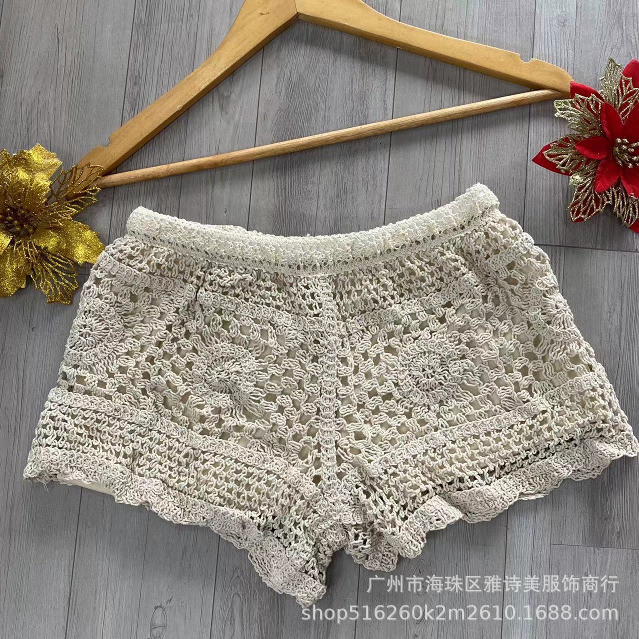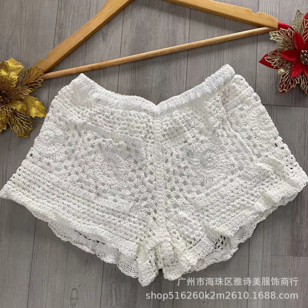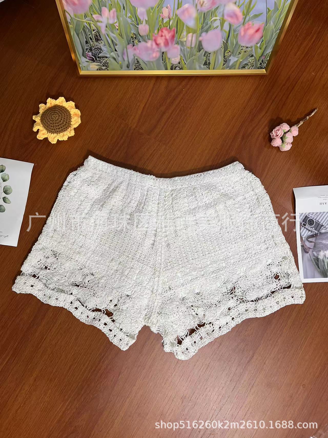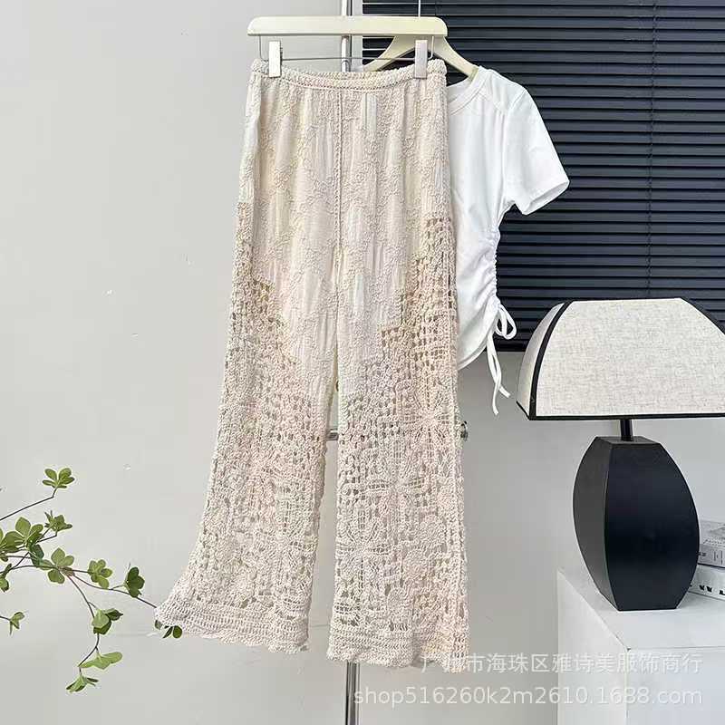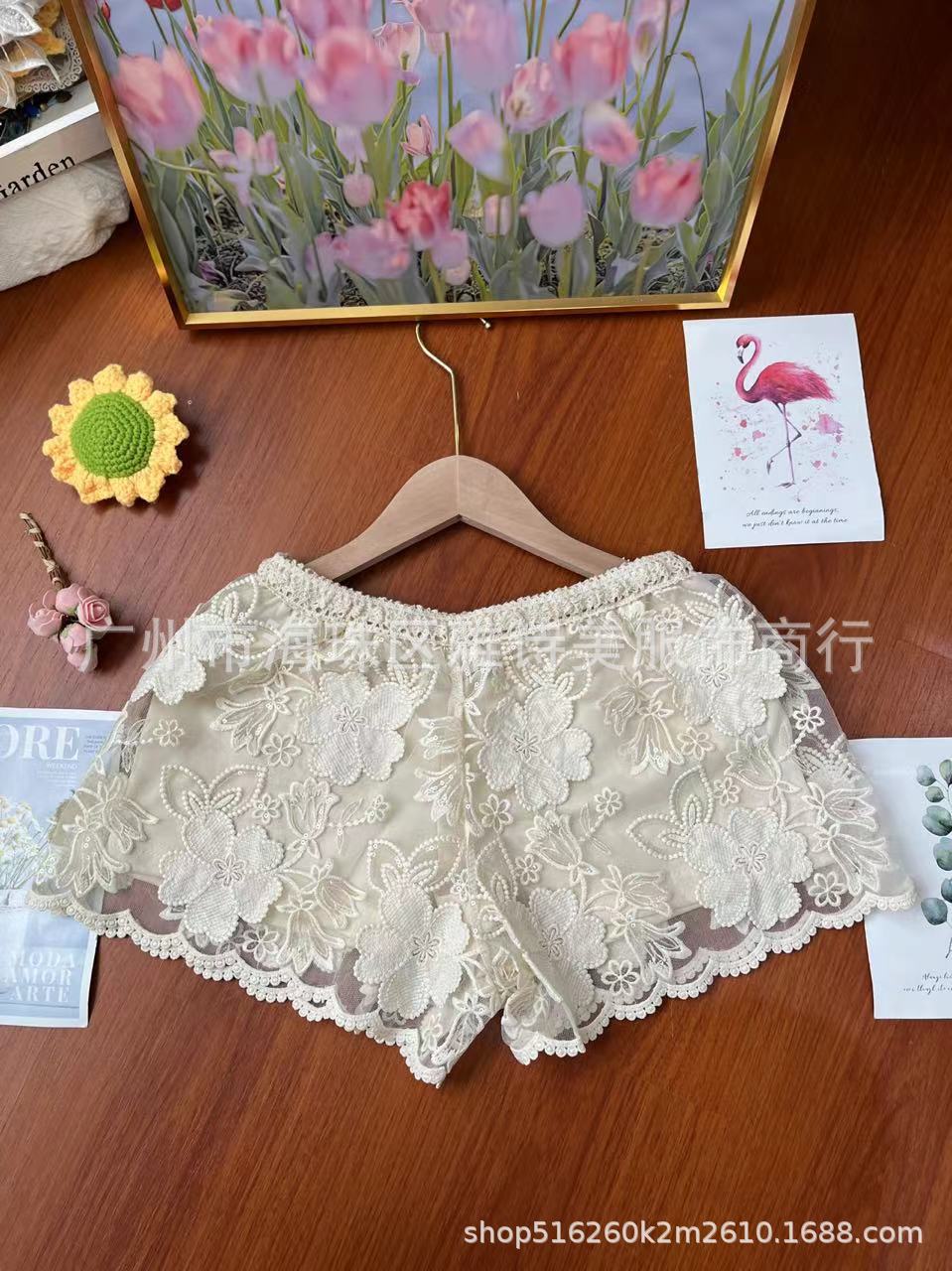 레이스 할로우 스포츠 반바지 여자 겨울 얇은 작은 외부 착용 높은 허리 안티 라이트 A 라인 넓은 다리 3 점 바지스토어 가기