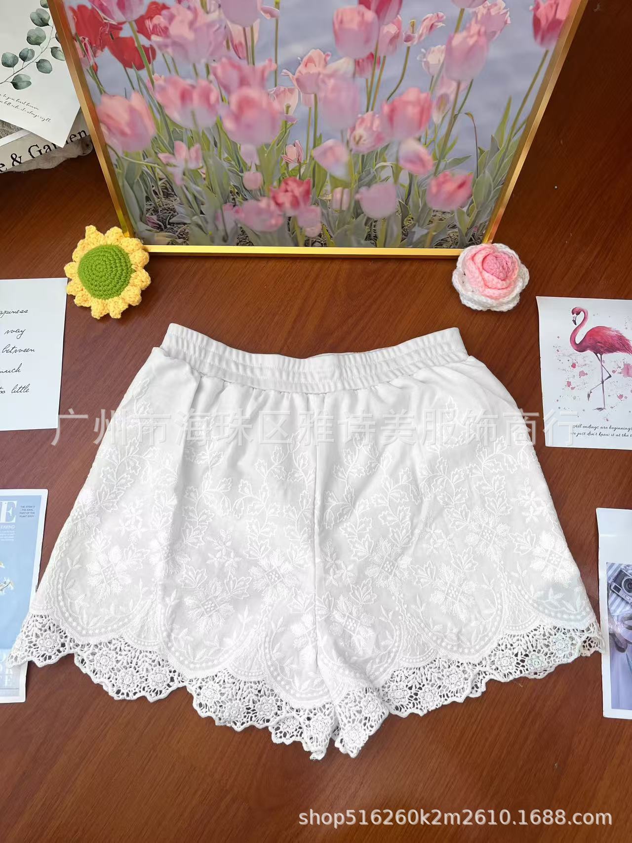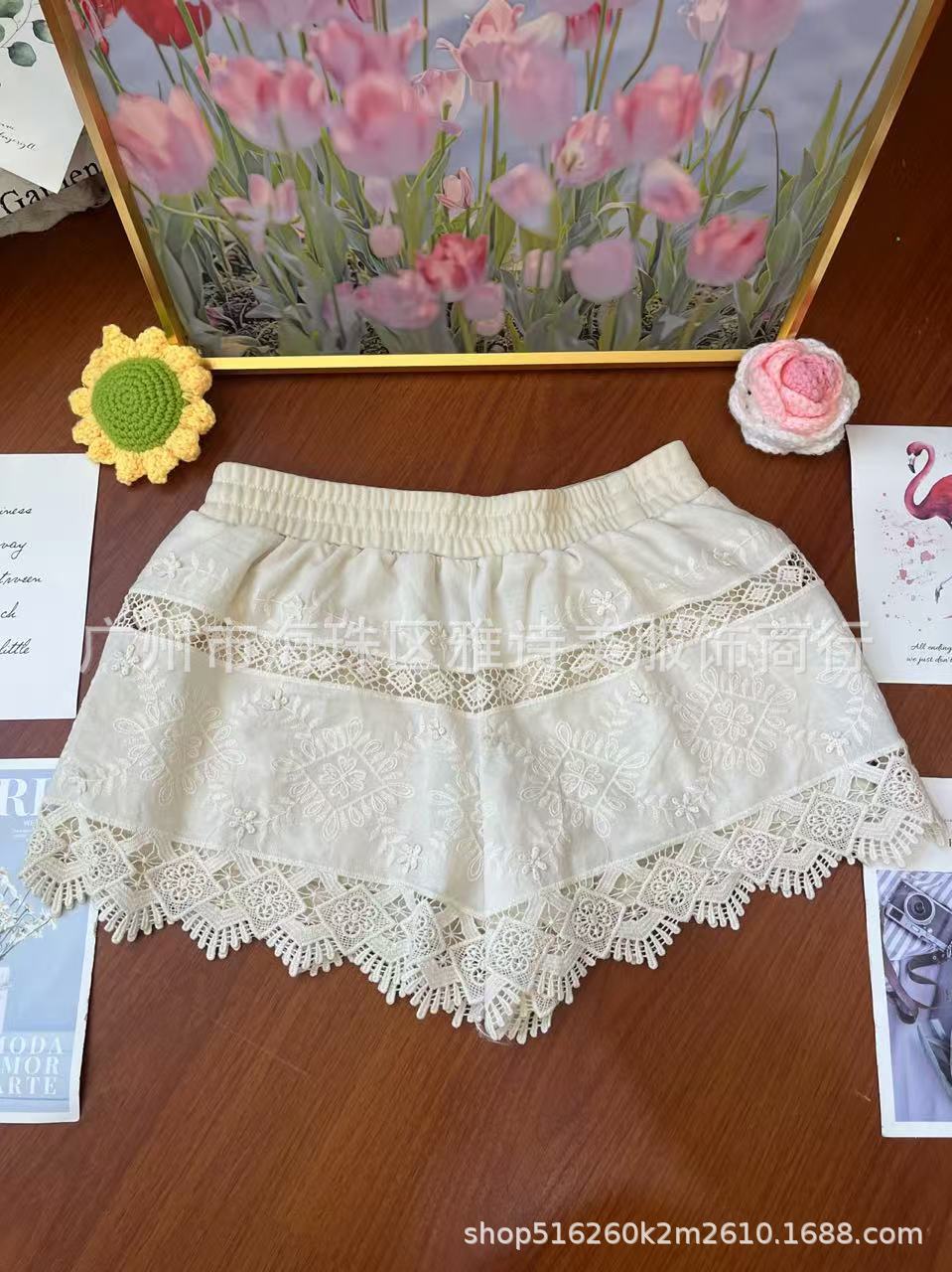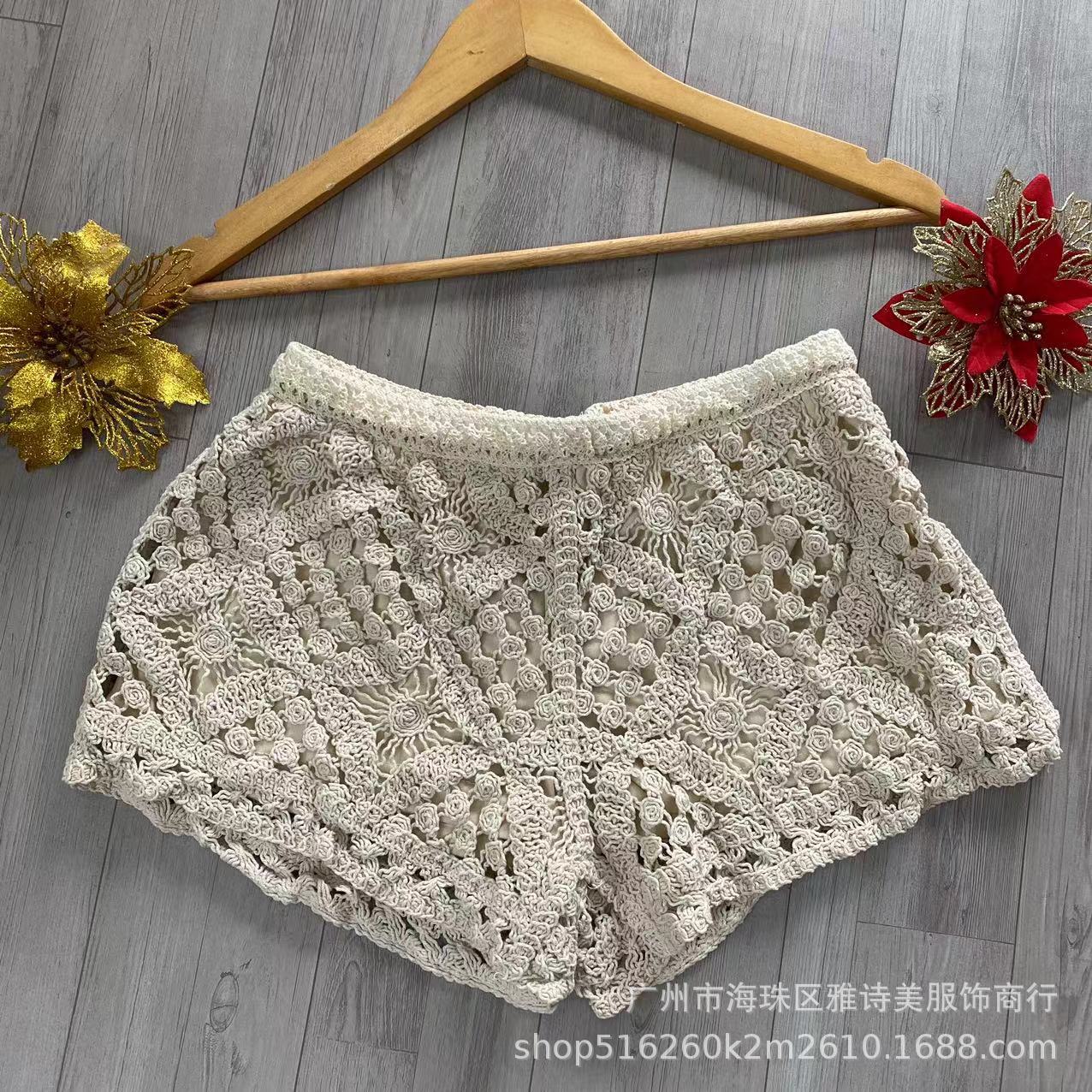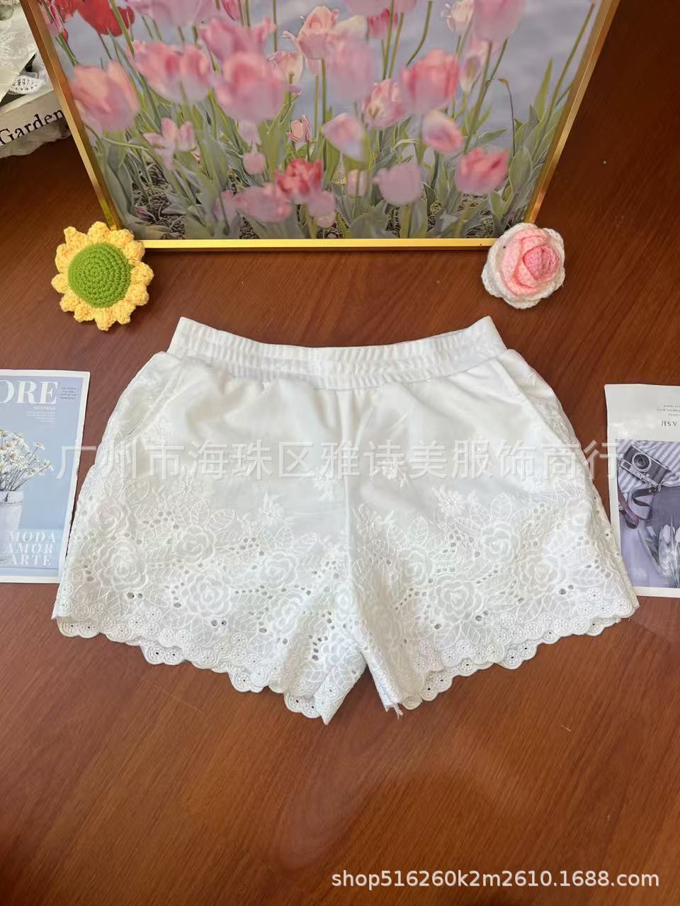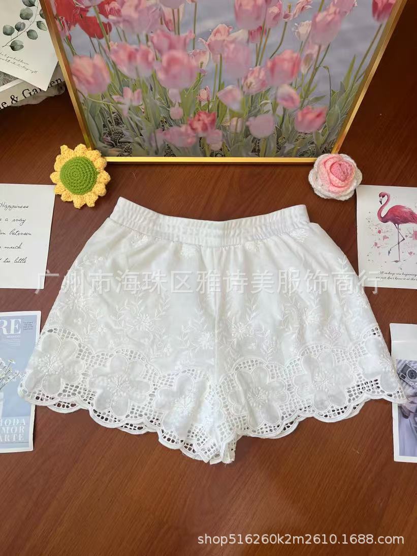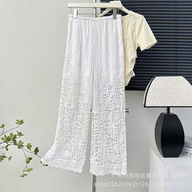 레이스 할로우 스포츠 반바지 여자 겨울 얇은 작은 외부 착용 높은 허리 안티 라이트 A 라인 넓은 다리 3 점 바지스토어 가기