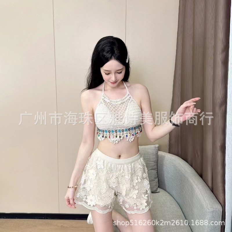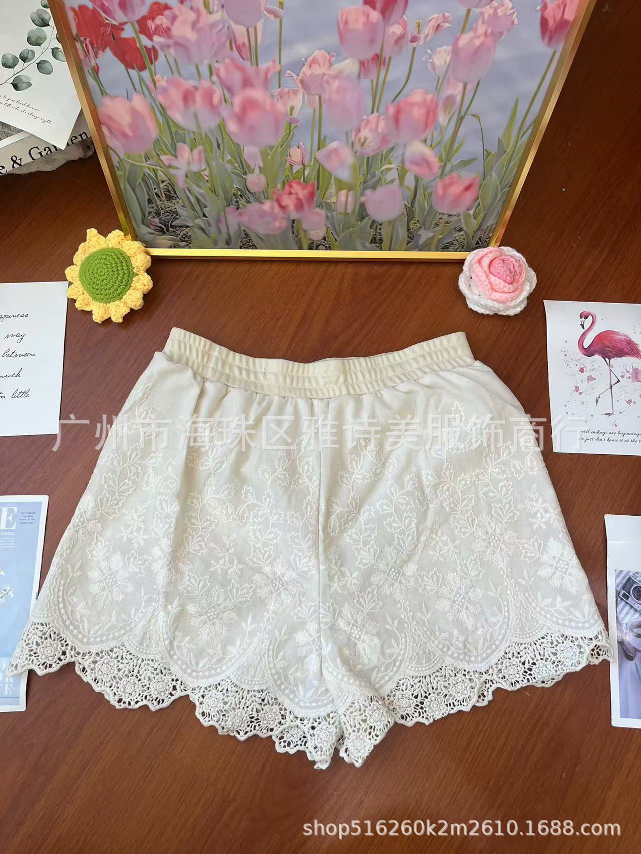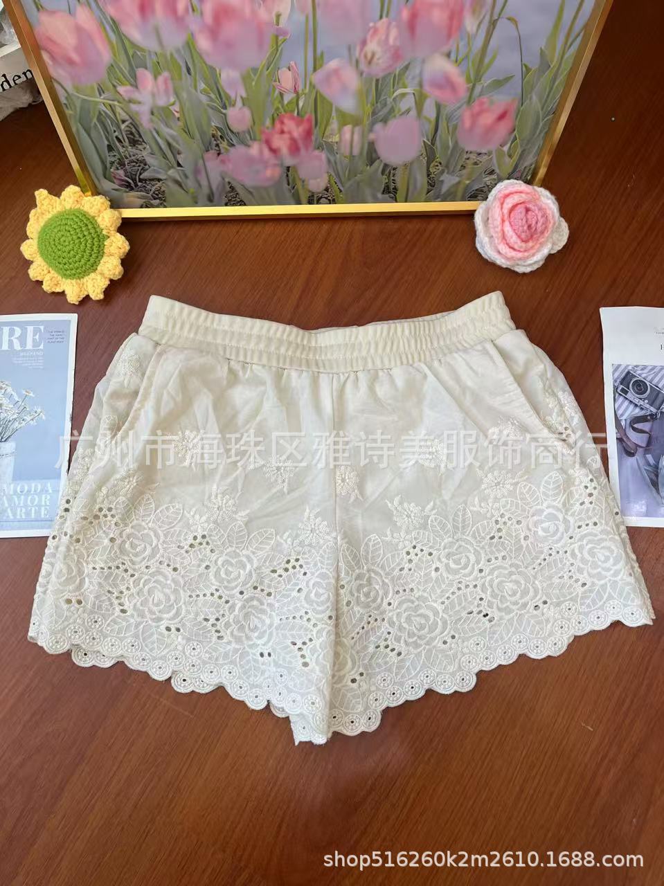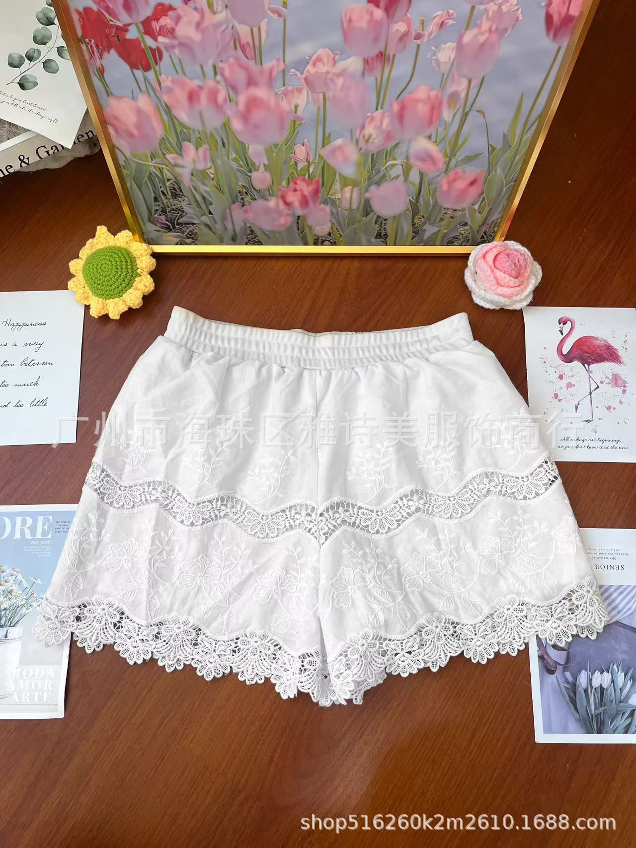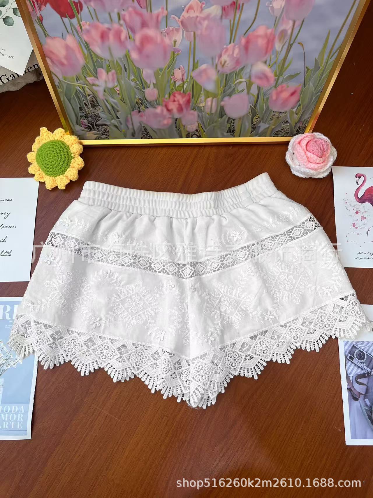 레이스 할로우 스포츠 반바지 여자 겨울 얇은 작은 외부 착용 높은 허리 안티 라이트 A 라인 넓은 다리 3 점 바지스토어 가기