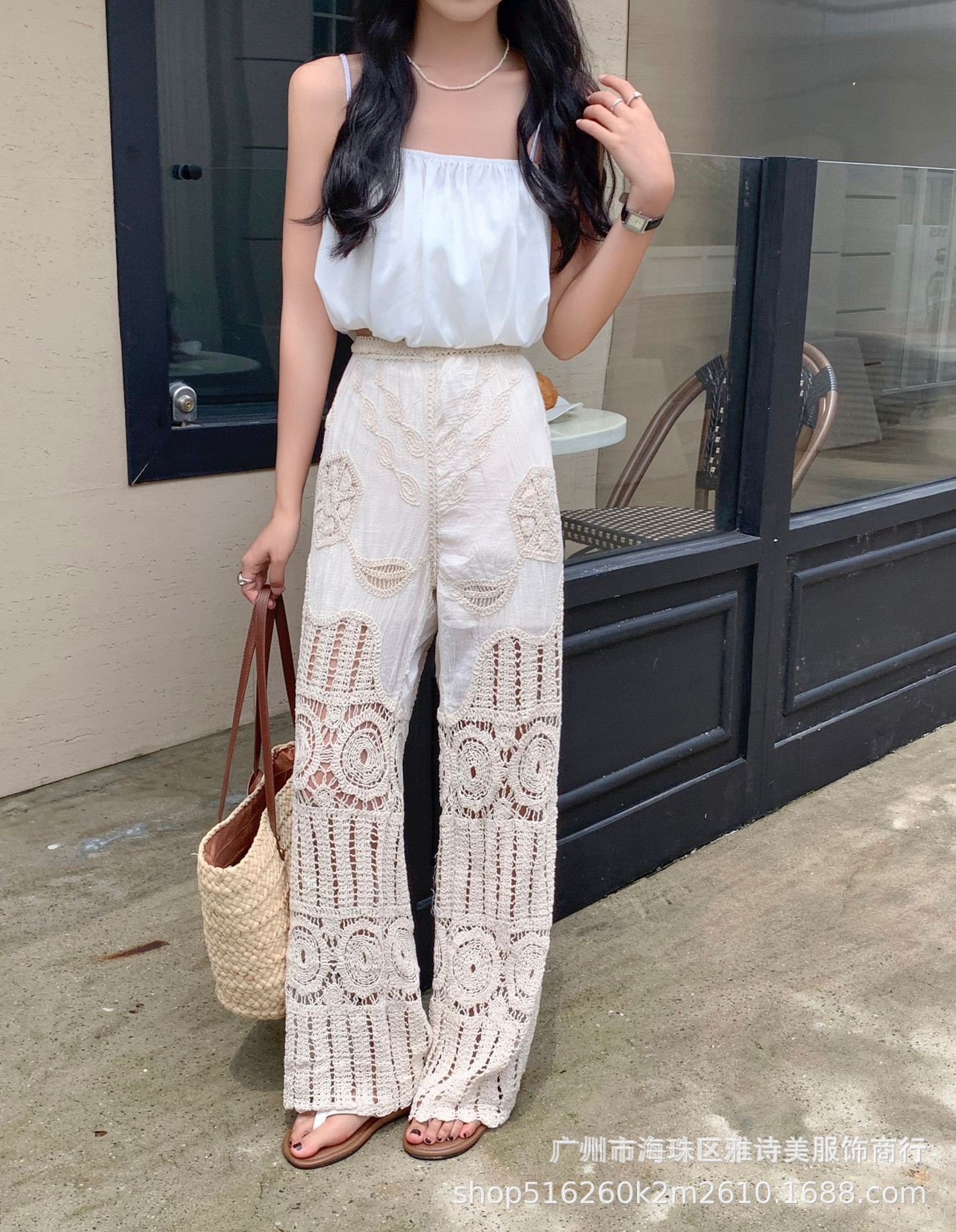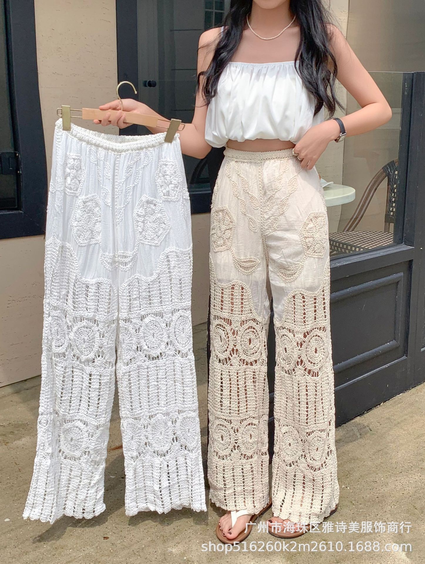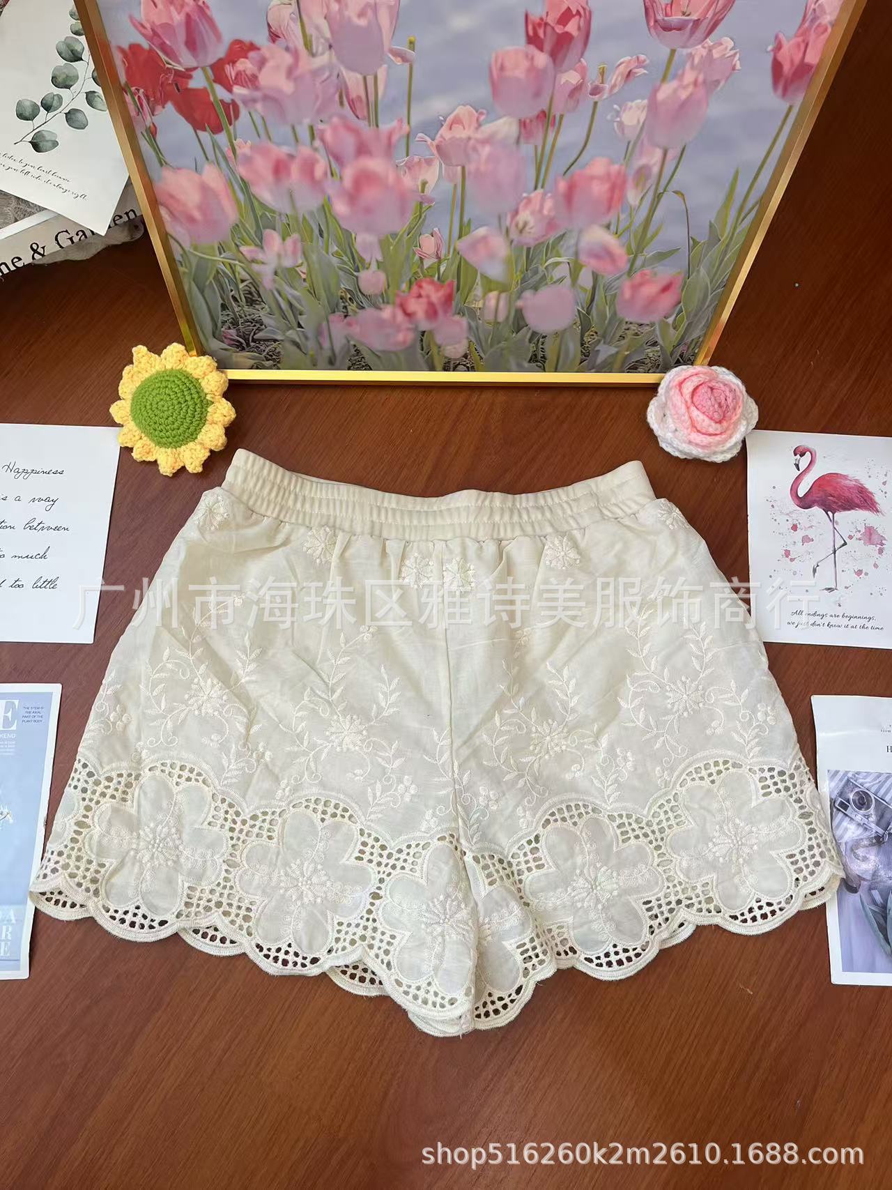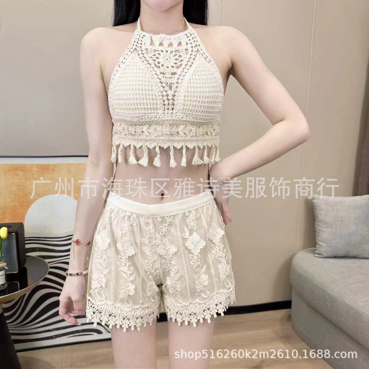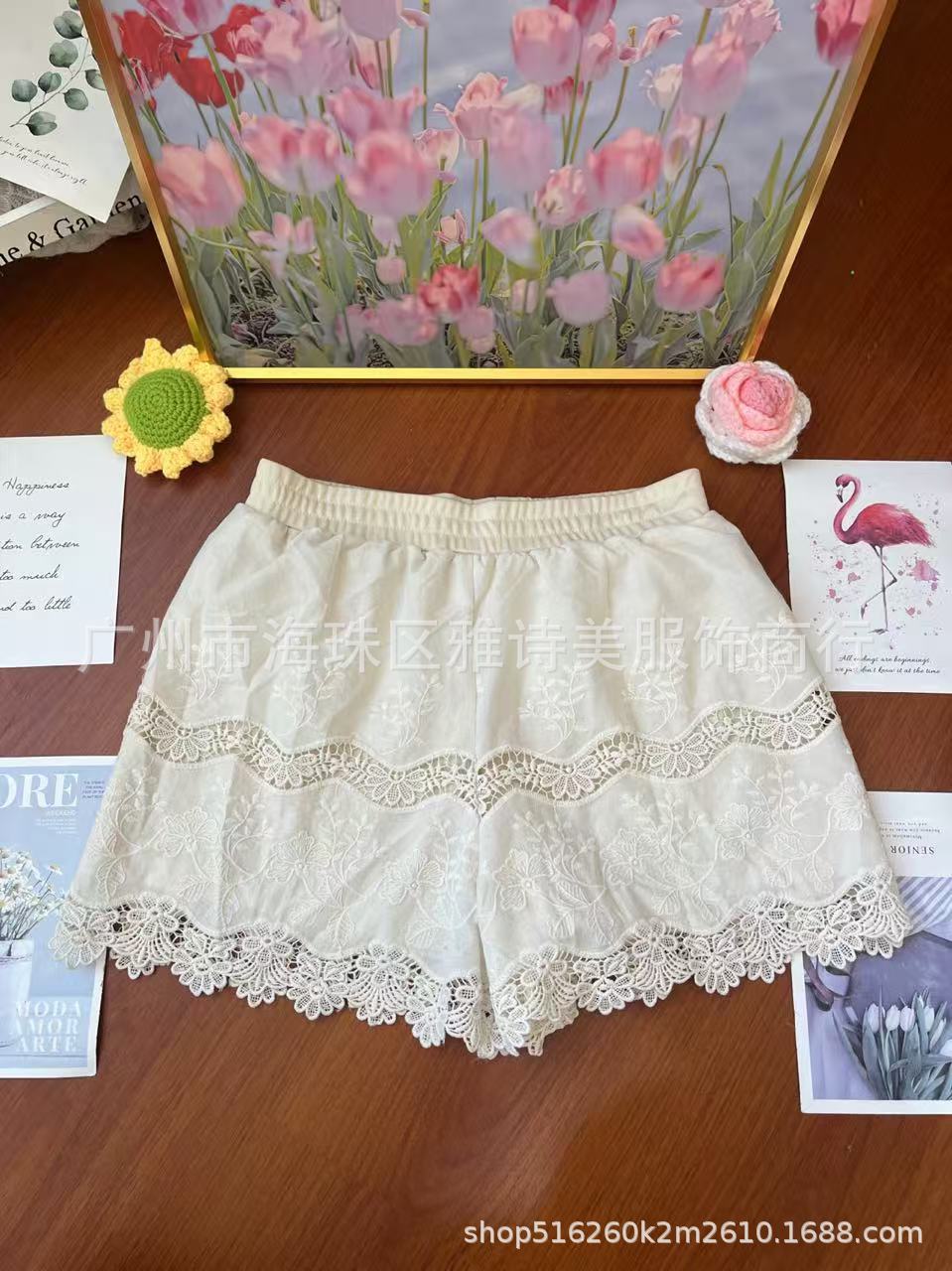 레이스 할로우 스포츠 반바지 여자 겨울 얇은 작은 외부 착용 높은 허리 안티 라이트 A 라인 넓은 다리 3 점 바지스토어 가기