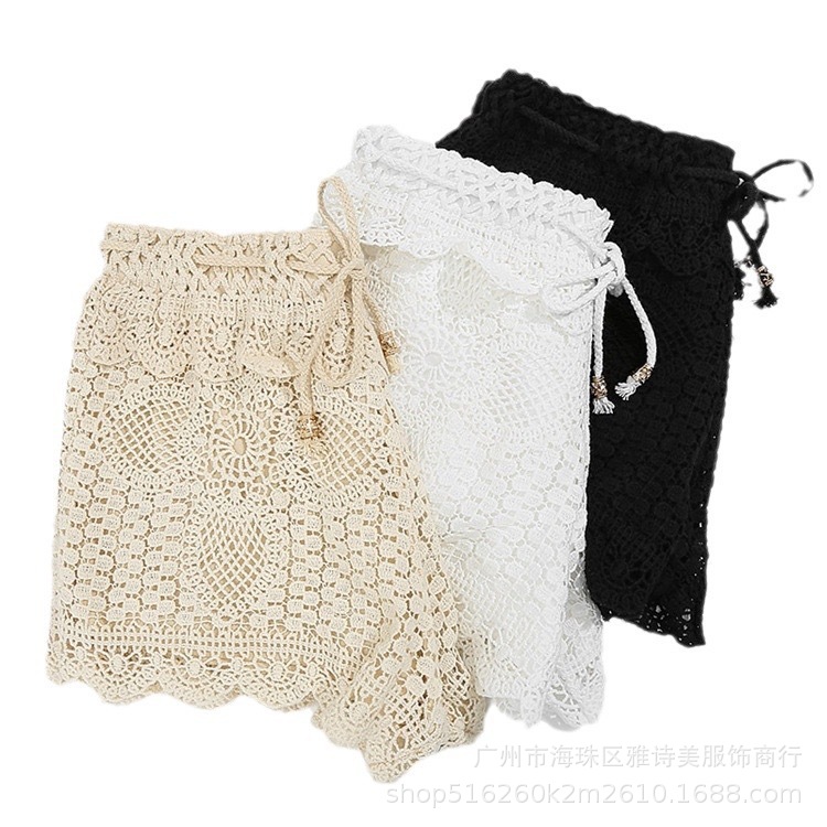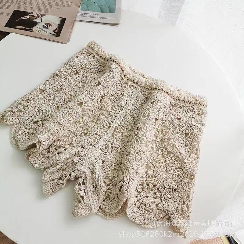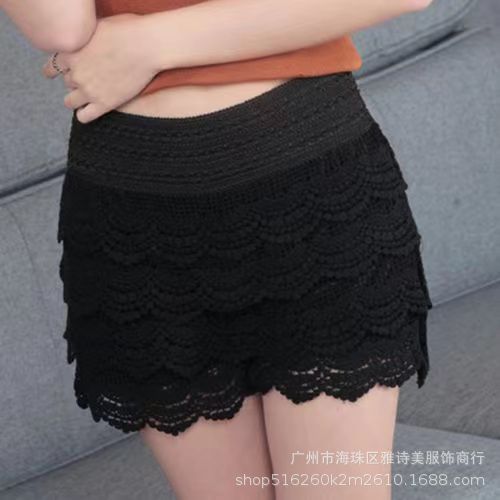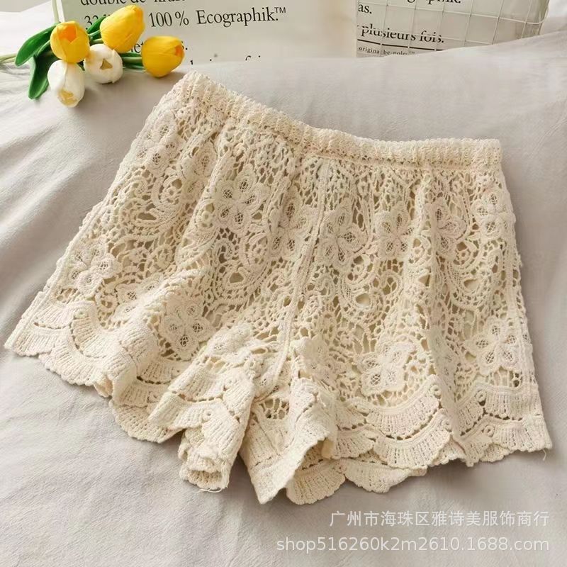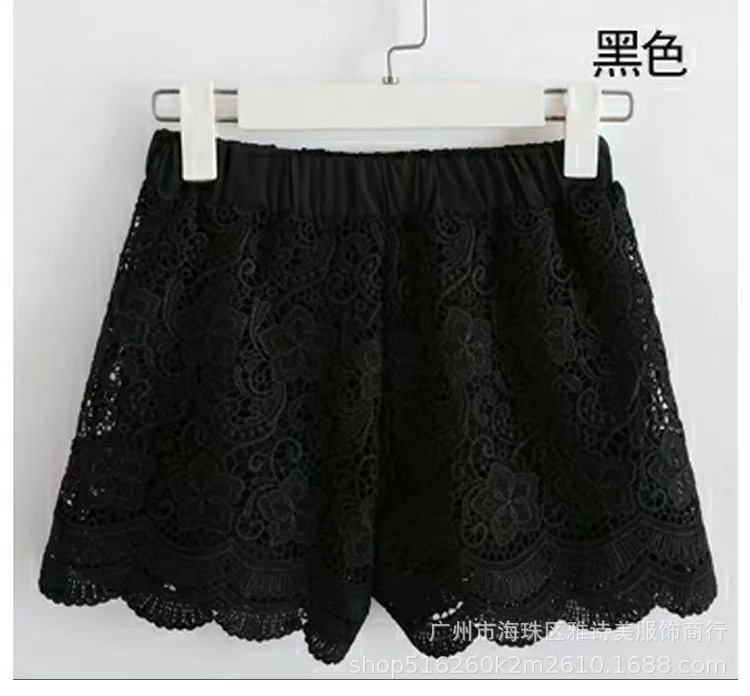 레이스 할로우 스포츠 반바지 여자 겨울 얇은 작은 외부 착용 높은 허리 안티 라이트 A 라인 넓은 다리 3 점 바지