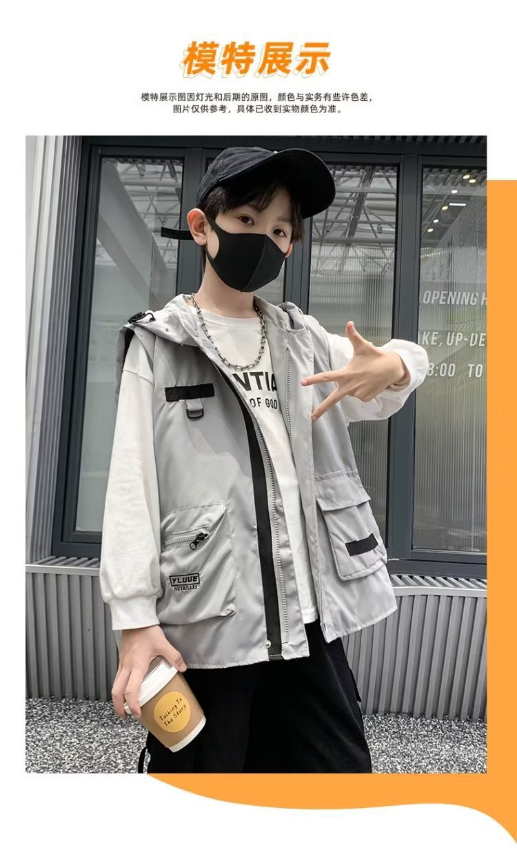 소년 조끼 봄과 가을 코트 2025 새로운 스타일 소년 아기의 서양식 작업복 웨어 재킷 어린이 코트 트렌디