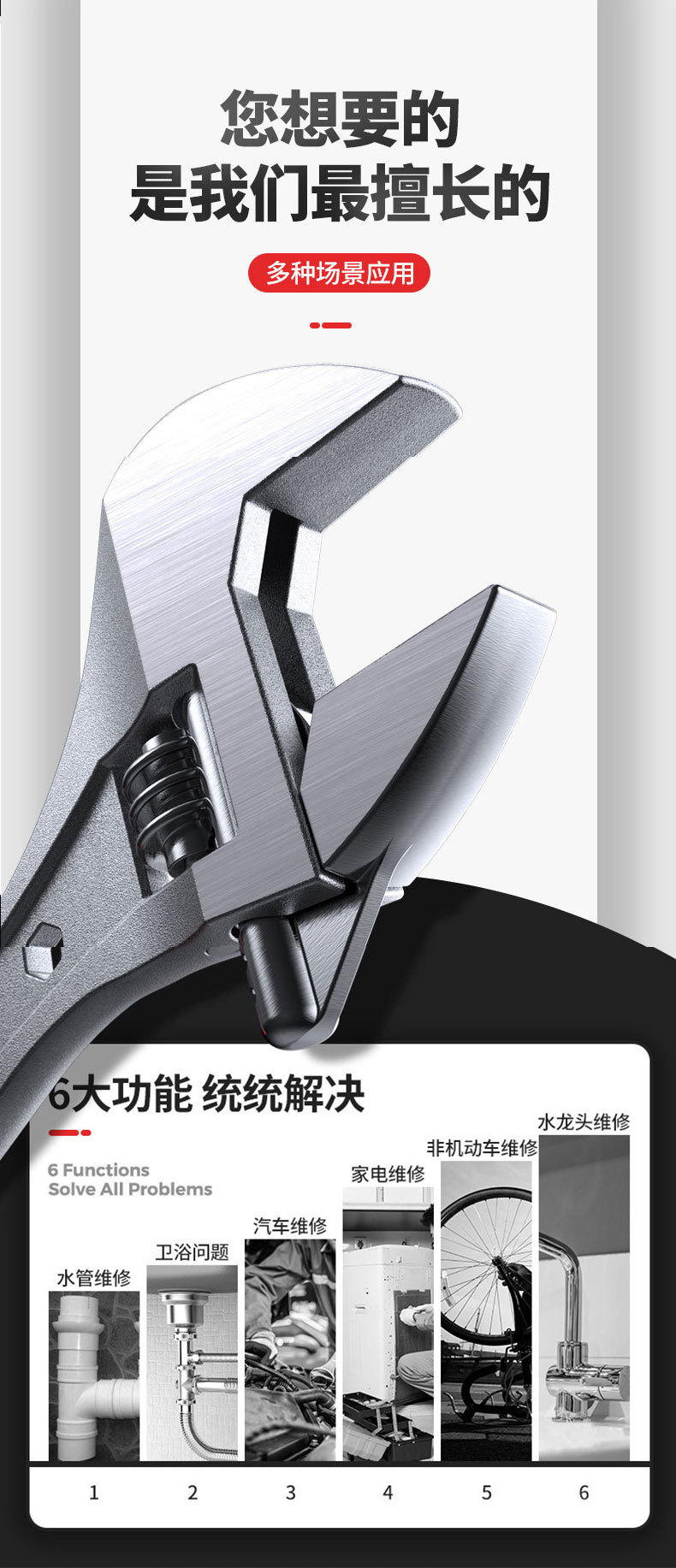 • 가벼운 손잡이 6inch 조절 렌치