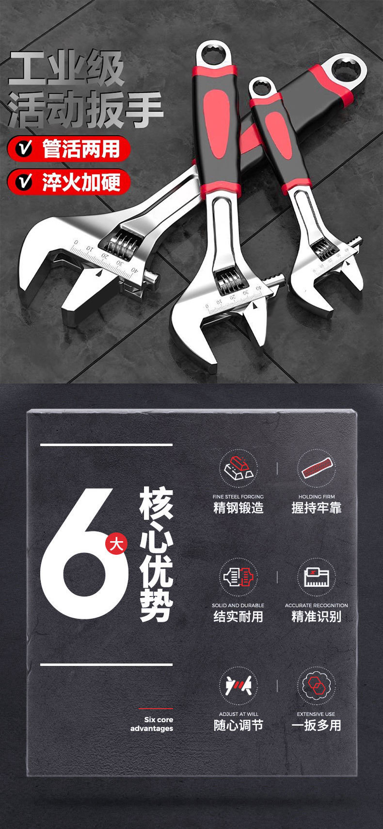 조절식 렌치 산업용 등급 8inch 고무 코팅 미끄럼 방지 조절식 렌치 만능 대형 오픈 렌치 조절식 렌치 도매