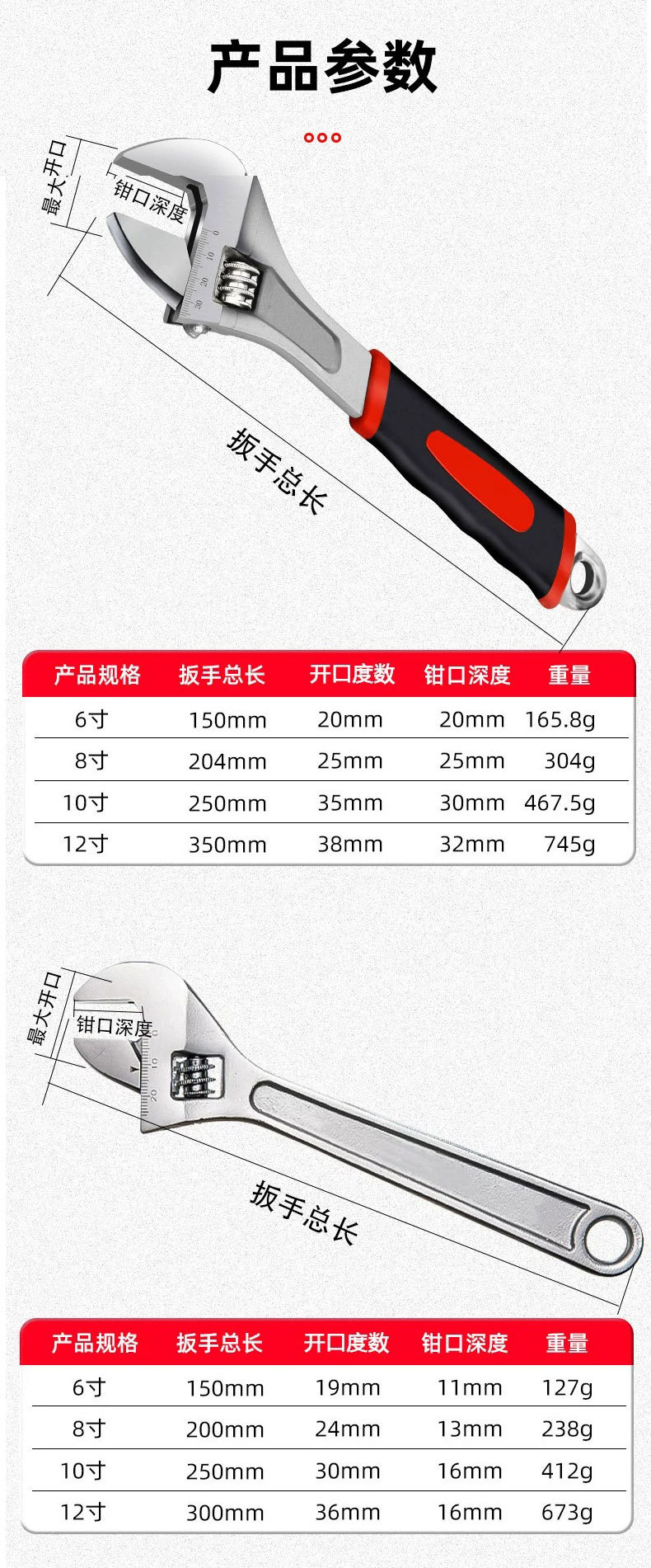 • 가벼운 손잡이 8inch 조절 렌치