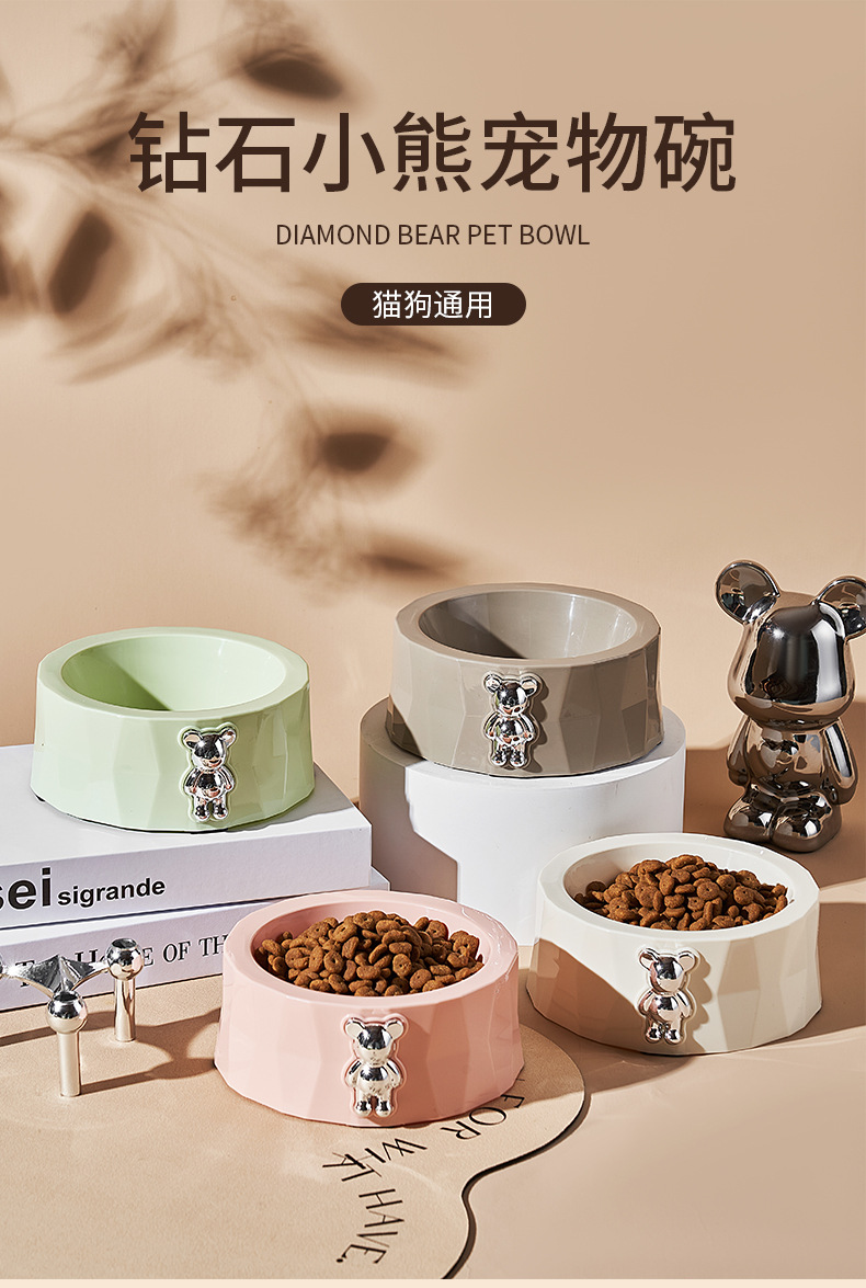국경 간 폭발 플라스틱 고양이 그릇 고양이 먹이 그릇 식사 음료 그릇 개 그릇 안티 노크 쉽게 청소 다이아몬드 곰 그릇