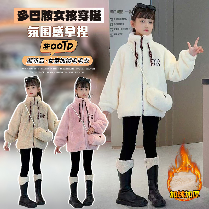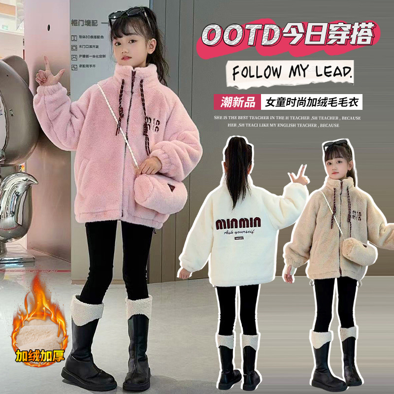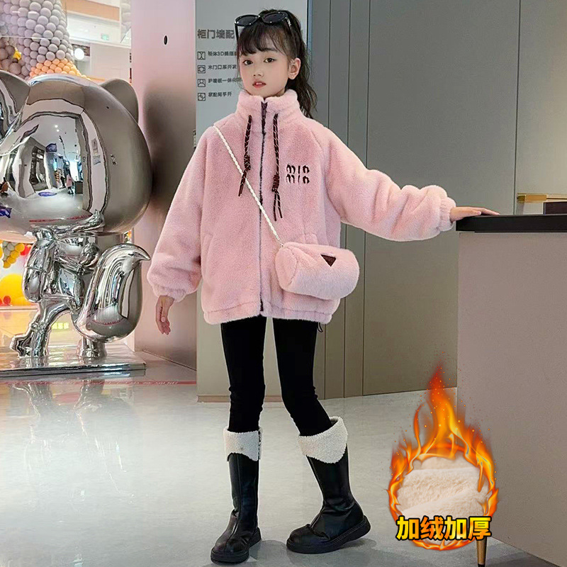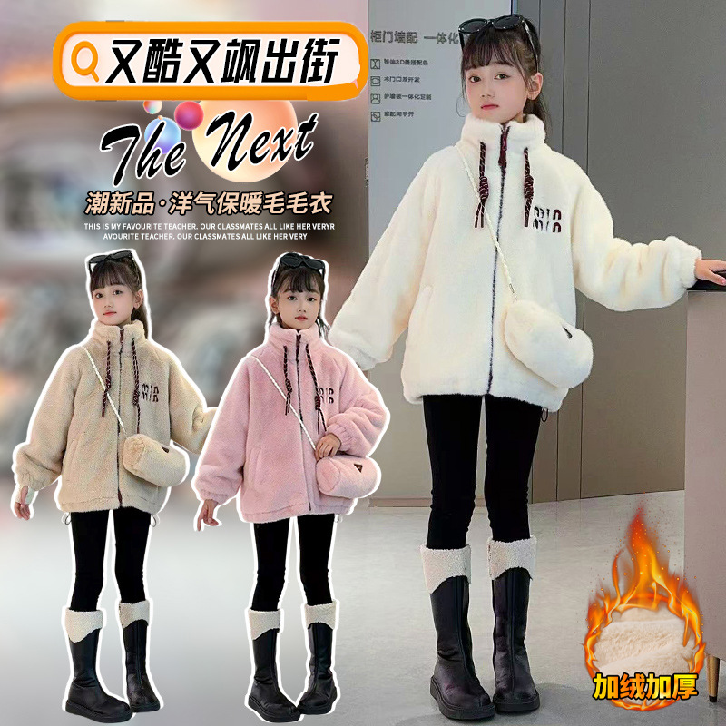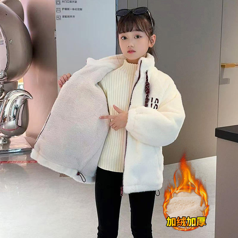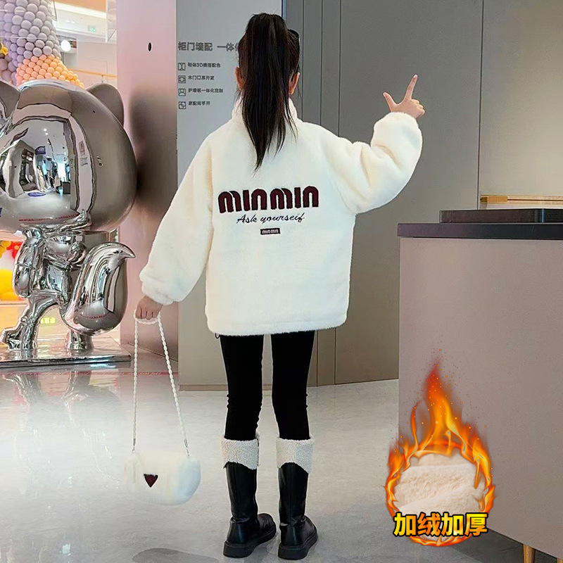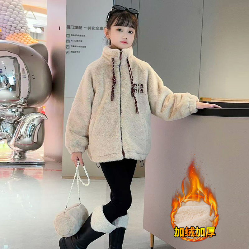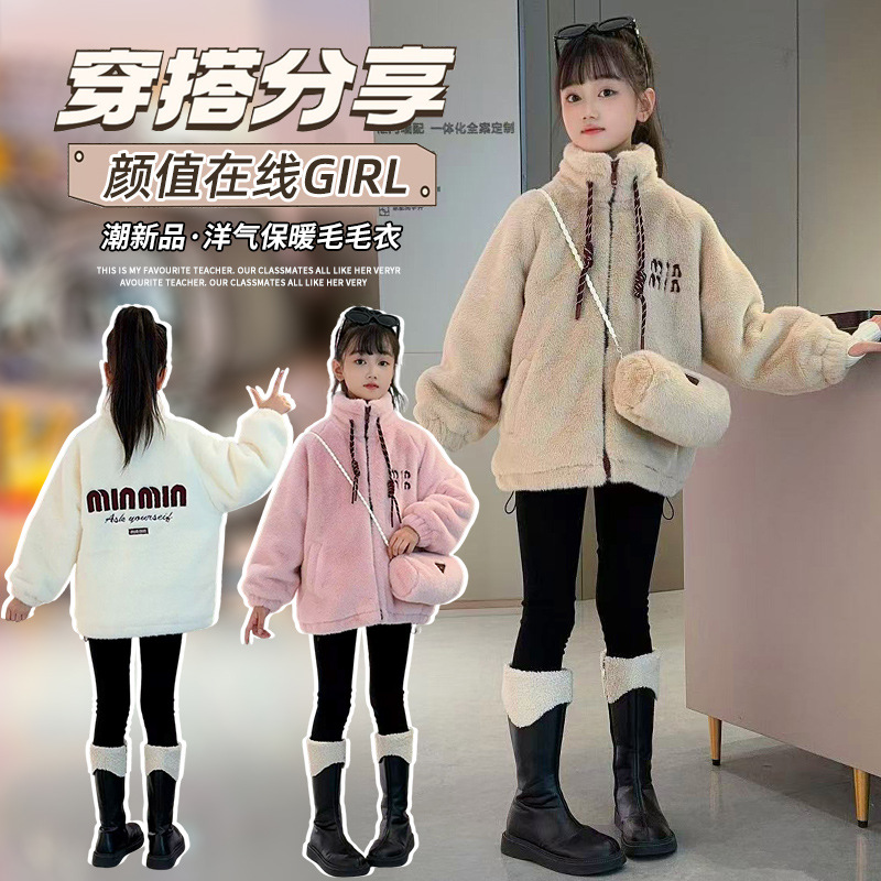2025 여아용 겨울 벨벳 두꺼운 모직 스웨터, 중대형 여아용 패셔너블 캐주얼 인터넷 연예인 면 코트, 롤랜드 밍크스토어 가기