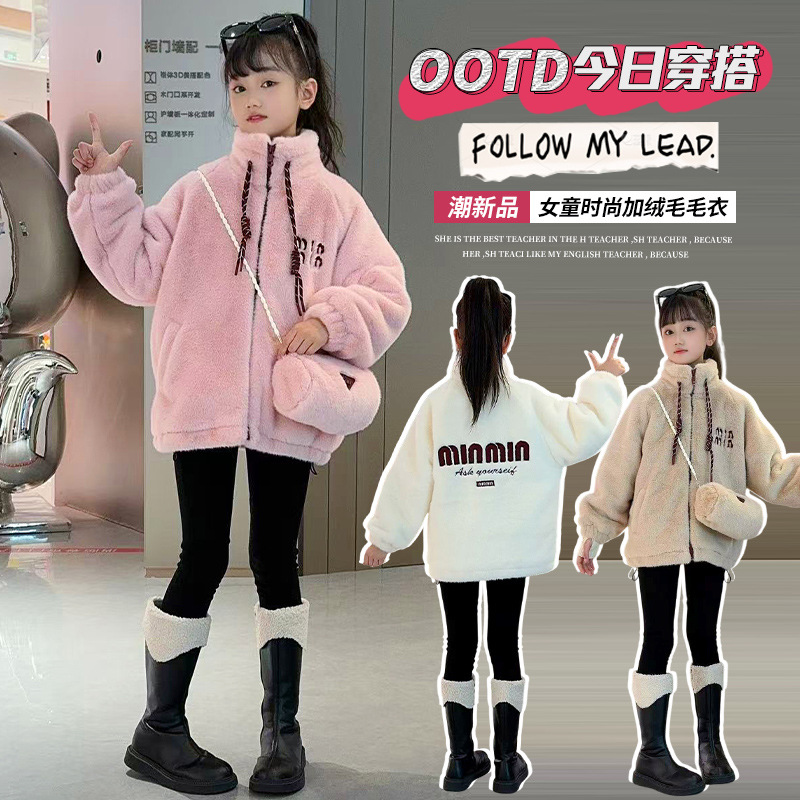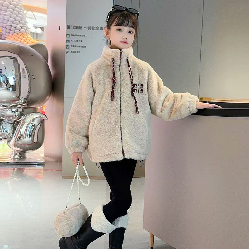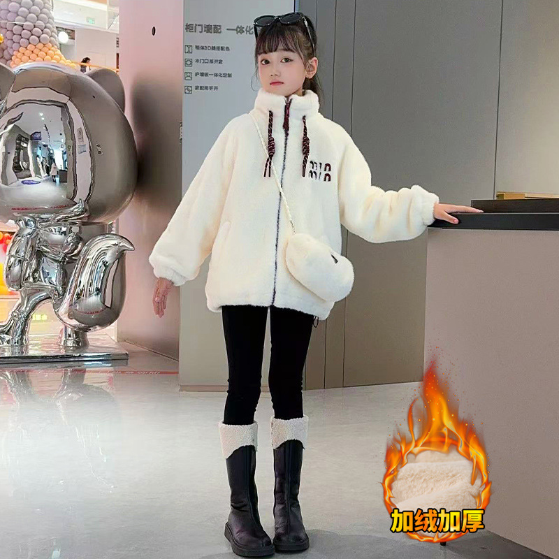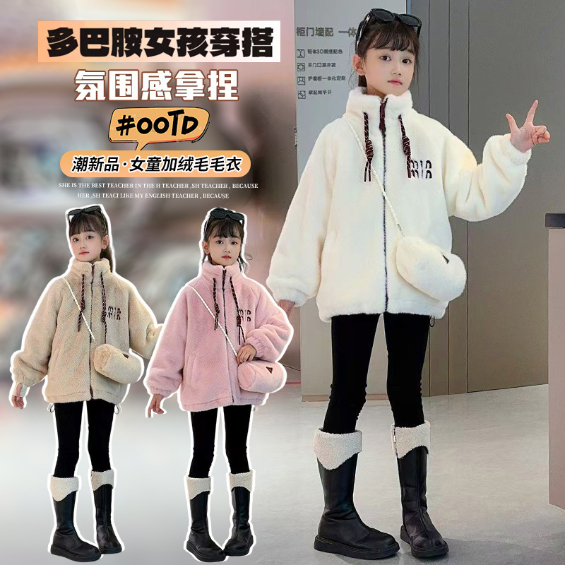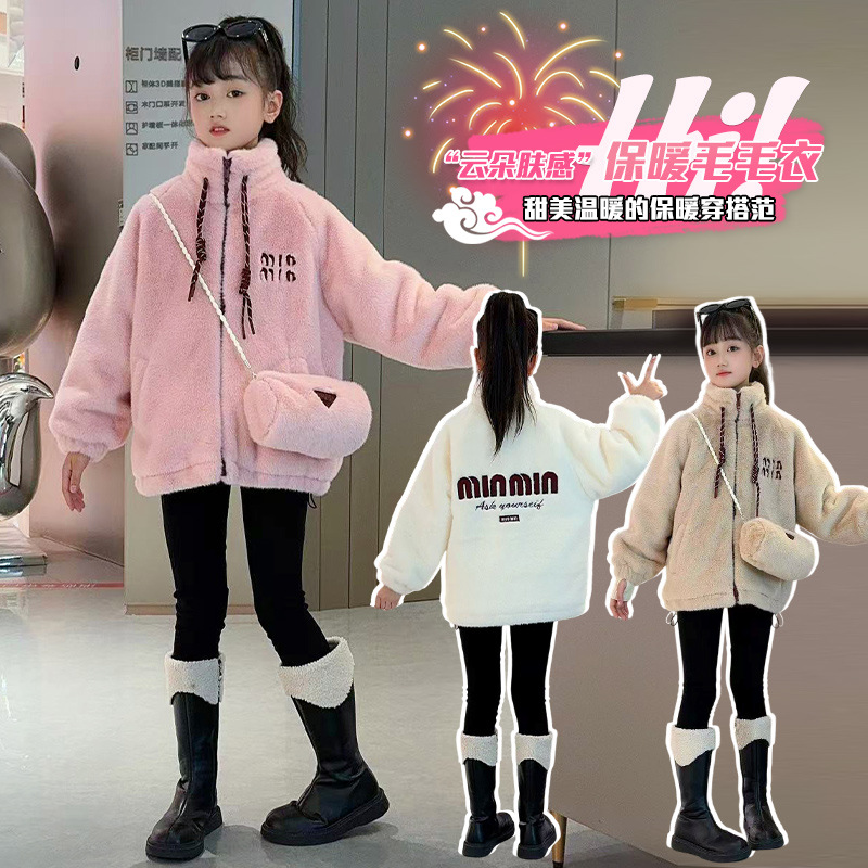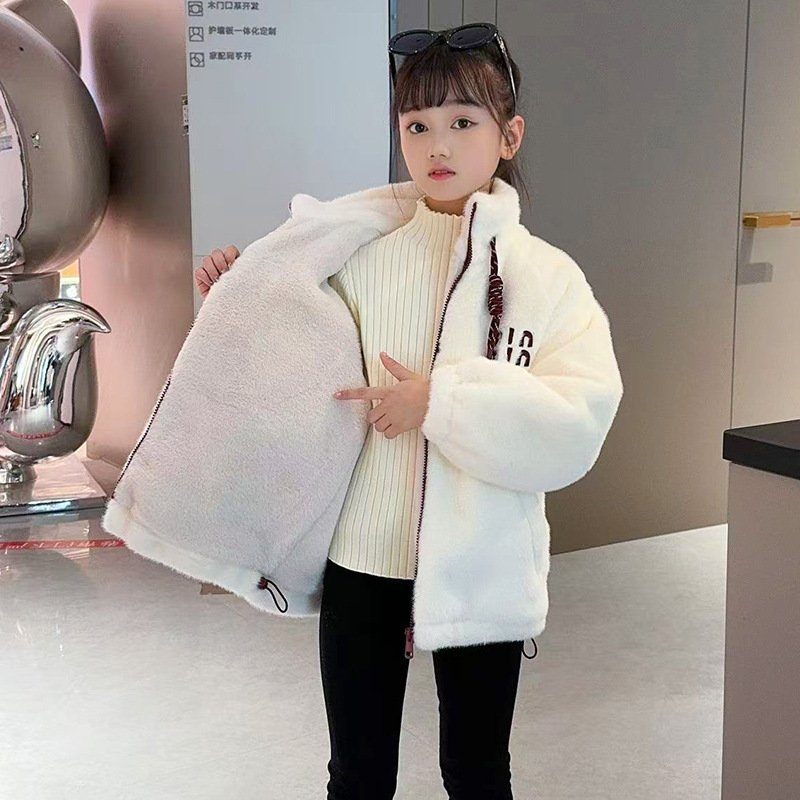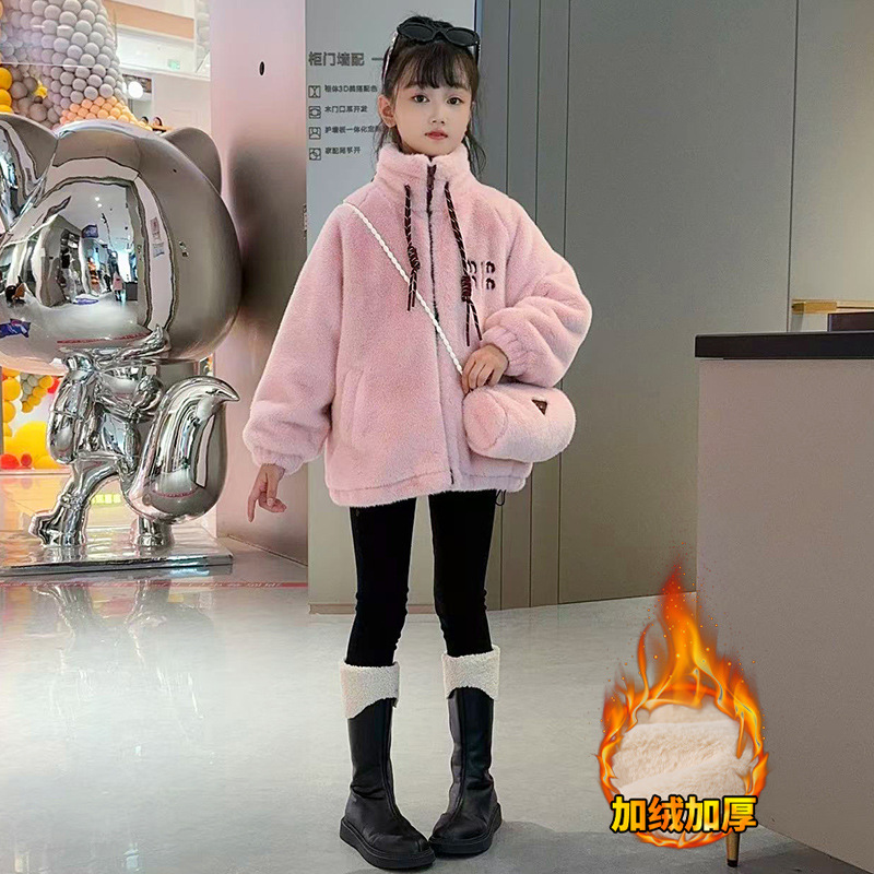 2025 여아용 겨울 벨벳 두꺼운 모직 스웨터, 중대형 여아용 패셔너블 캐주얼 인터넷 연예인 면 코트, 롤랜드 밍크스토어 가기
