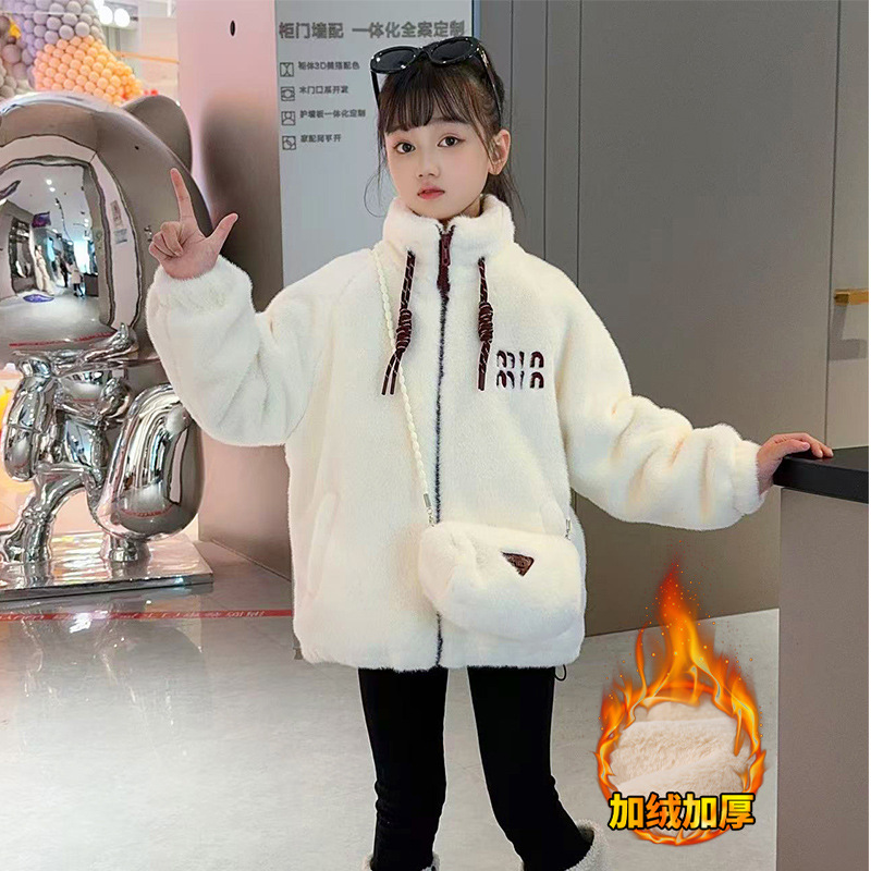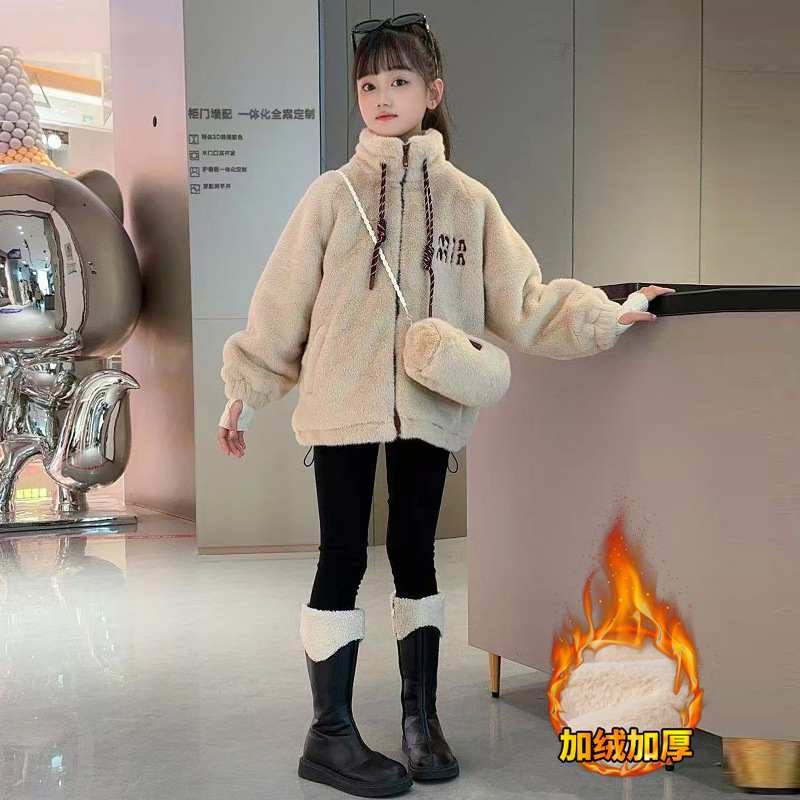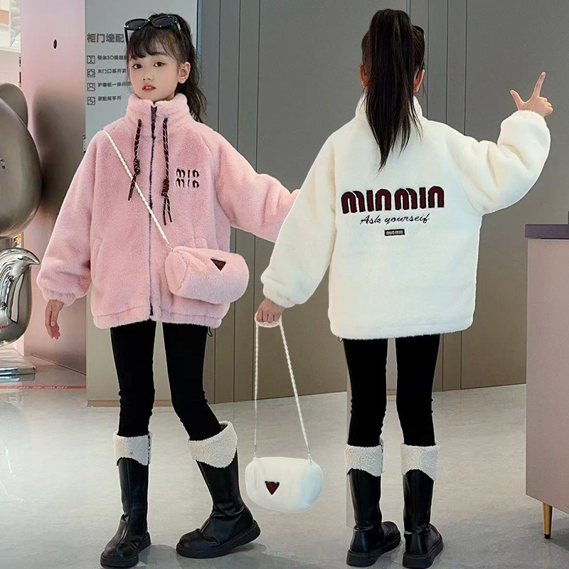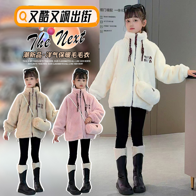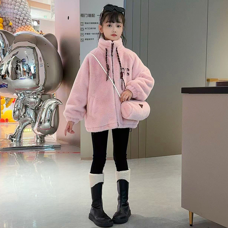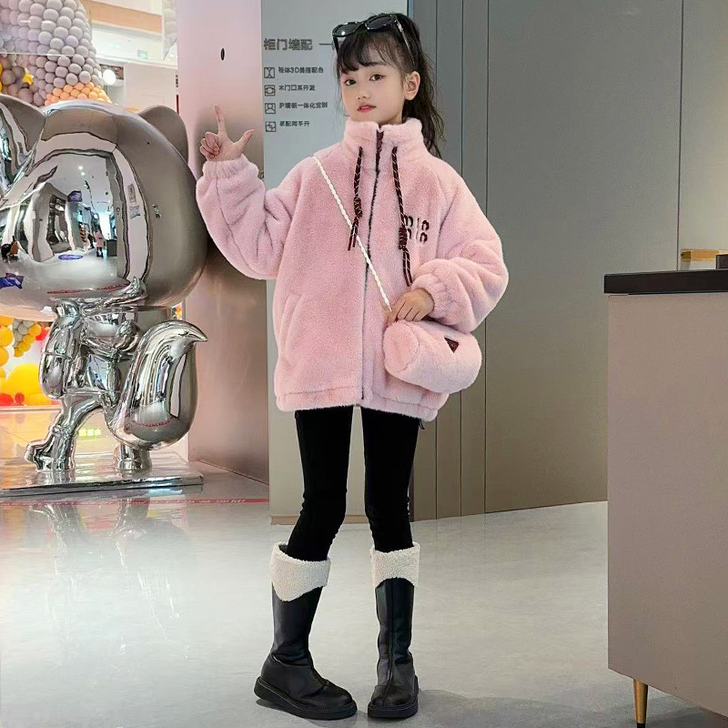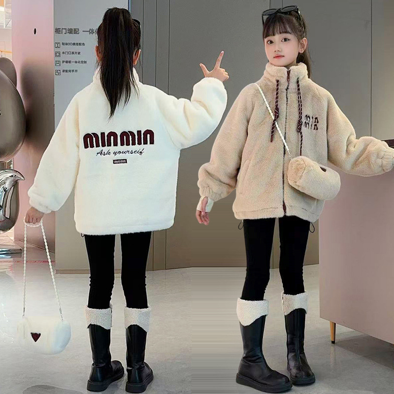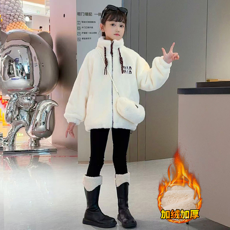 2025 여아용 겨울 벨벳 두꺼운 모직 스웨터, 중대형 여아용 패셔너블 캐주얼 인터넷 연예인 면 코트, 롤랜드 밍크스토어 가기