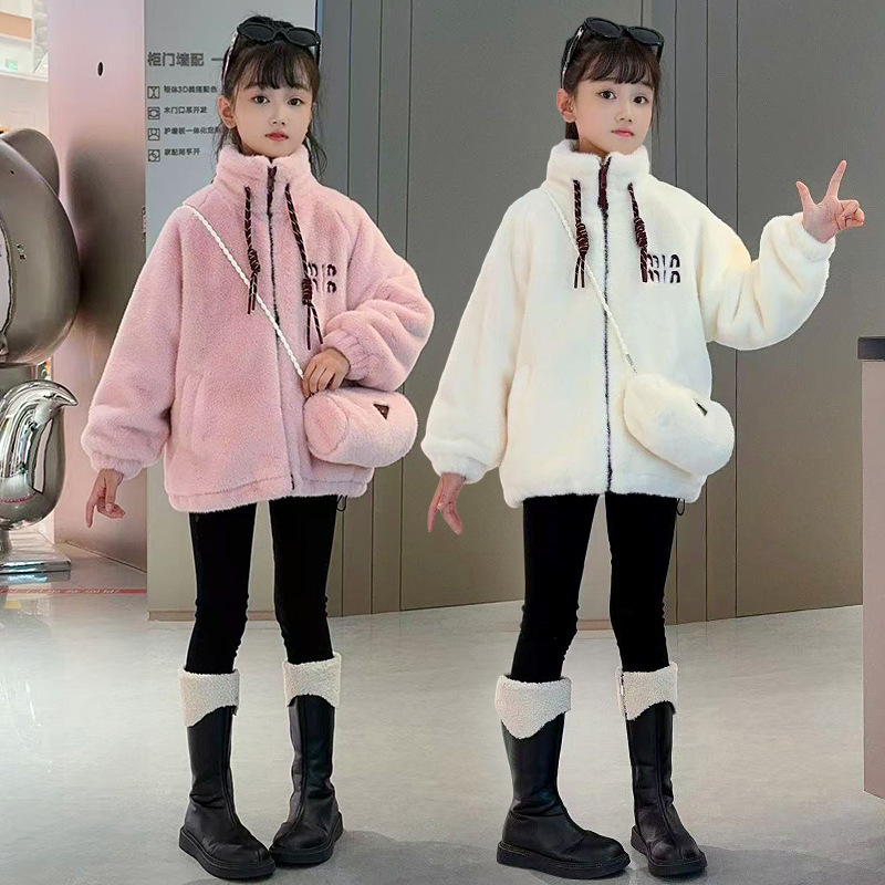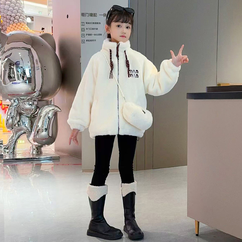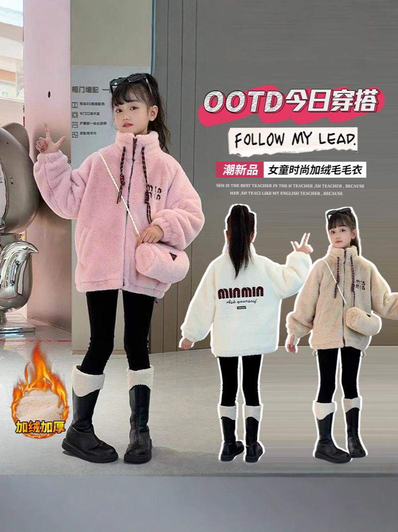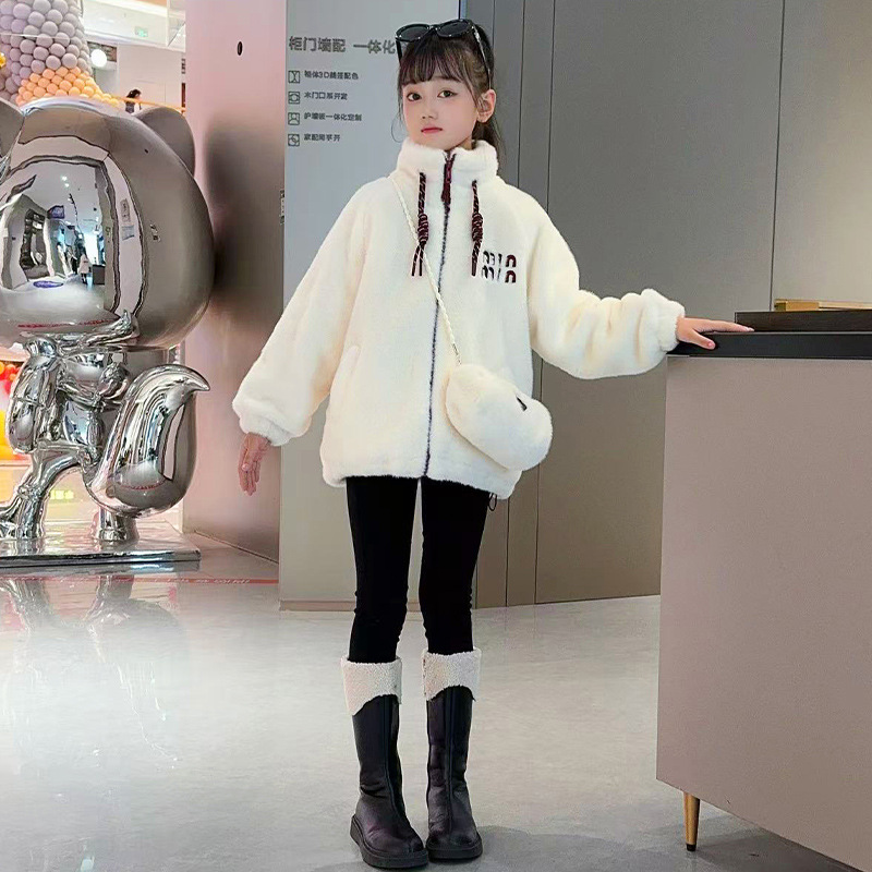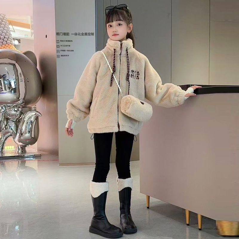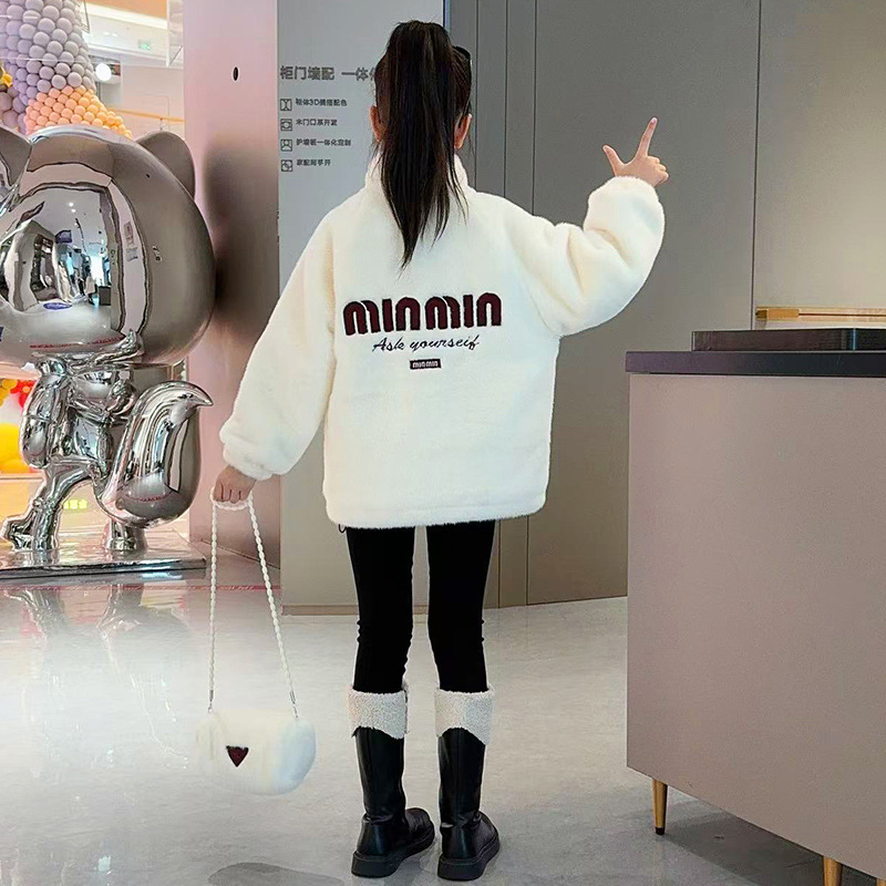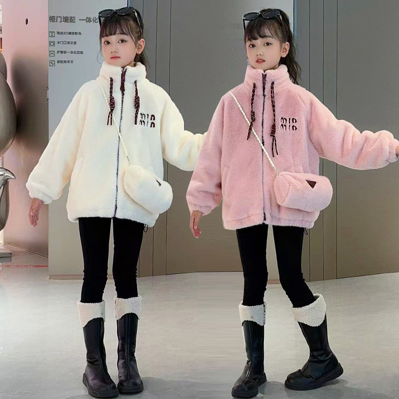 2025 여아용 겨울 벨벳 두꺼운 모직 스웨터, 중대형 여아용 패셔너블 캐주얼 인터넷 연예인 면 코트, 롤랜드 밍크스토어 가기