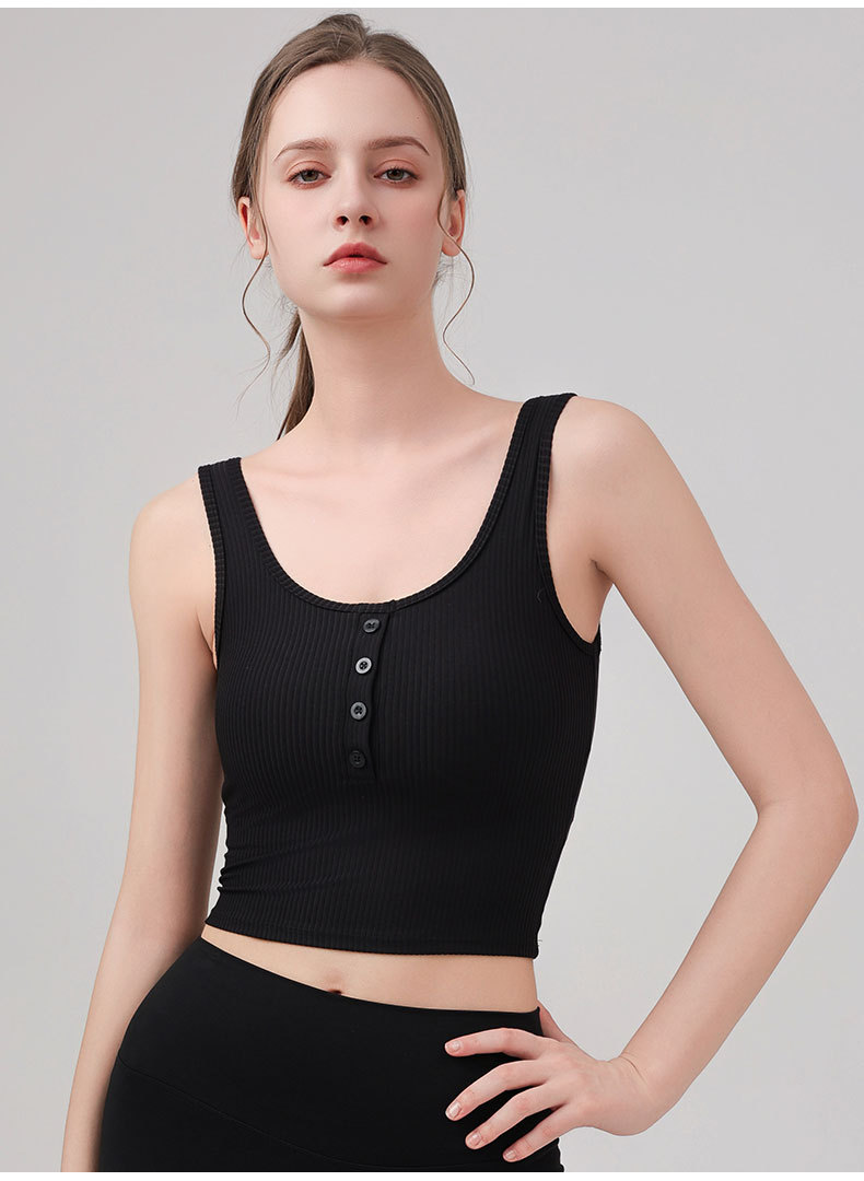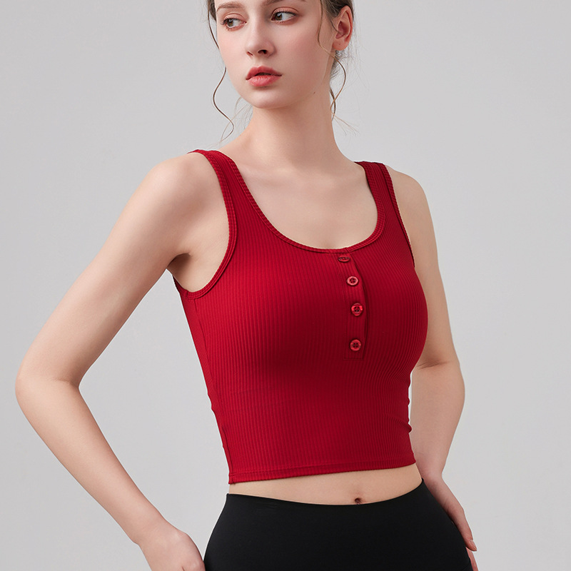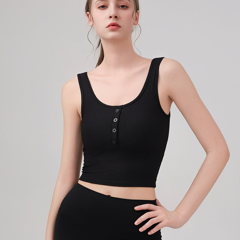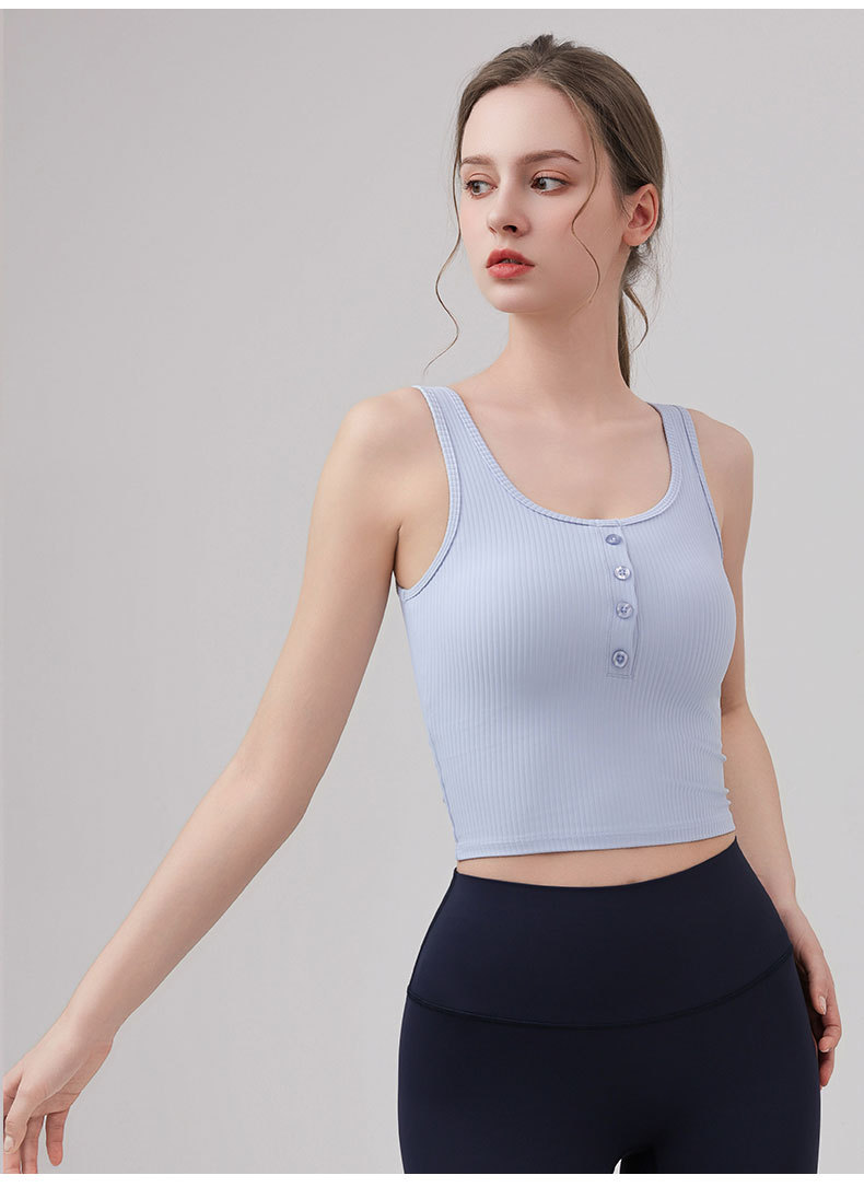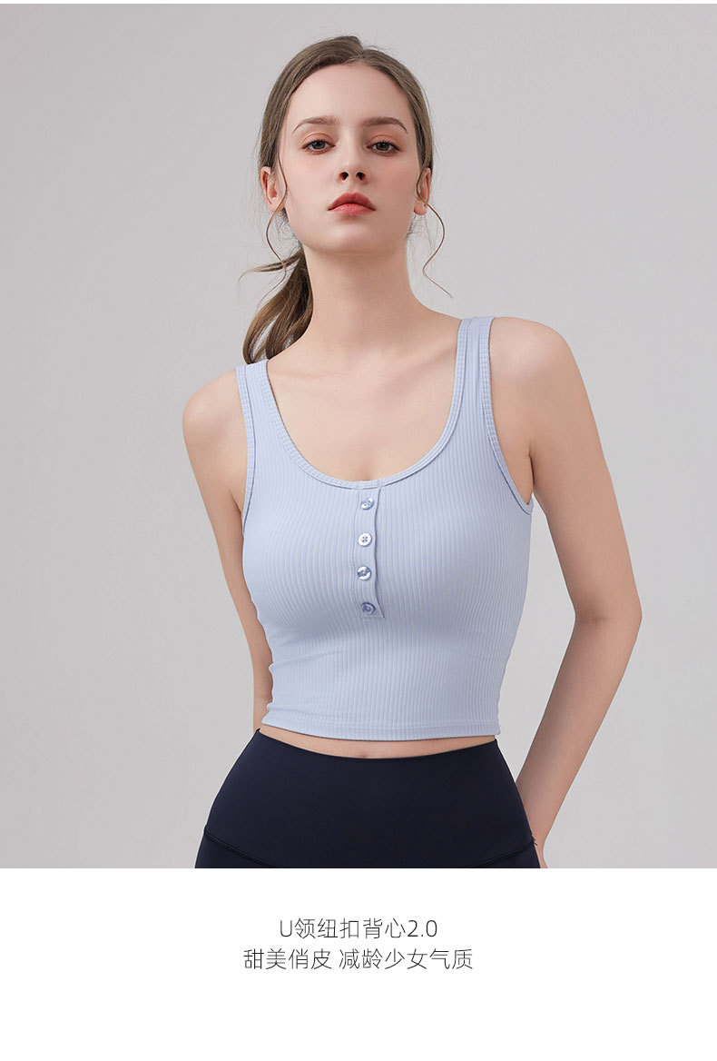 요가 의류 버튼 벨트 가슴 패드 와이드 어깨 스트랩 요가 조끼 여성 스포츠 브라 원피스 노웨어 브라 탑 슬링스토어 가기