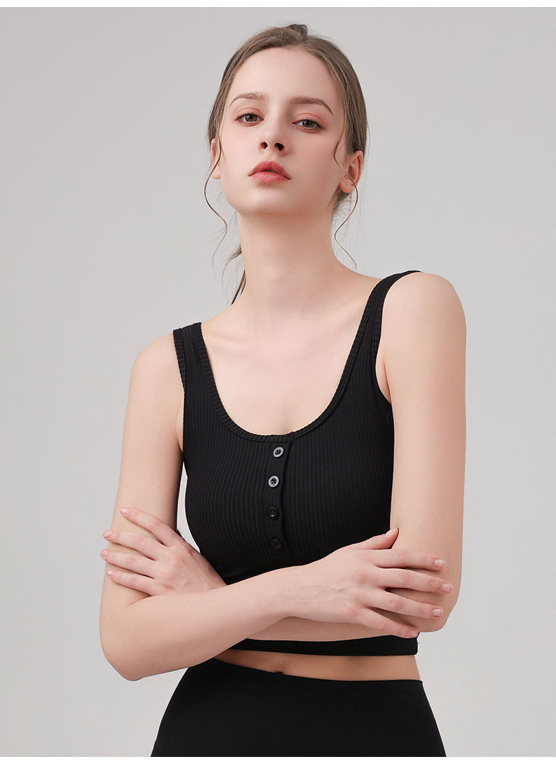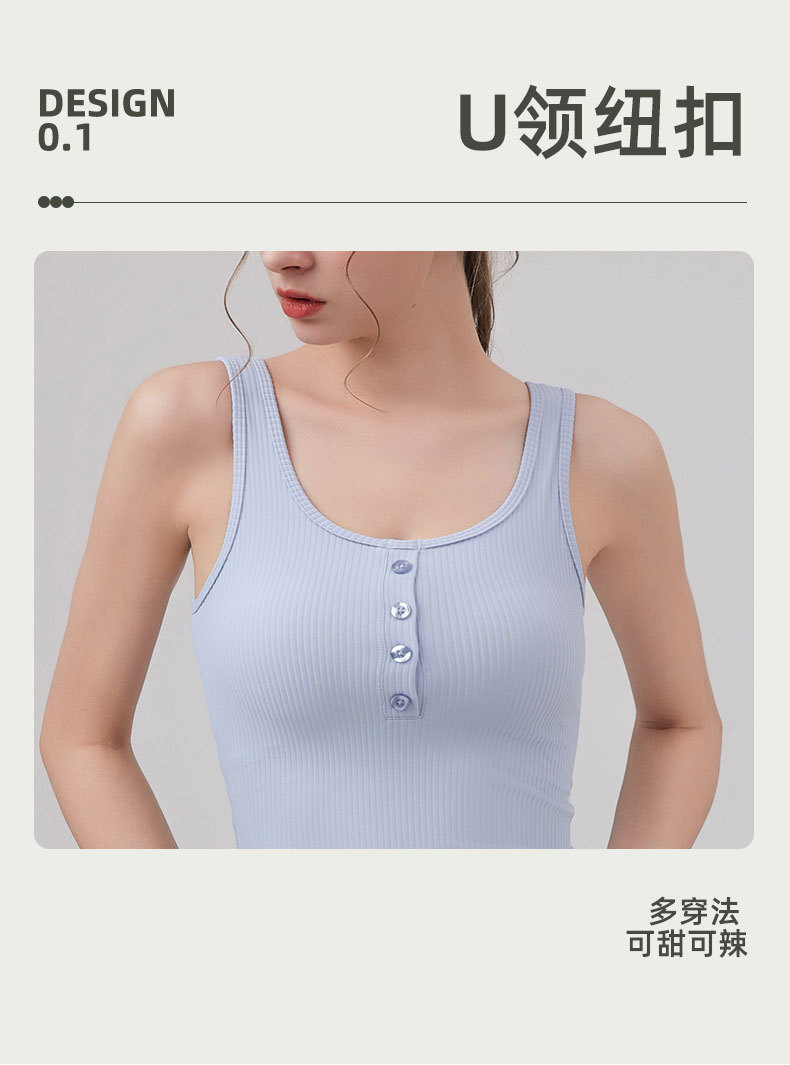 요가 의류 버튼 벨트 가슴 패드 와이드 어깨 스트랩 요가 조끼 여성 스포츠 브라 원피스 노웨어 브라 탑 슬링
