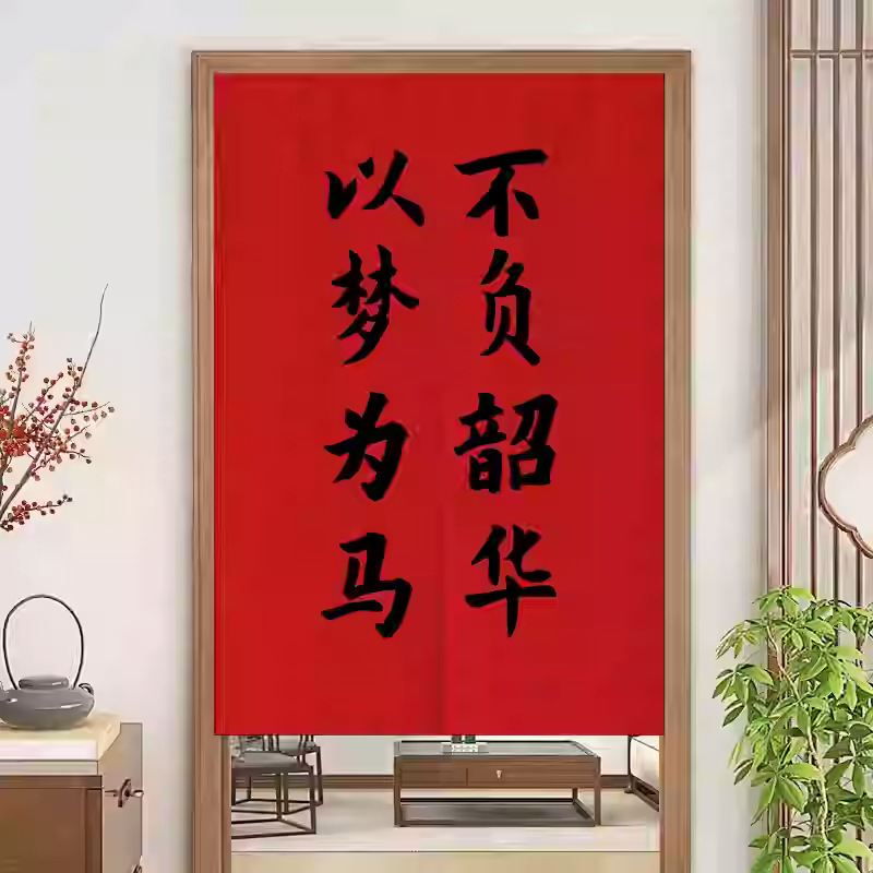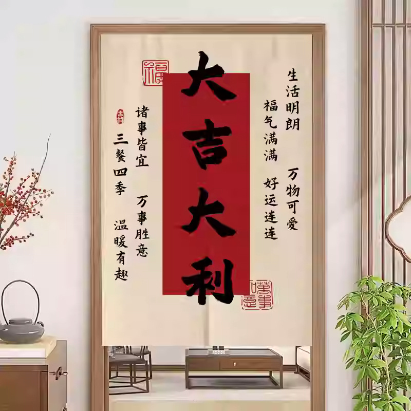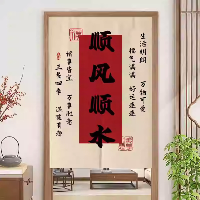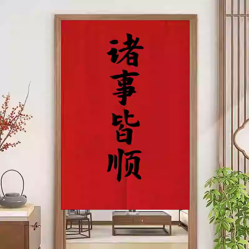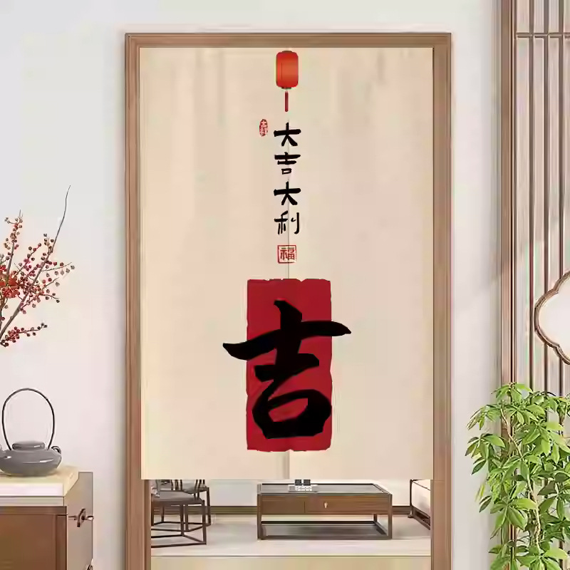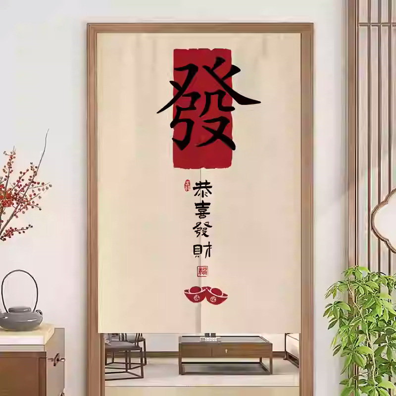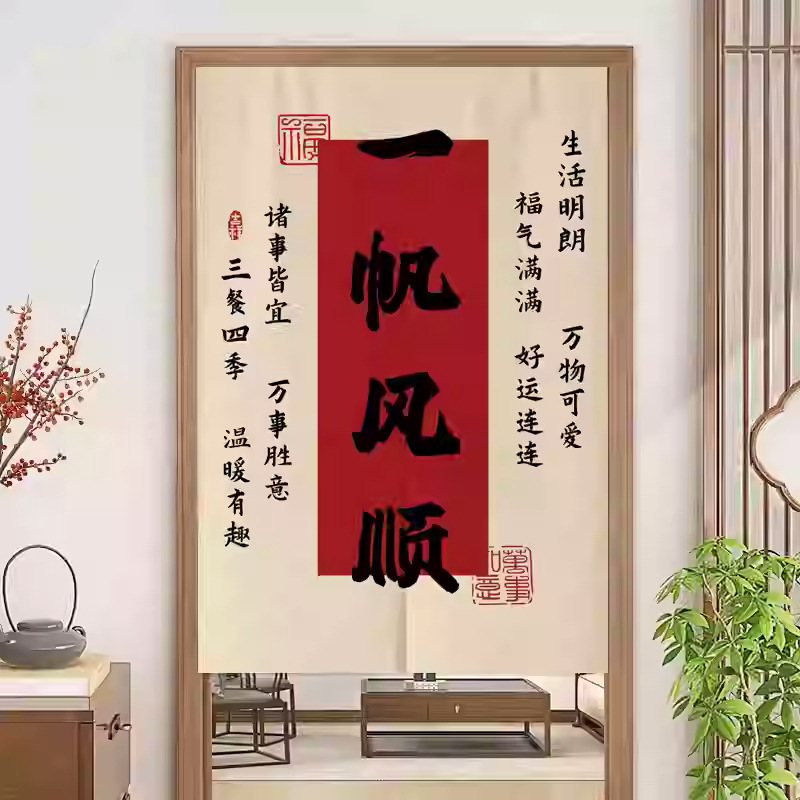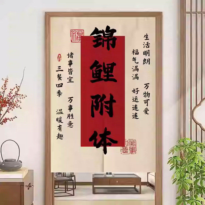 중국 스타일 입구 통로 파티션 도어 커튼 환기 관통성 도어 커튼 절반 커튼 룸 도어 스크린 커튼 텍스트 천 커튼스토어 가기