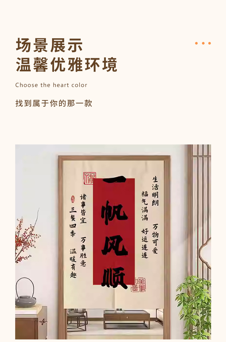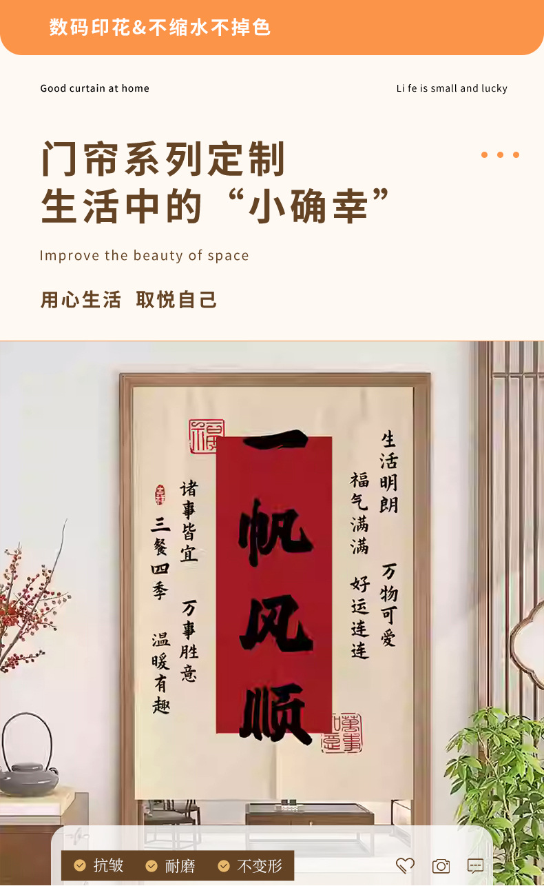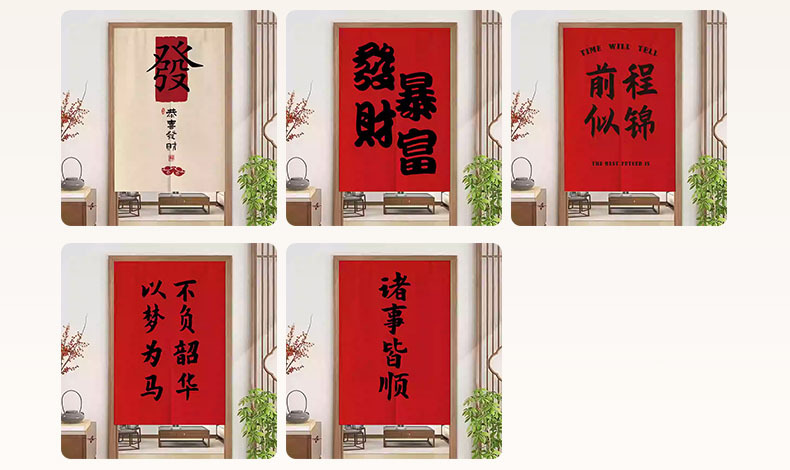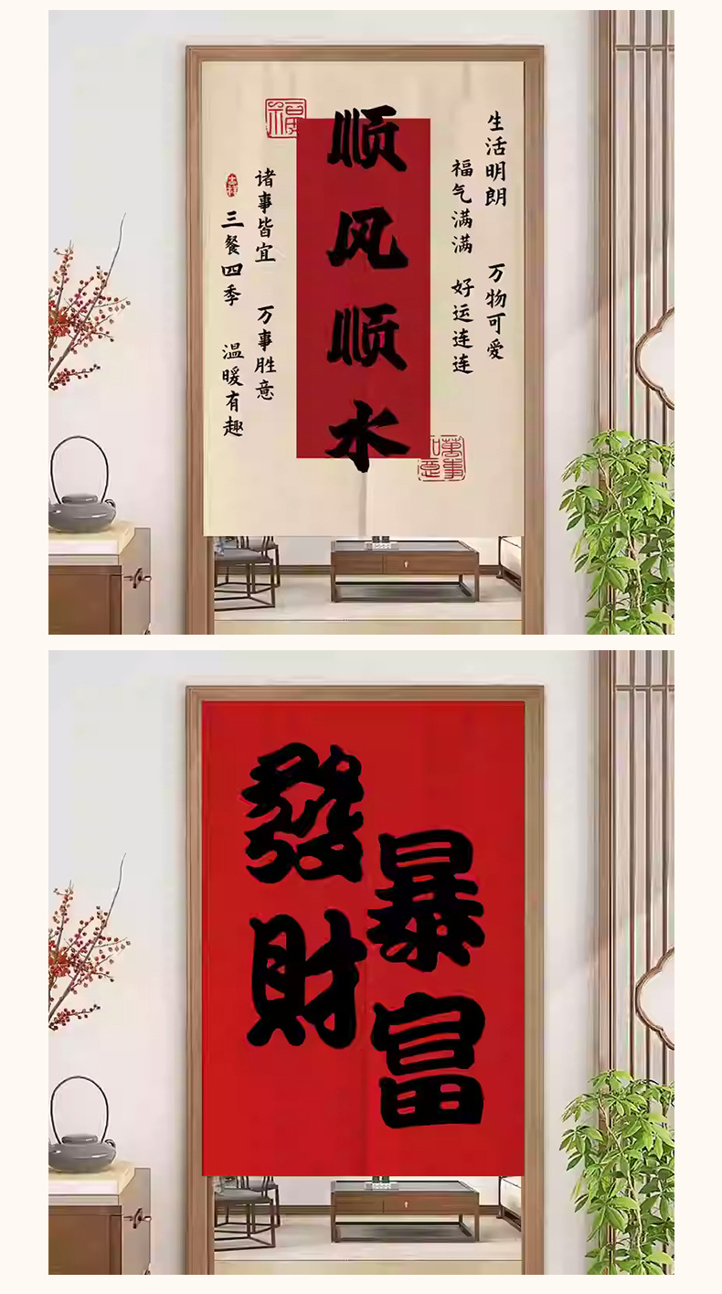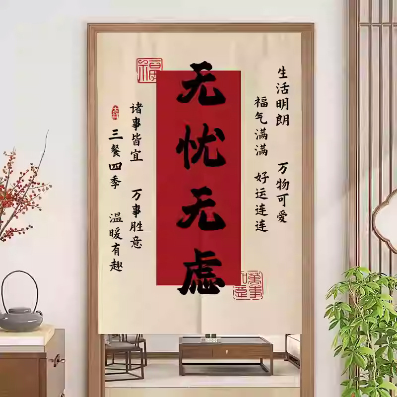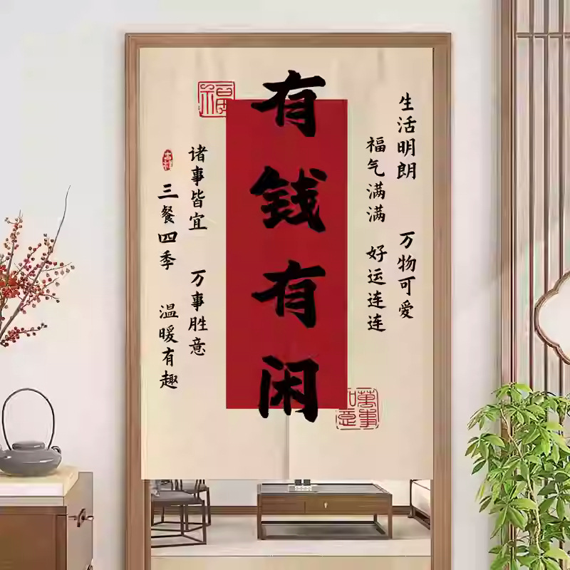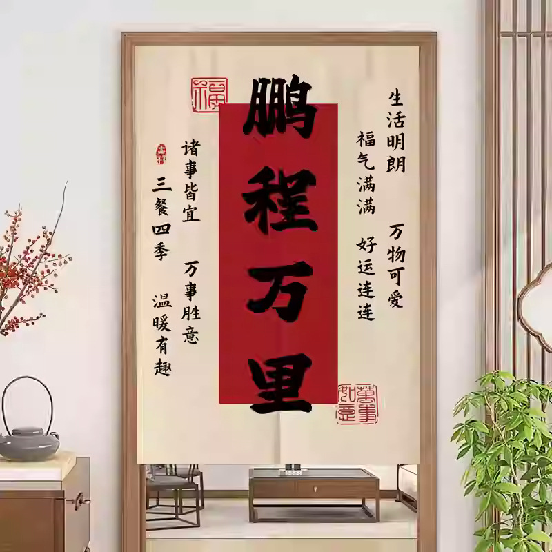 중국 스타일 입구 통로 파티션 도어 커튼 환기 관통성 도어 커튼 절반 커튼 룸 도어 스크린 커튼 텍스트 천 커튼스토어 가기