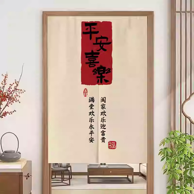 중국 스타일 입구 통로 파티션 도어 커튼 환기 관통성 도어 커튼 절반 커튼 룸 도어 스크린 커튼 텍스트 천 커튼