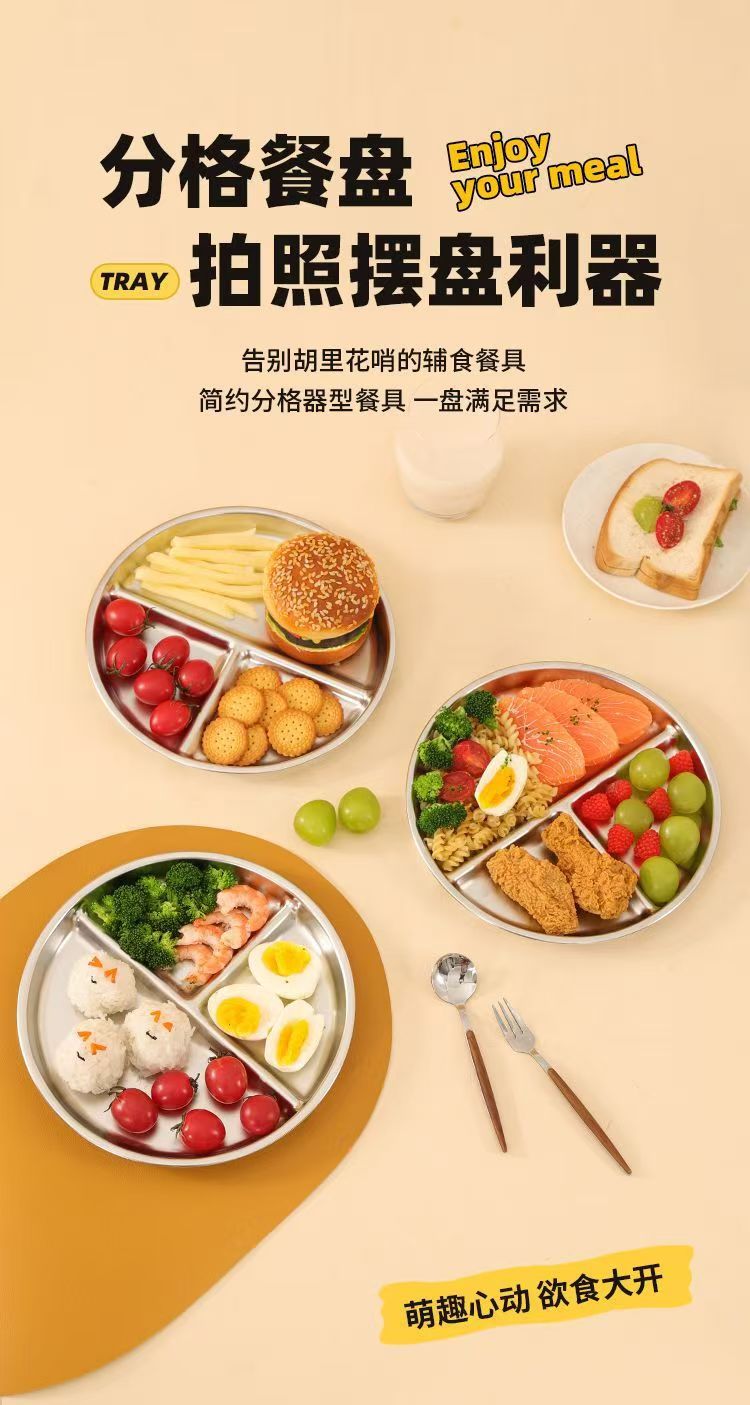 공장 직접 공급 304 스테인레스 스틸 패스트 푸드 플레이트 학교 매점 학생들이 쌀 판 어린이 판을 교차 국경 분할스토어 가기