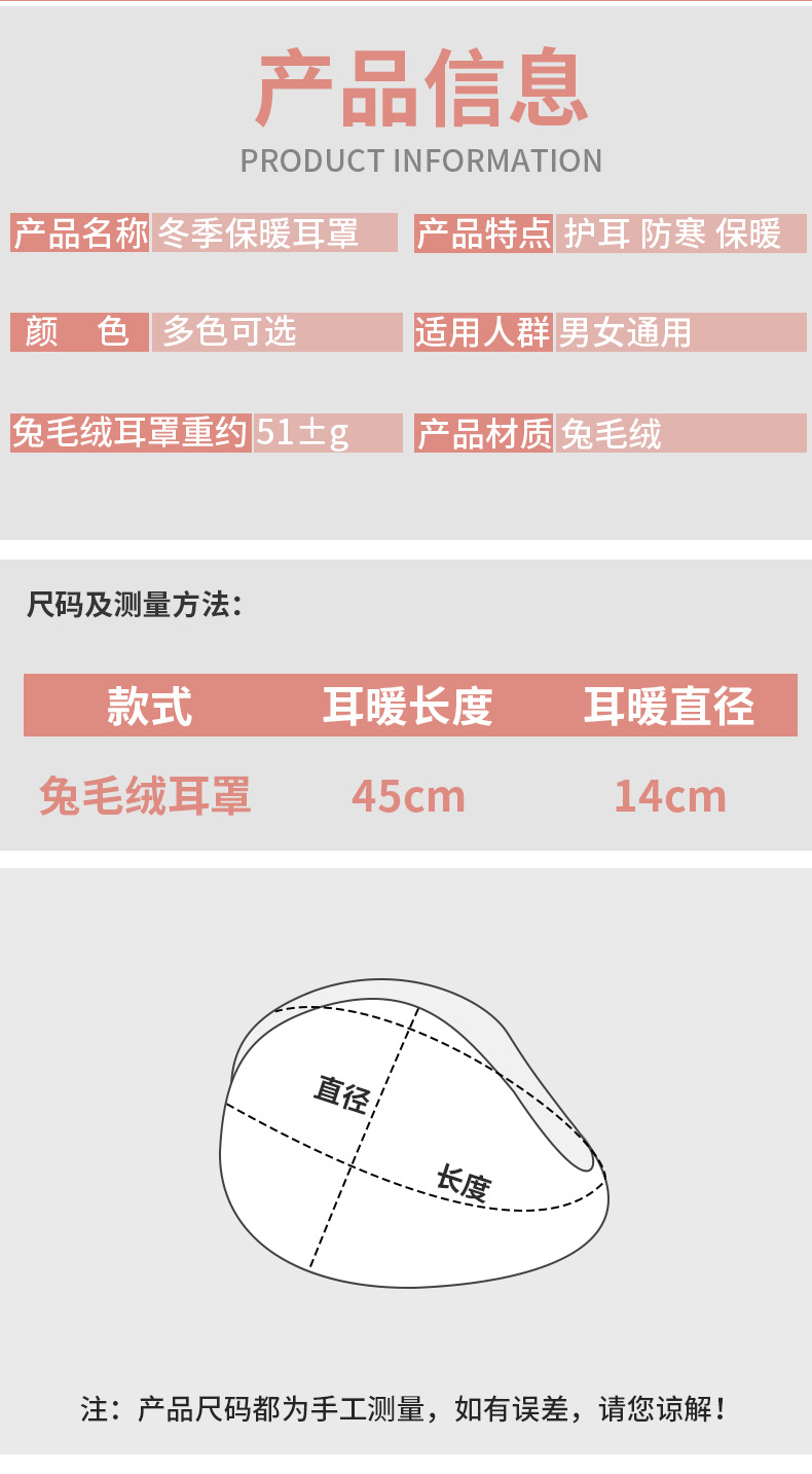 토끼 봉제 귀마개 겨울 유니섹스 따뜻한 귀마개 귀 보호 귀마개 오토바이 타고 부동액 귀마개