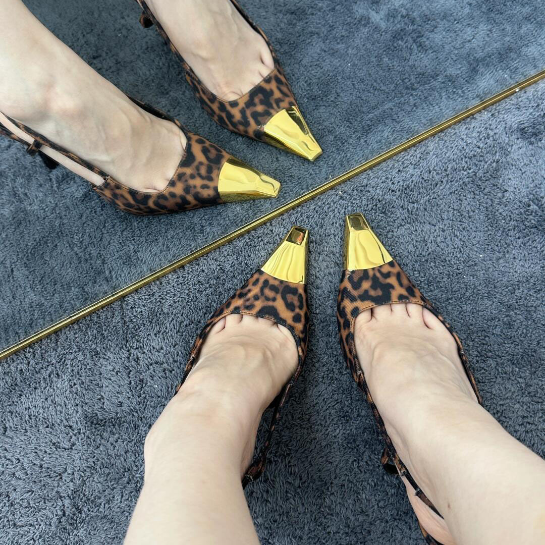 Yang Shulin New Metallic Square Head Leopard 하이힐 샌들 여성용 2025 년 여름 Baotou 후면 빈 펌프 여성용 싱글 레이어 신발스토어 가기