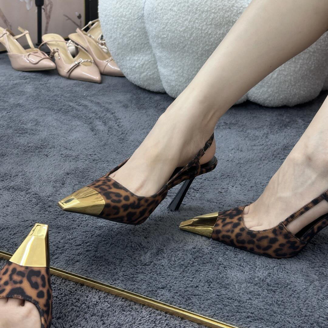 Yang Shulin New Metallic Square Head Leopard 하이힐 샌들 여성용 2025 년 여름 Baotou 후면 빈 펌프 여성용 싱글 레이어 신발
