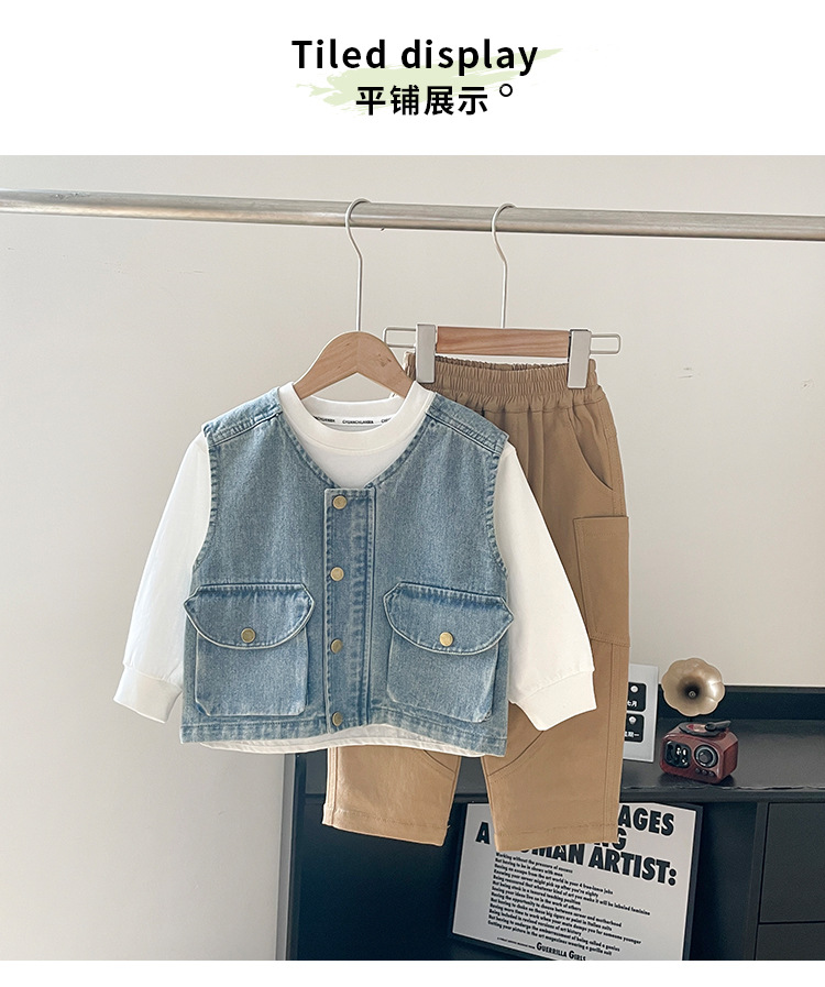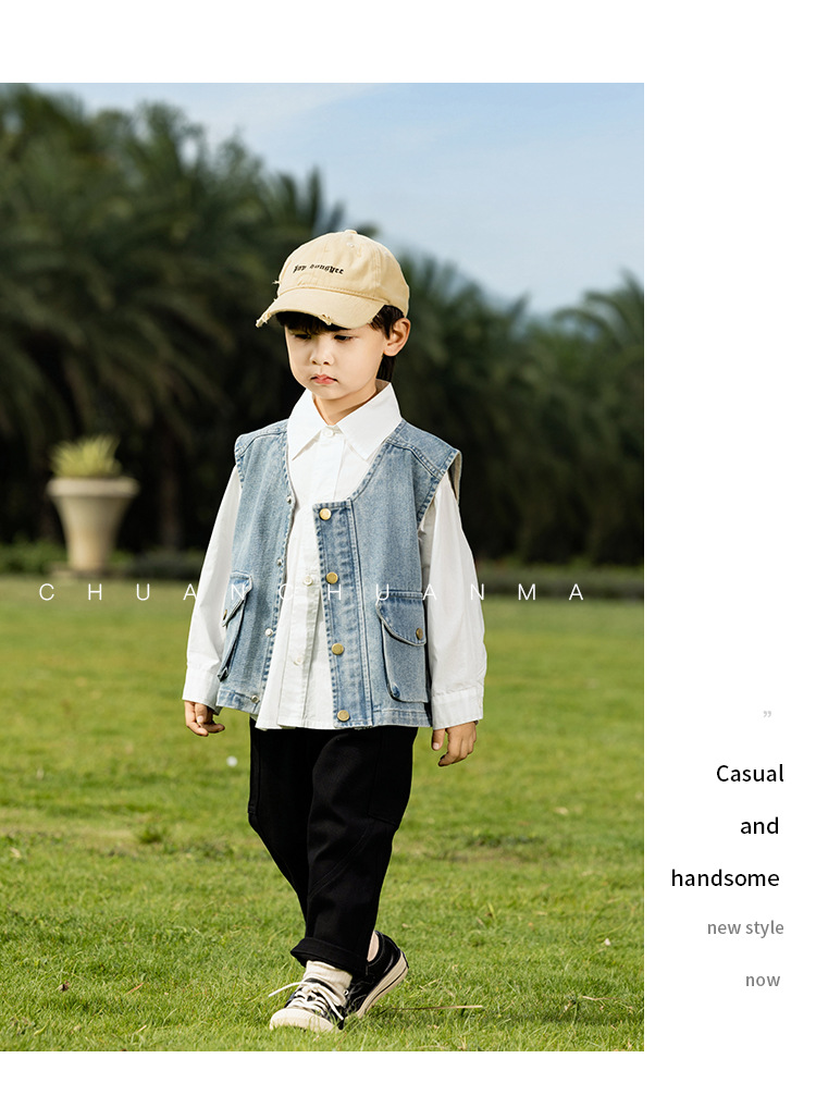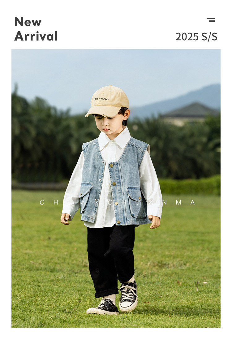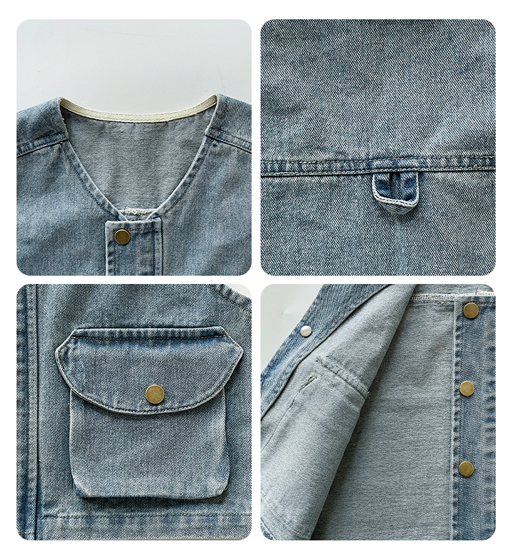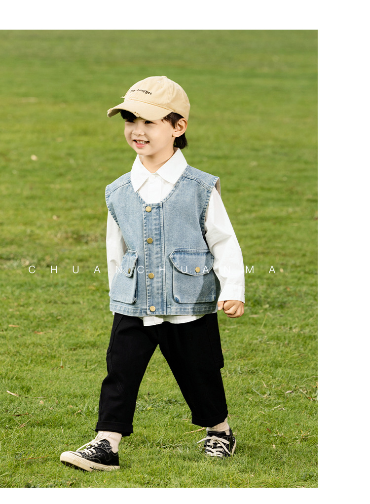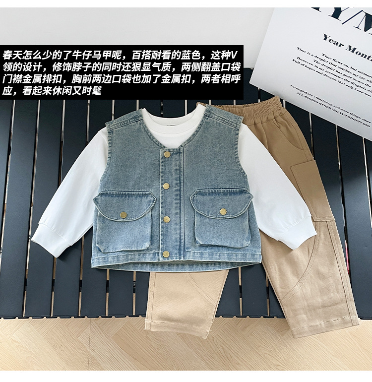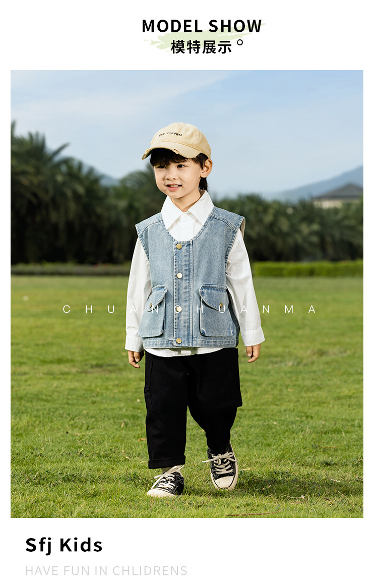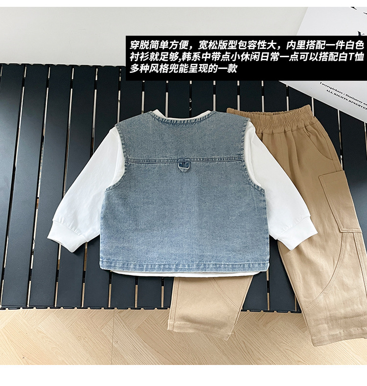 바람의 계곡 2025 봄 새 아동복 어린이 빈티지 세탁 데님 조끼 소년 소녀를위한 올 매치 워크 숄더 웨어스토어 가기