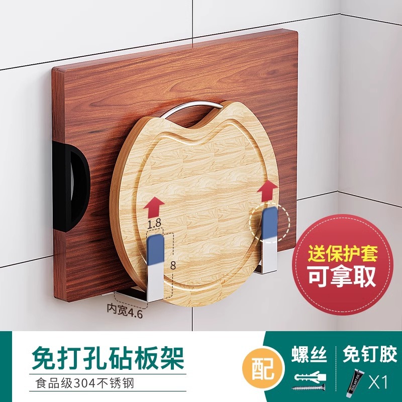 304 스테인레스 스틸 주방 보관 랙 벽걸이 형 나이프 랙 도마 도마 저장 용품 가정용 펀치없는