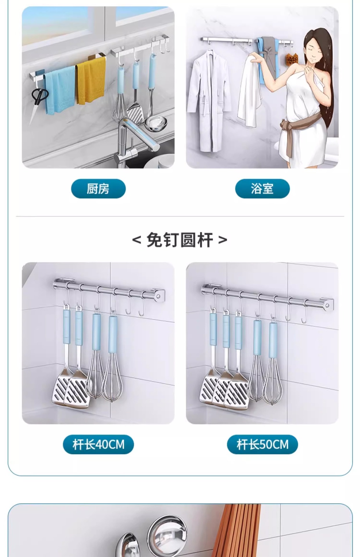 • 못이 없는 50cm 걸이봉(걸이봉 6개 포함)