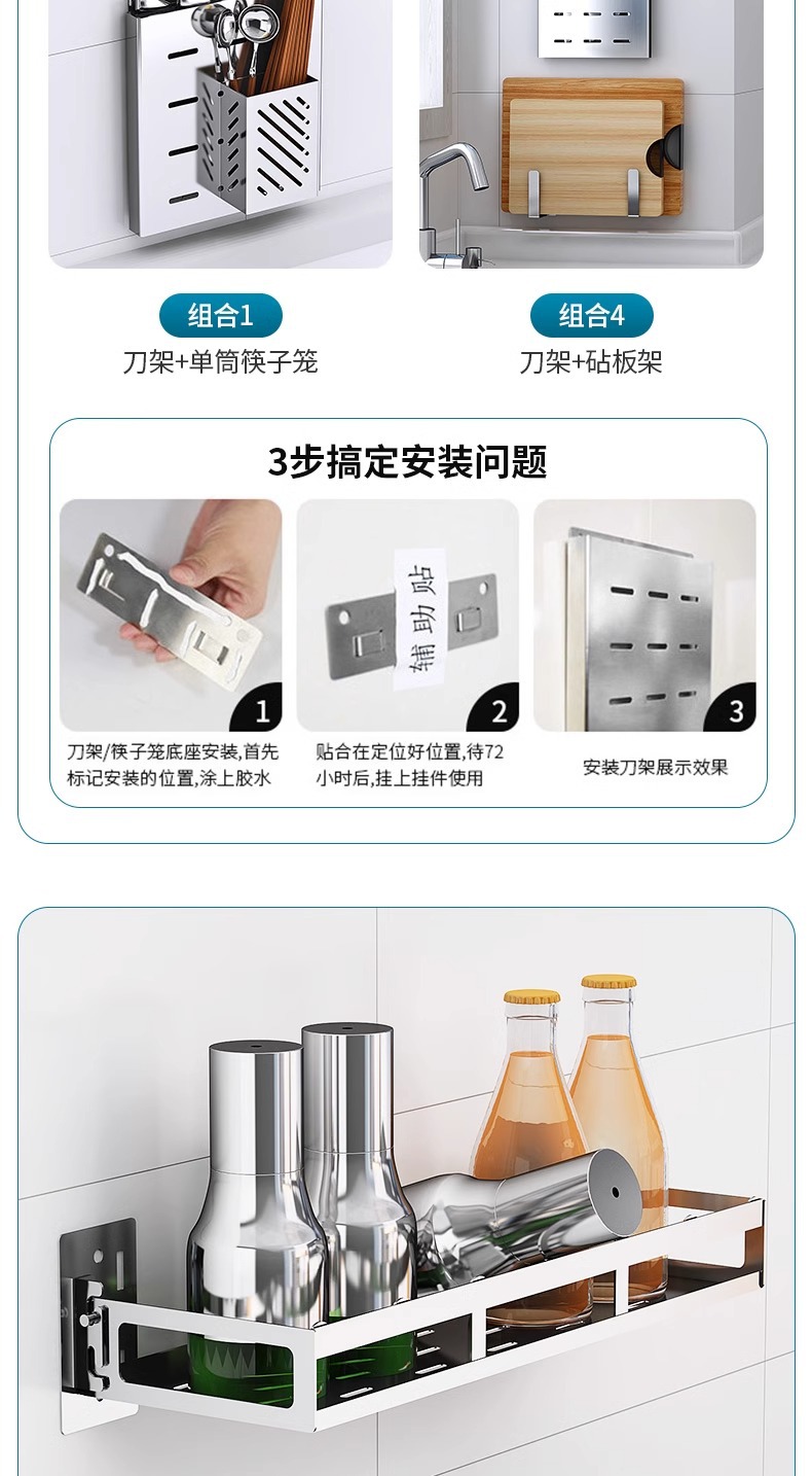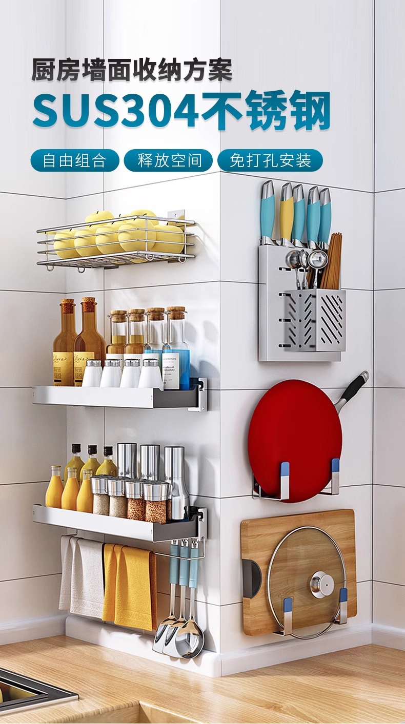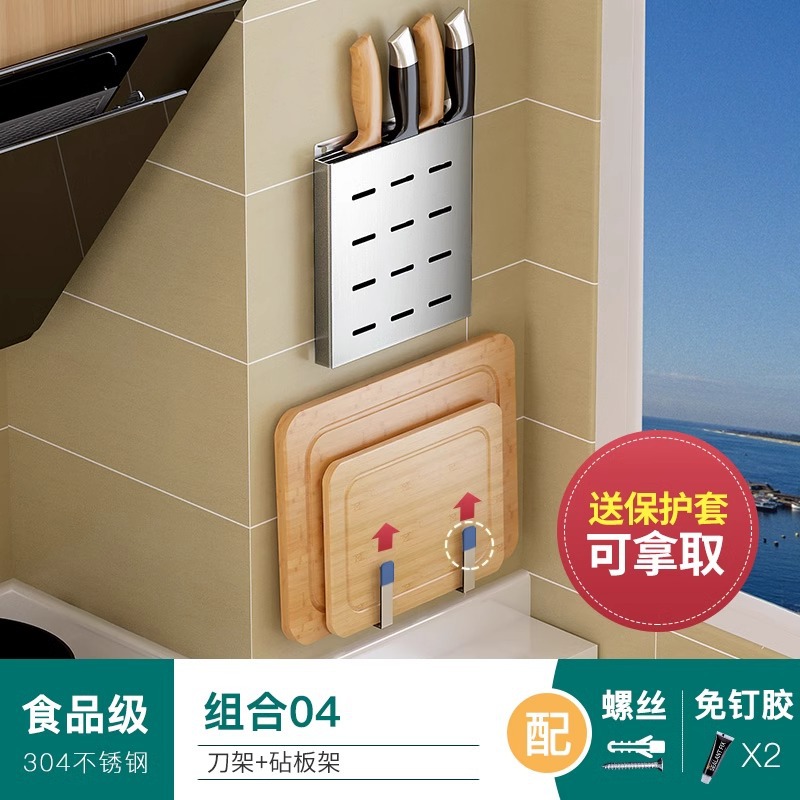 304 스테인레스 스틸 주방 보관 랙 벽걸이 형 나이프 랙 도마 도마 저장 용품 가정용 펀치없는스토어 가기