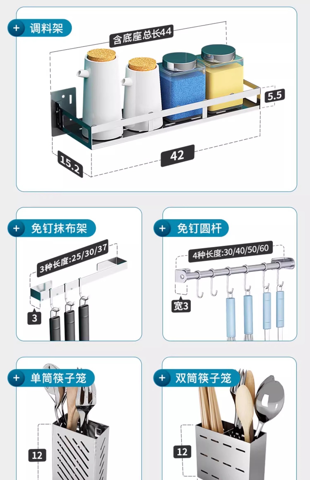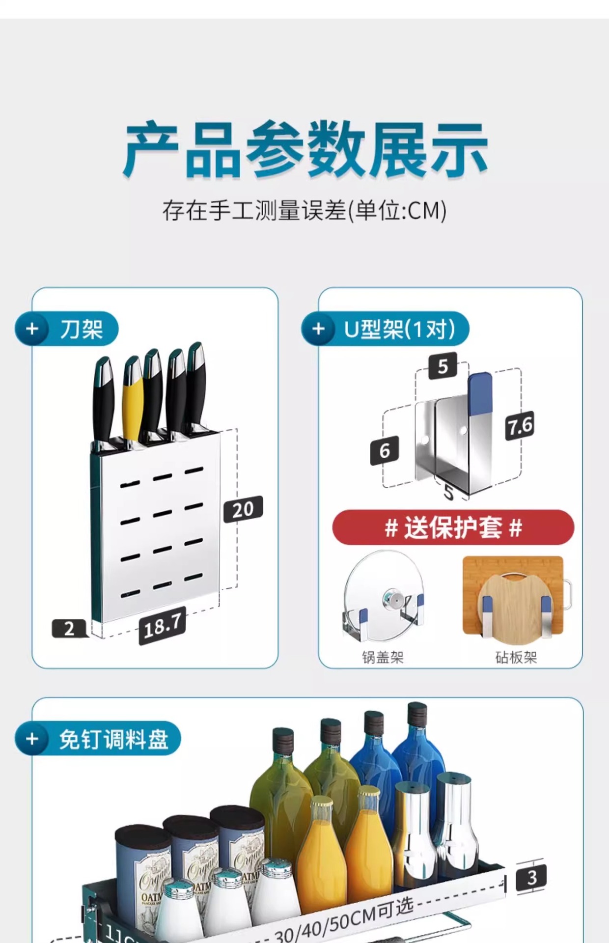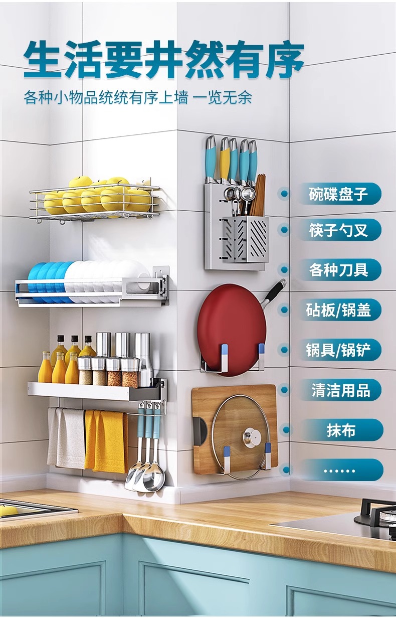 304 스테인레스 스틸 주방 보관 랙 벽걸이 형 나이프 랙 도마 도마 저장 용품 가정용 펀치없는스토어 가기