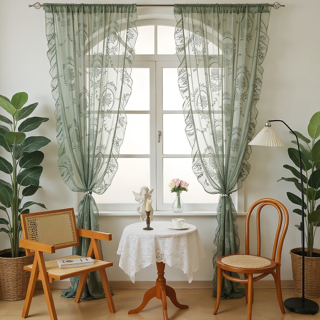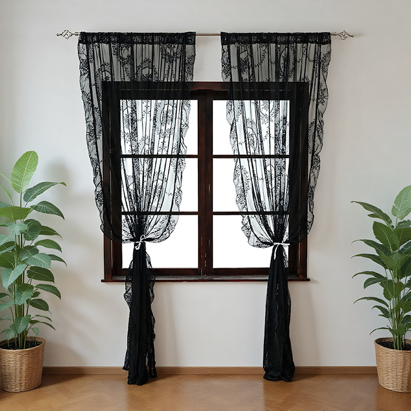새로운 프랑스 라운드 거울 꽃 거즈 커튼 비 천공 침실 거실 발코니 레이스 커튼 공장 도매