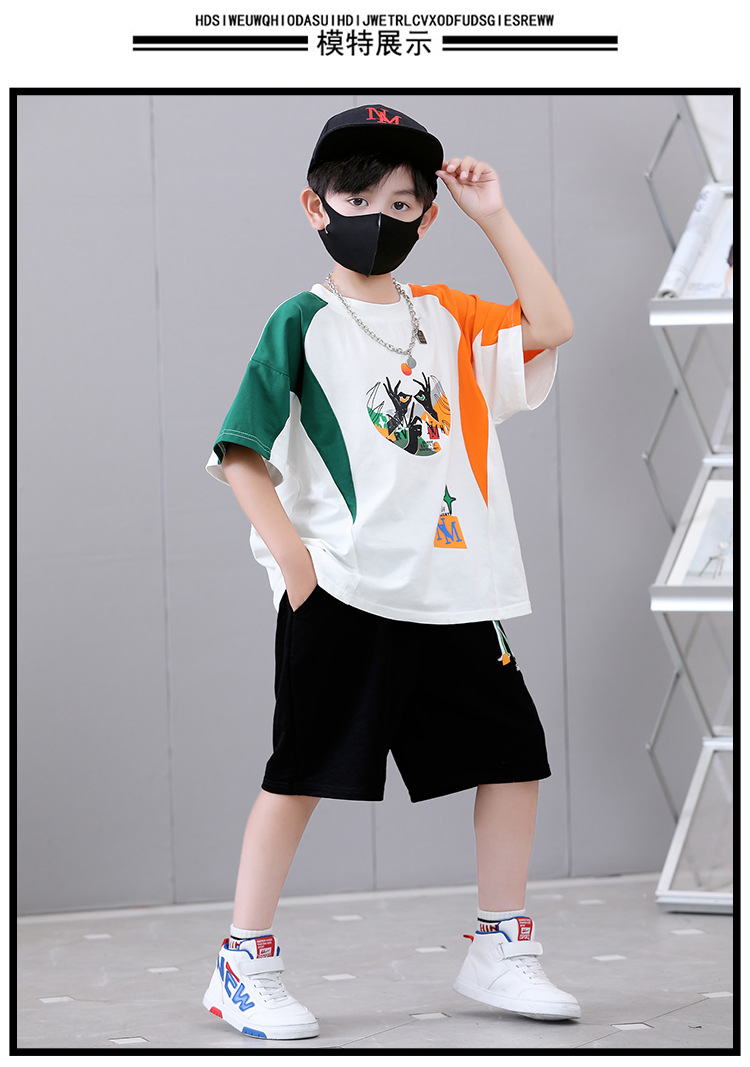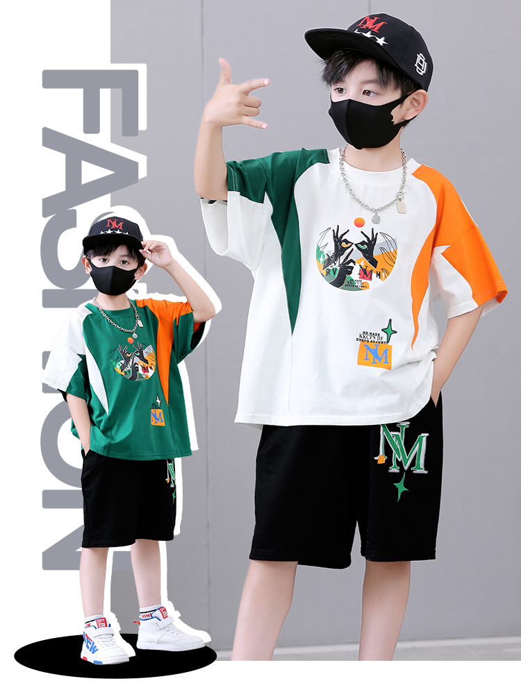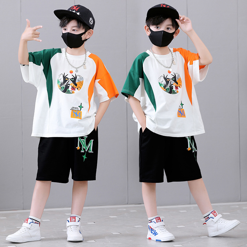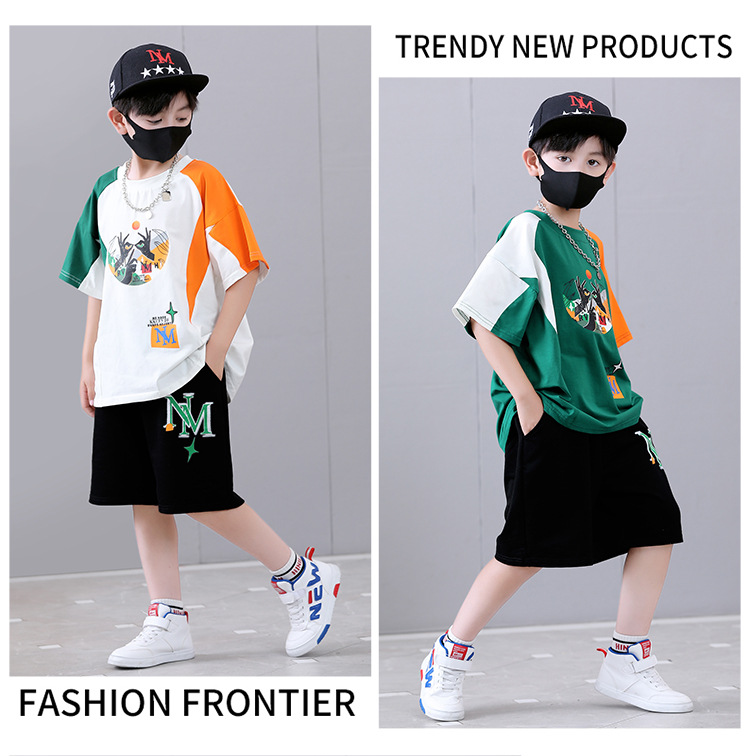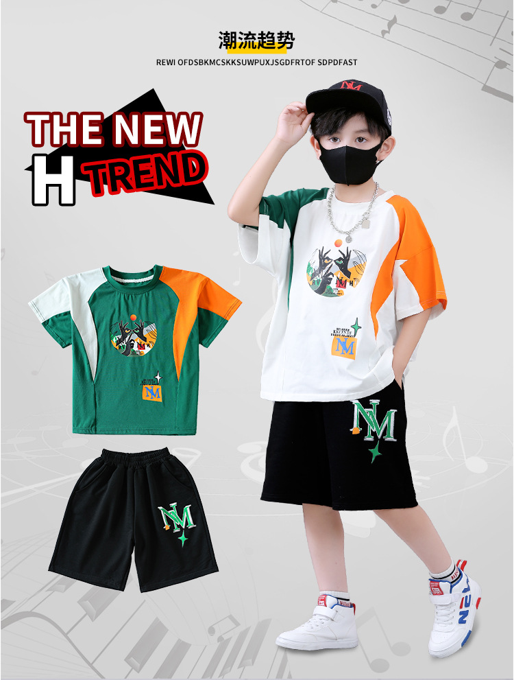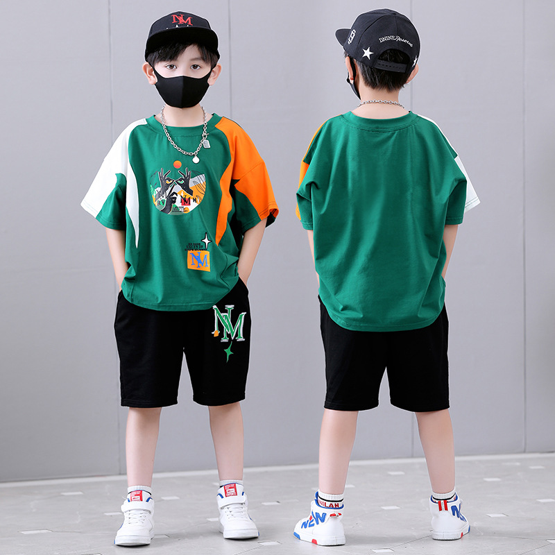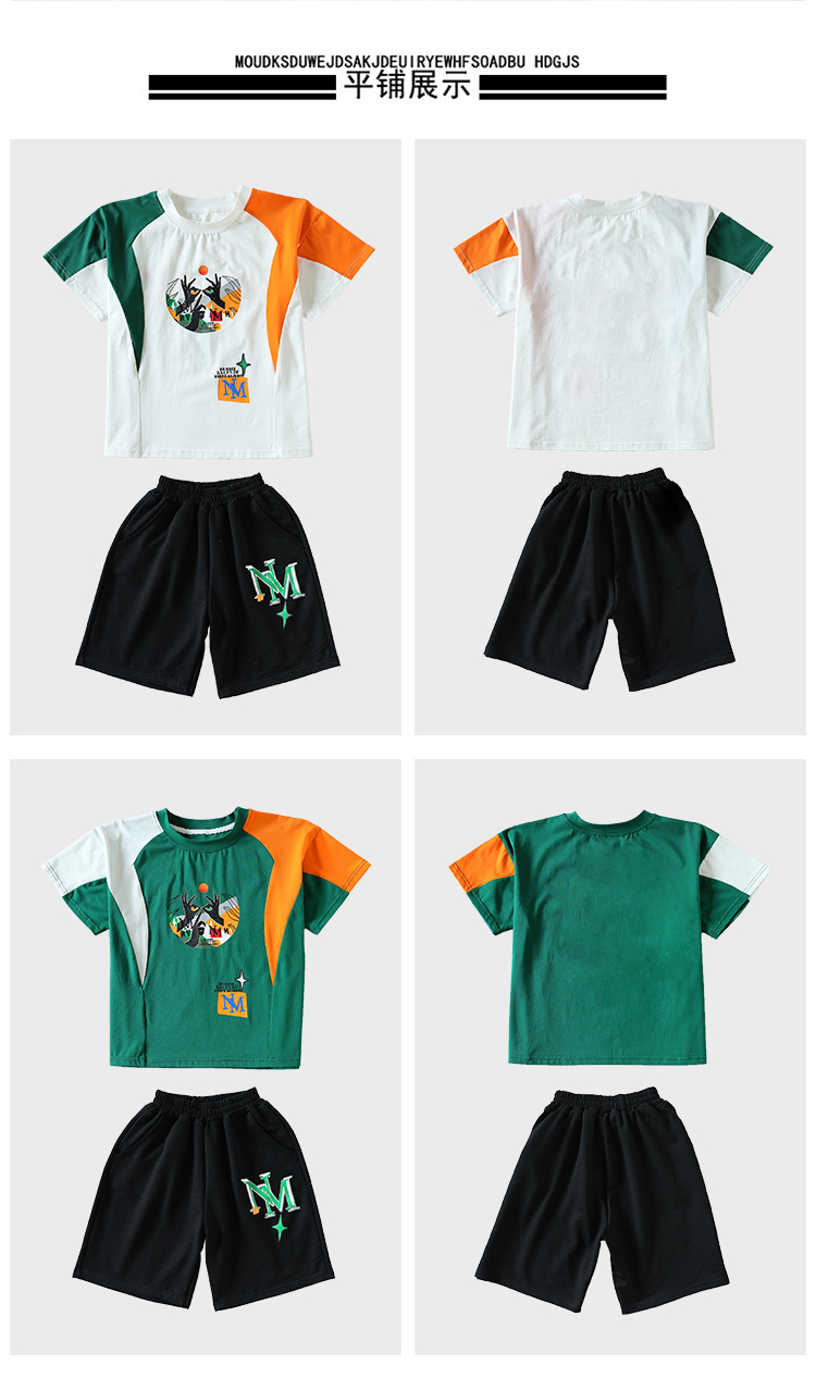 여름 새로운 2024 소년 반팔 스포츠 트렌디 스타일 세트 어린이 잘 생긴 유행 여름 원피스 서양식 투피스 세트스토어 가기