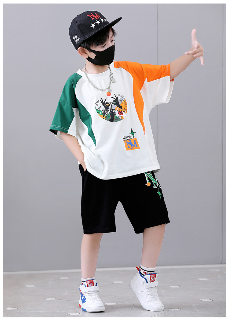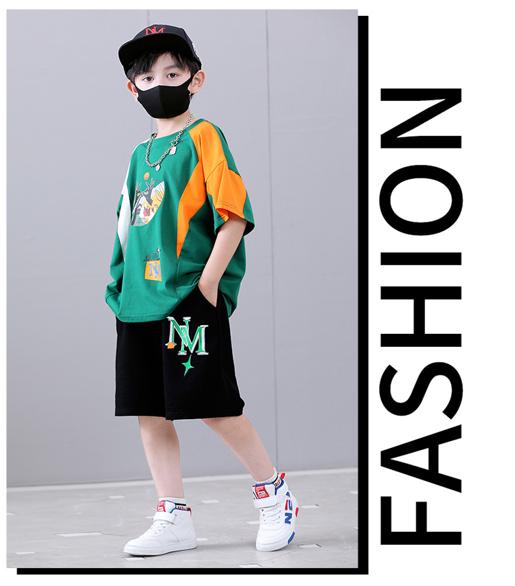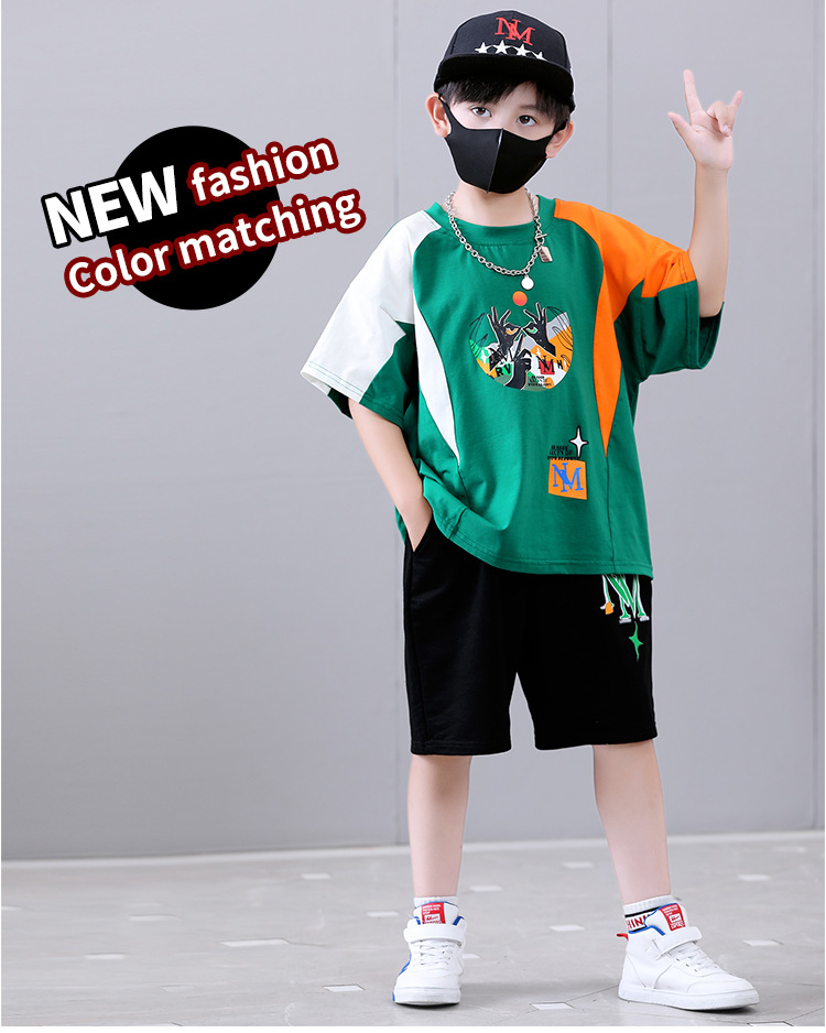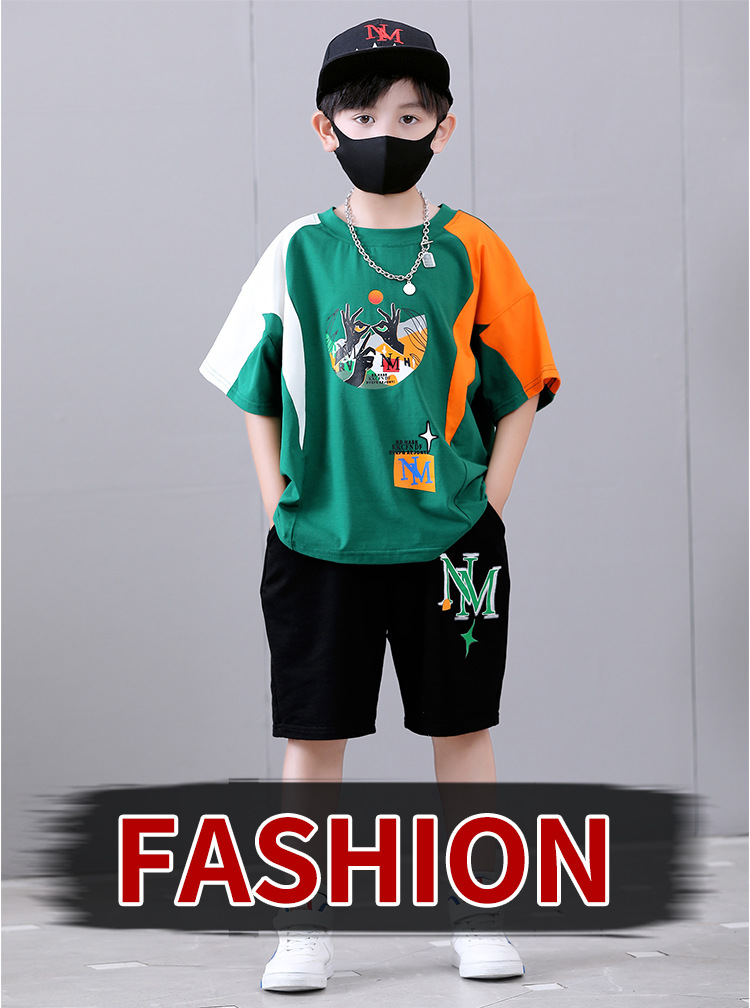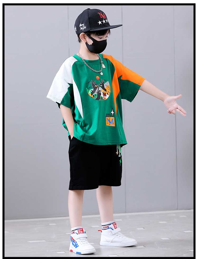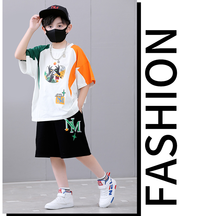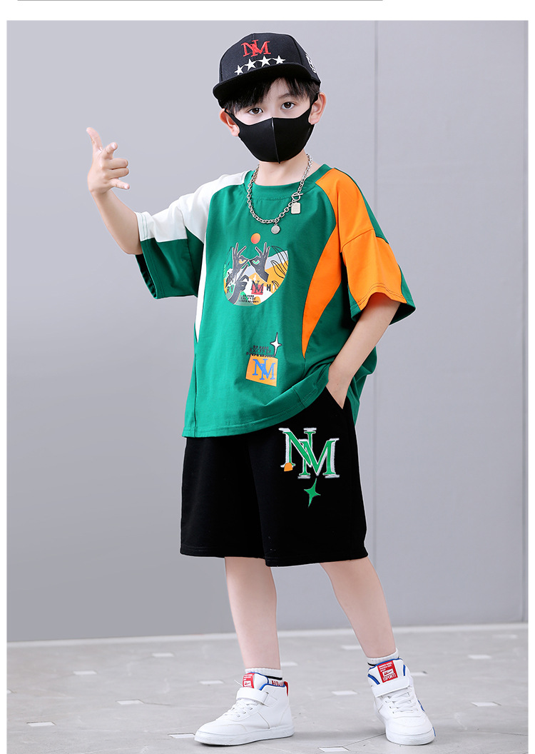 여름 새로운 2024 소년 반팔 스포츠 트렌디 스타일 세트 어린이 잘 생긴 유행 여름 원피스 서양식 투피스 세트스토어 가기