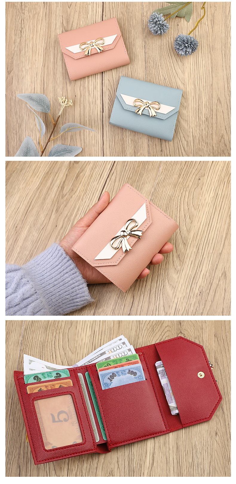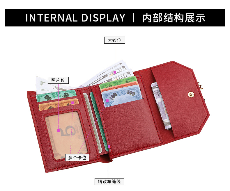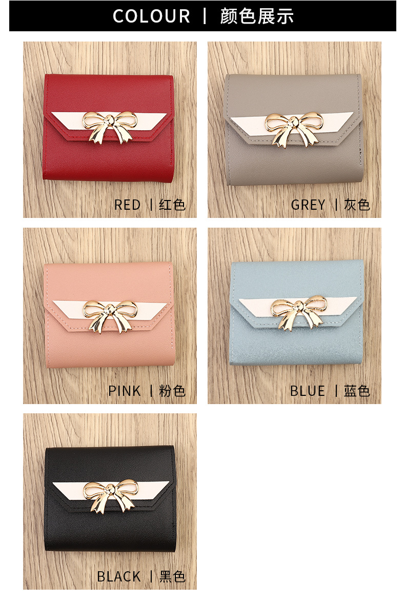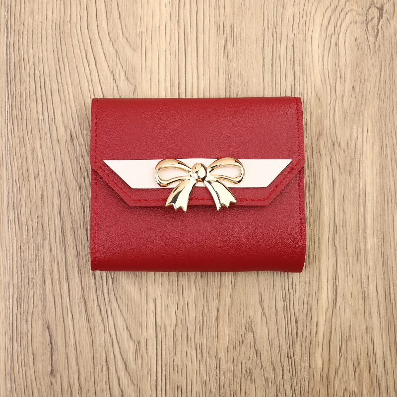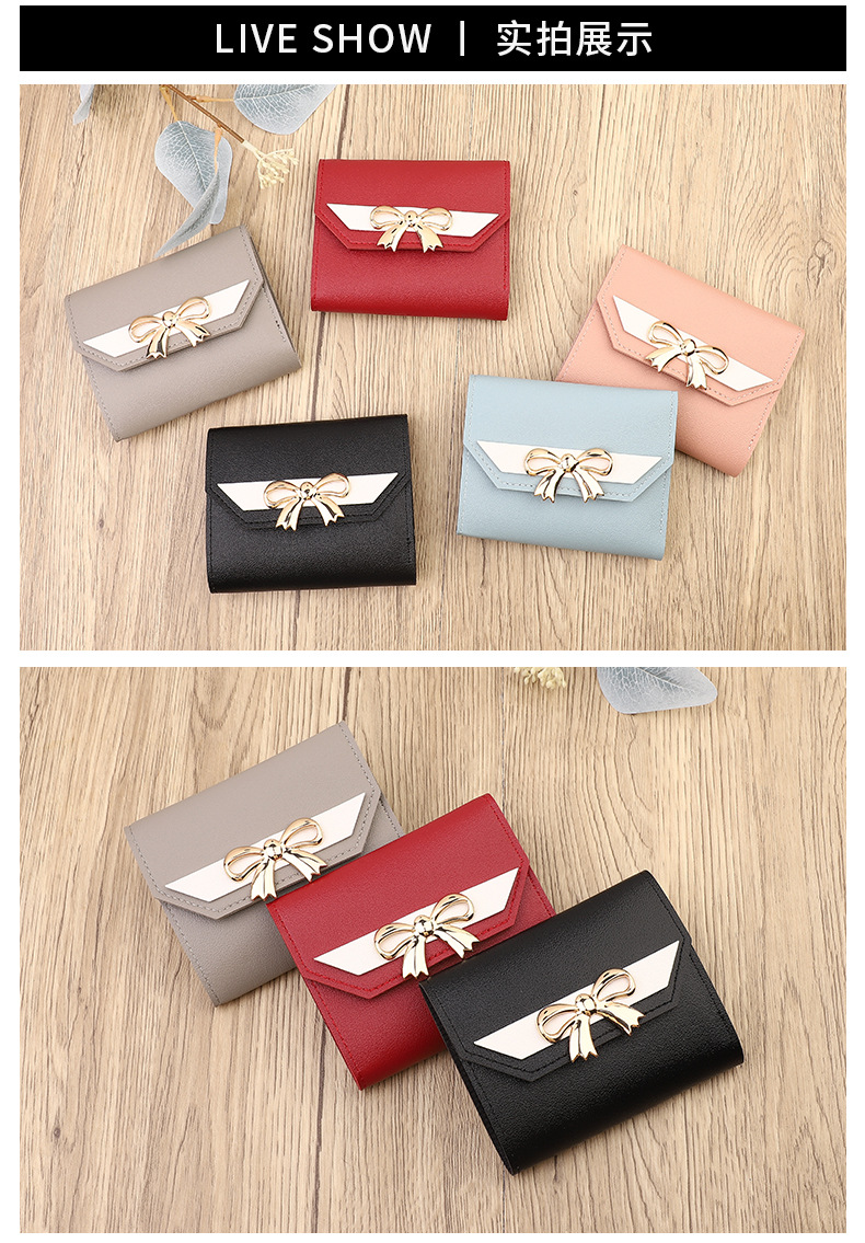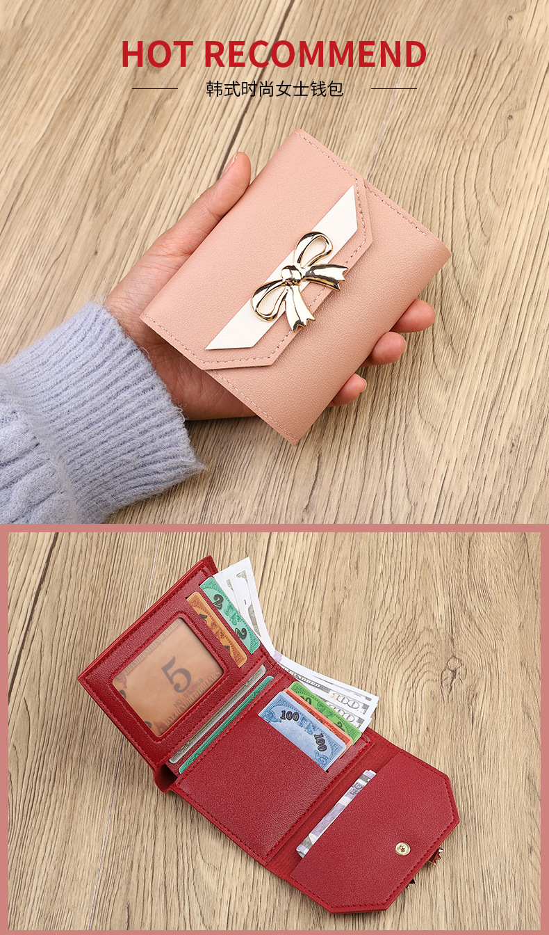 국경 간 일본과 한국 스타일 인스 타 그램 스타일 유행 작은 지갑 여성용 미니 지갑 보우 매듭 3 배 짧은 동전 지갑 카드 가방스토어 가기