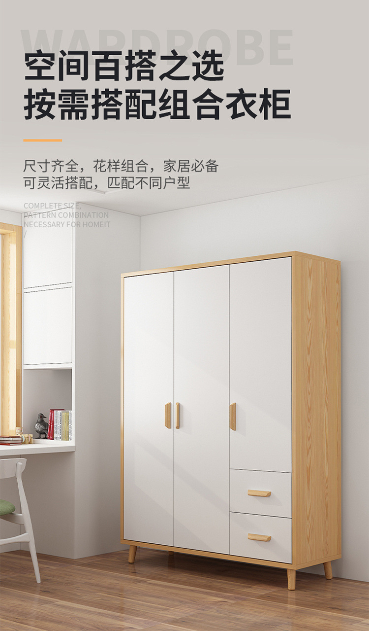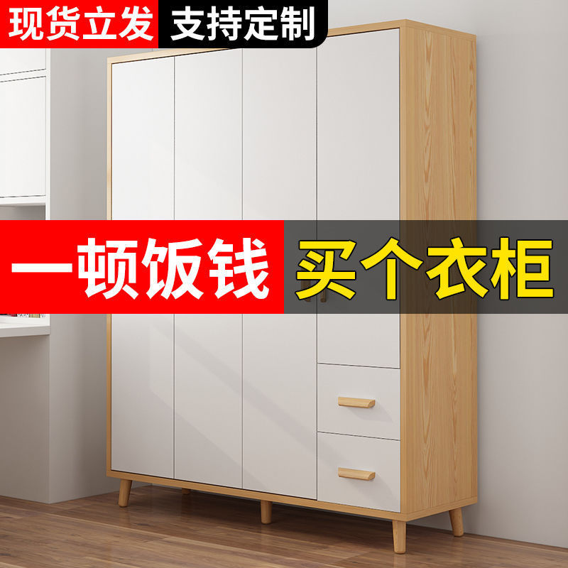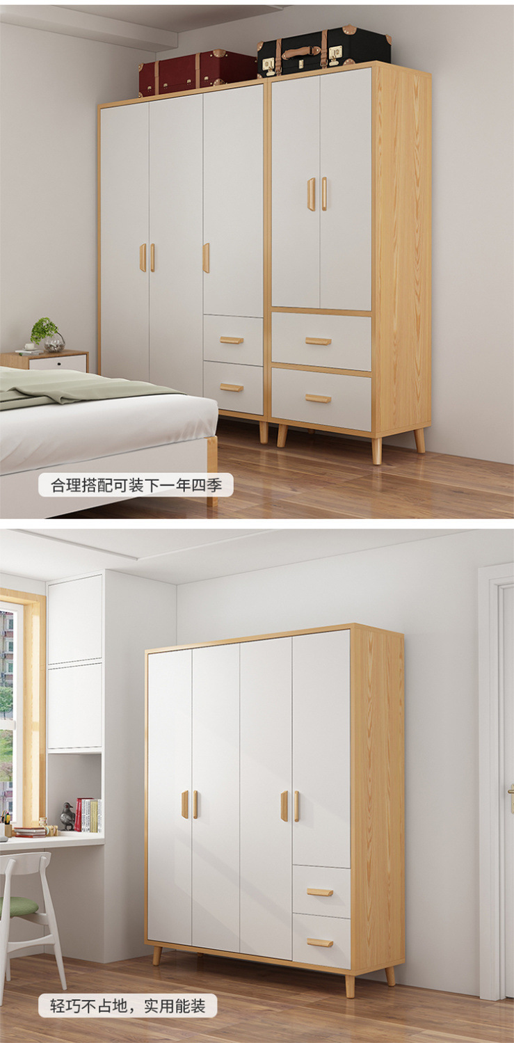 현대 미니멀리스트 침실 보관 캐비닛 대여실 간단한 조립 된 단단한 나무 옷장 경제적 인 어린이 옷장 가정 사용