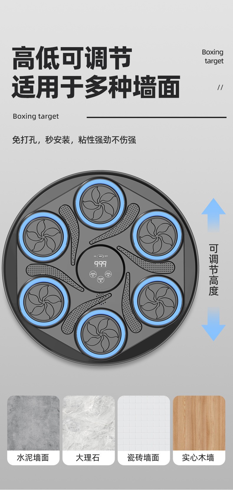 국경 간 공장 직접 음악 권투 벽 목표 블루투스 홈 피트니스 권투 트레이너 어린이 음악 권투 기계스토어 가기