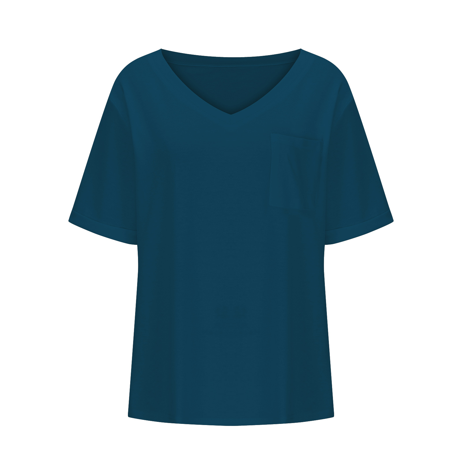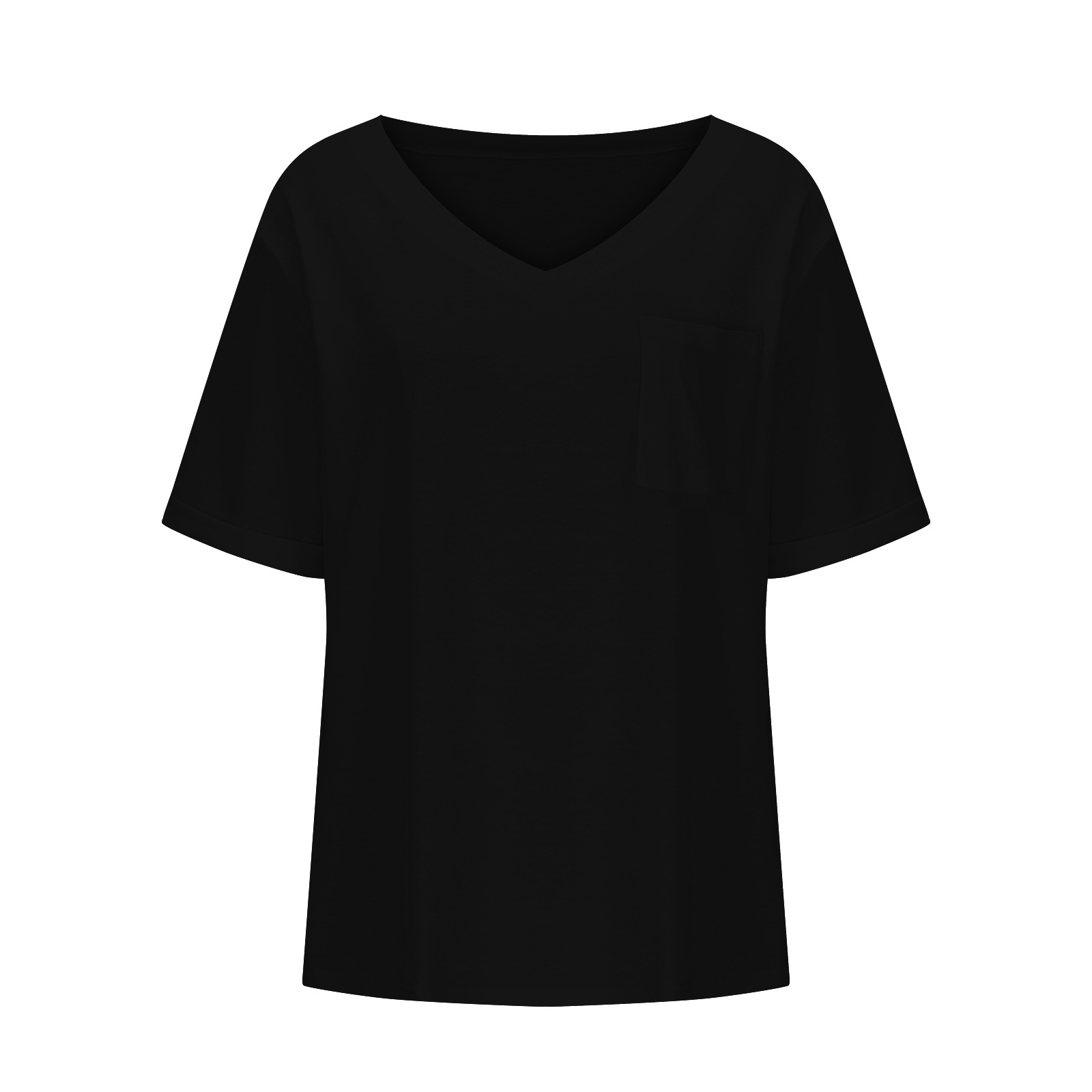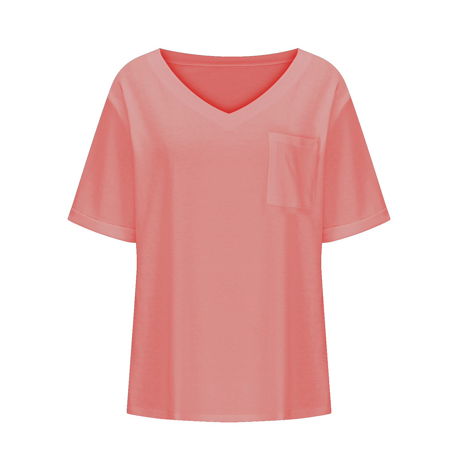 2025 대외 무역 유럽과 미국 아마존 국경 새로운 패션 V 넥 포켓 반팔 여름 느슨한 캐주얼 여성 티셔츠