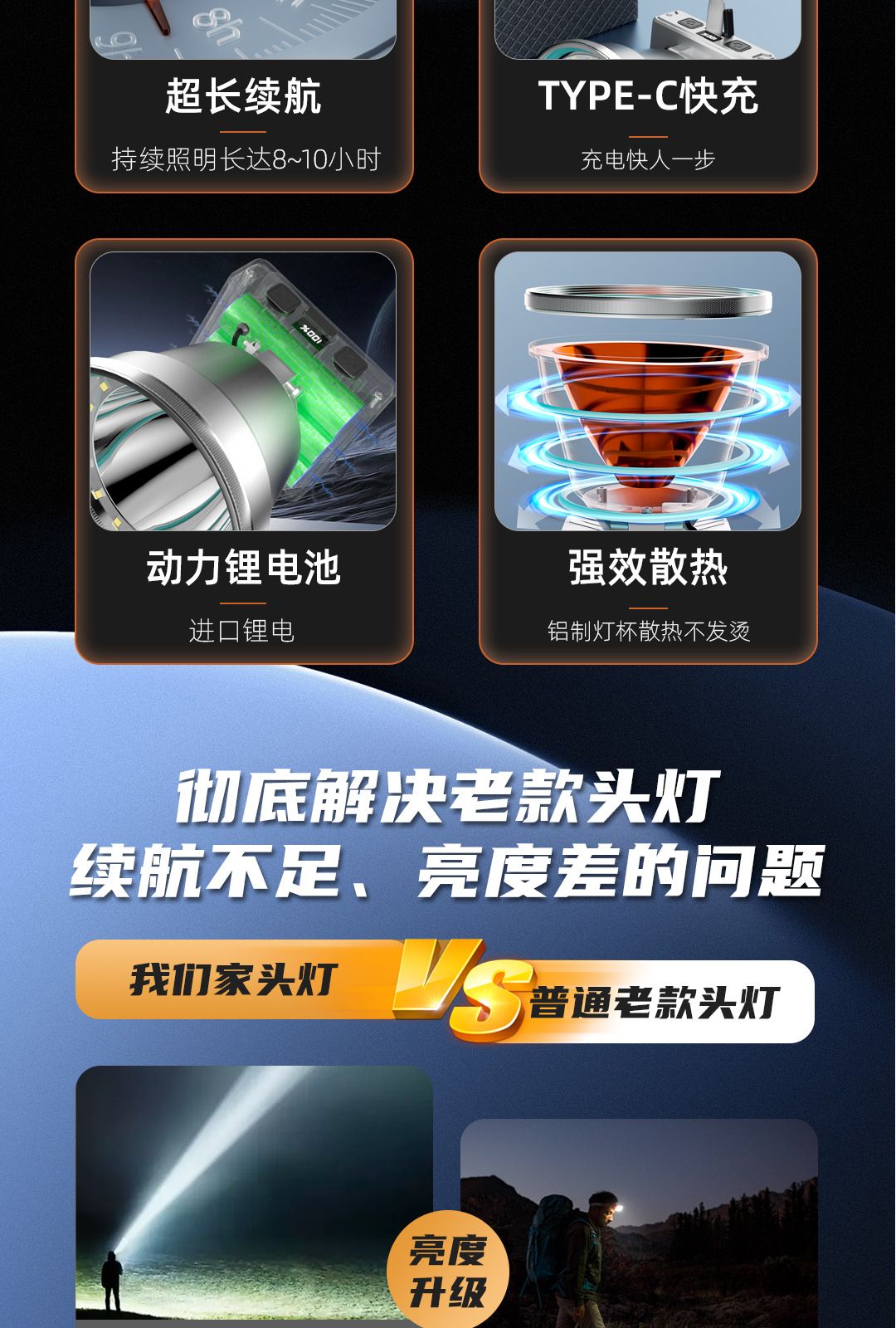 H8c 새로운 플러드 라이트 스포트라이트 전환 가능한 헤드 마운트 헤드 램프 강한 빛 장거리 충전 방수 슈퍼 브라이트 광부의 램프 야외