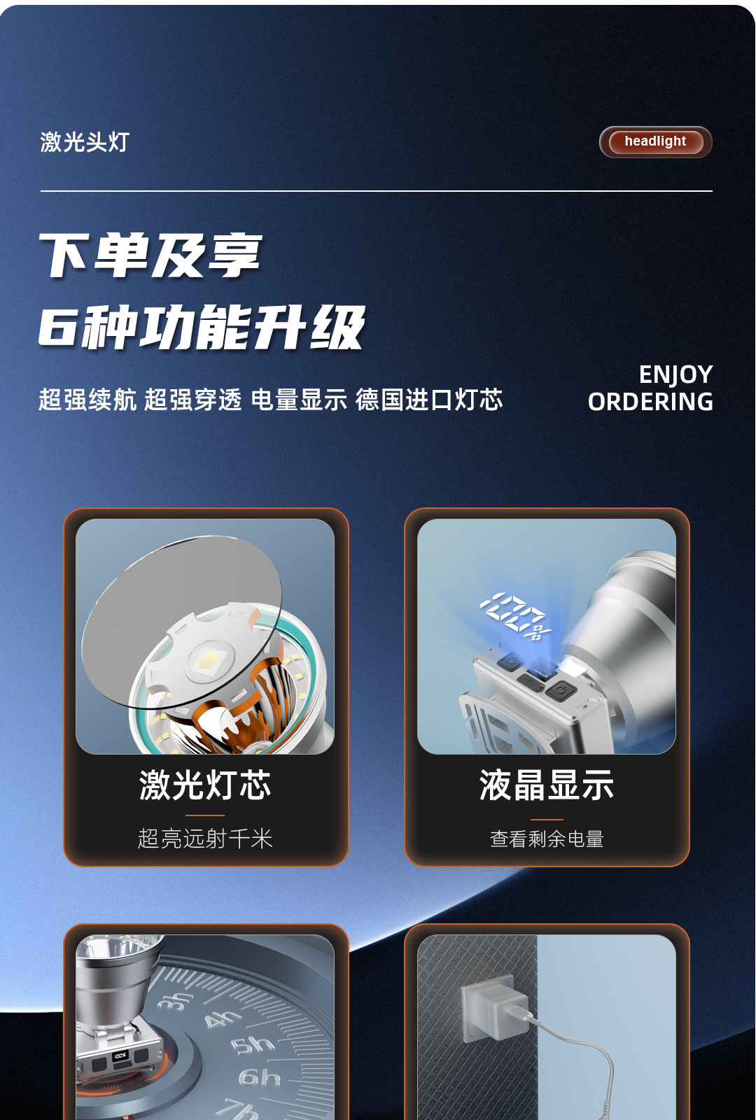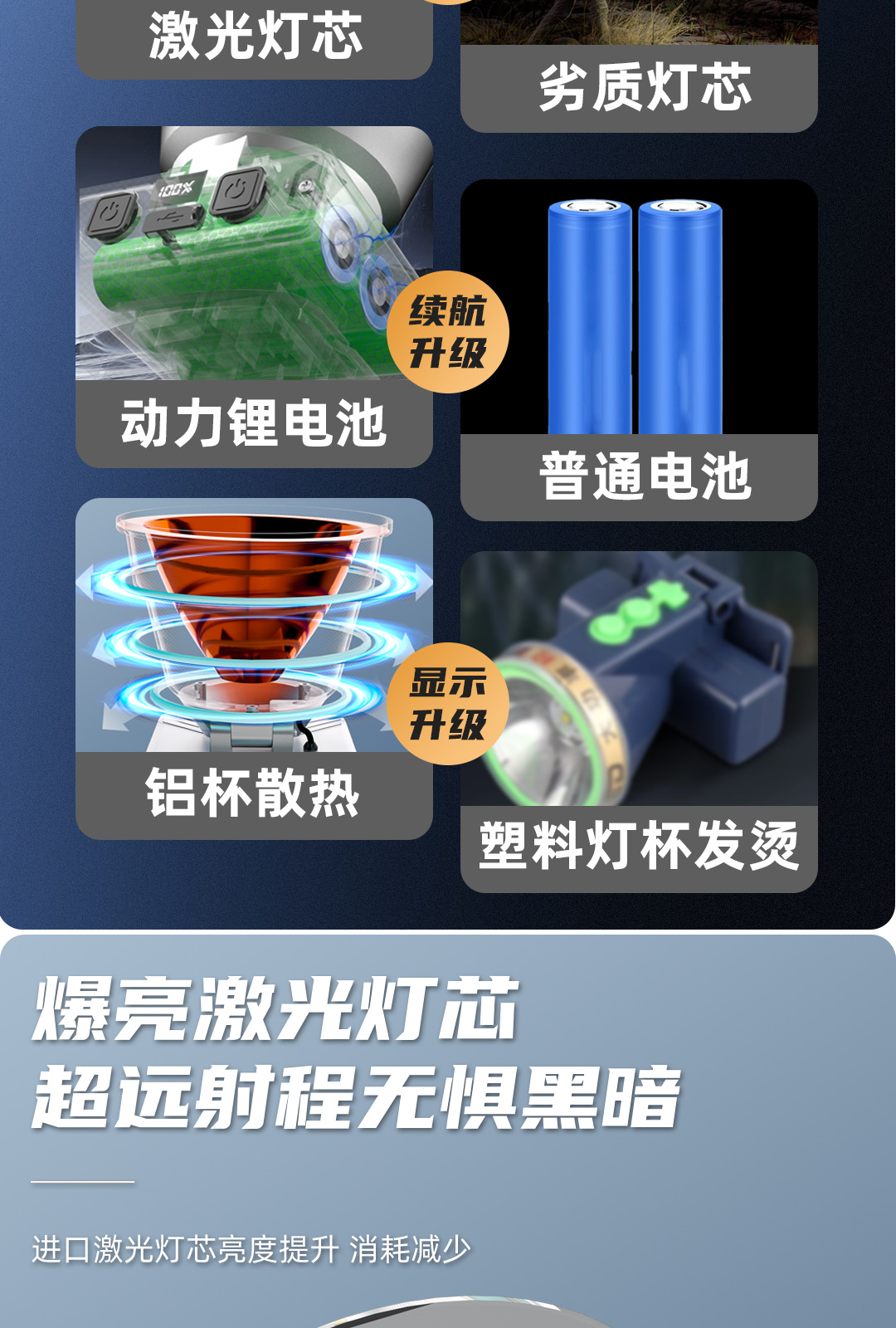 • XJ-9830F 노란색 및 파란색 렌즈가 포함된 포커싱 및 투광 조명 통합 레이저 램프 비드, 배터리 수명 8-10시간
