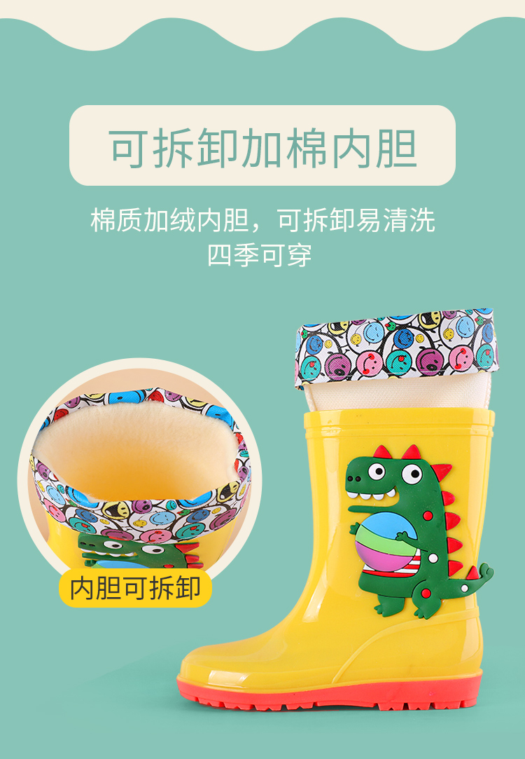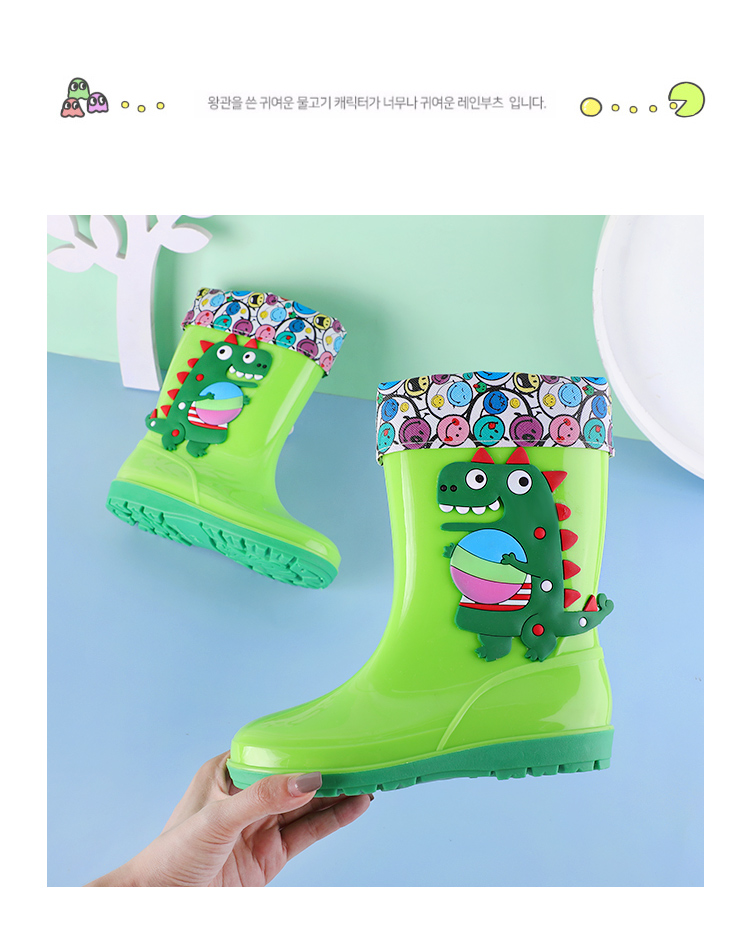 소년 소녀를위한 공룡 어린이 방수 장화 아기 장화 기모 따뜻한 학생 고무 신발 어린이 중 큰 어린이 물 신발