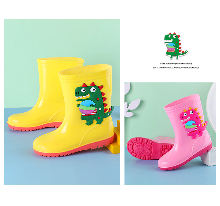 소년 소녀를위한 공룡 어린이 방수 장화 아기 장화 기모 따뜻한 학생 고무 신발 어린이 중 큰 어린이 물 신발스토어 가기