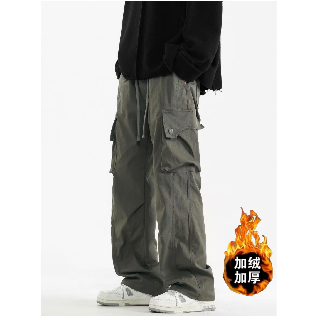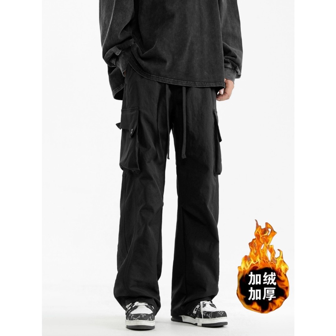 2024 새로운 가을, 겨울 남성 작업복 느슨한 스트레이트 바지 충전 바지 미국 스포츠 봄, 가을 남성용 캐주얼 바지