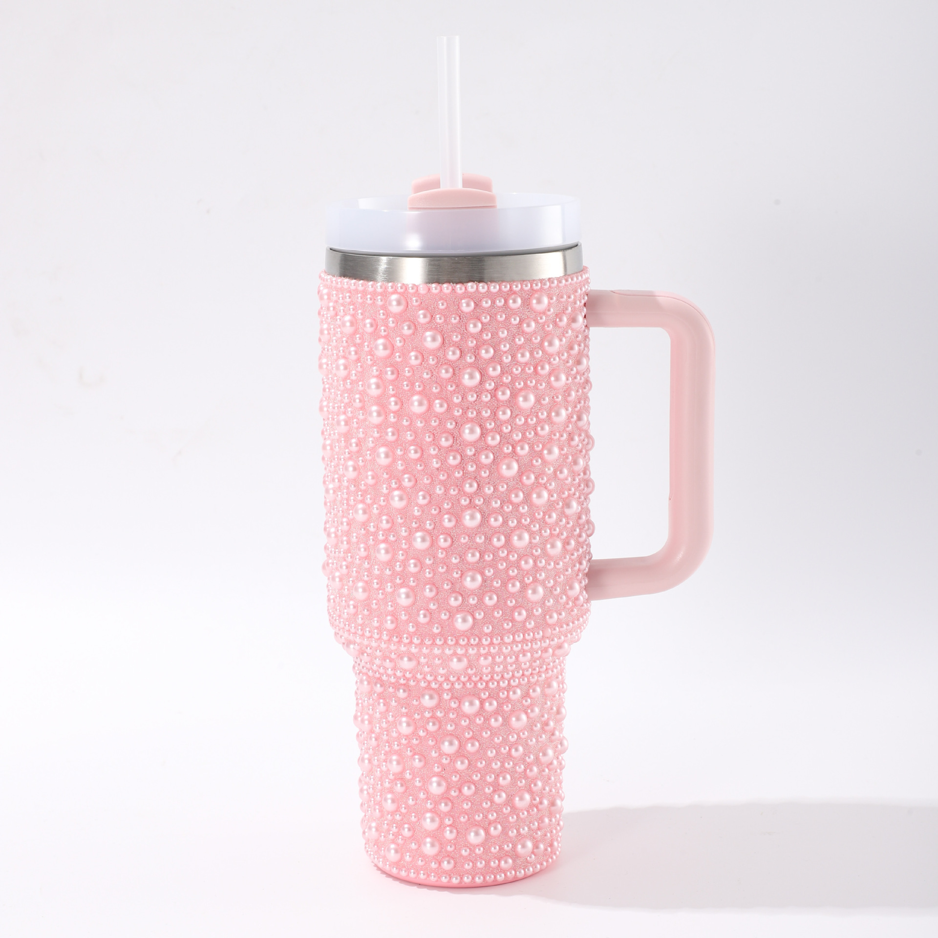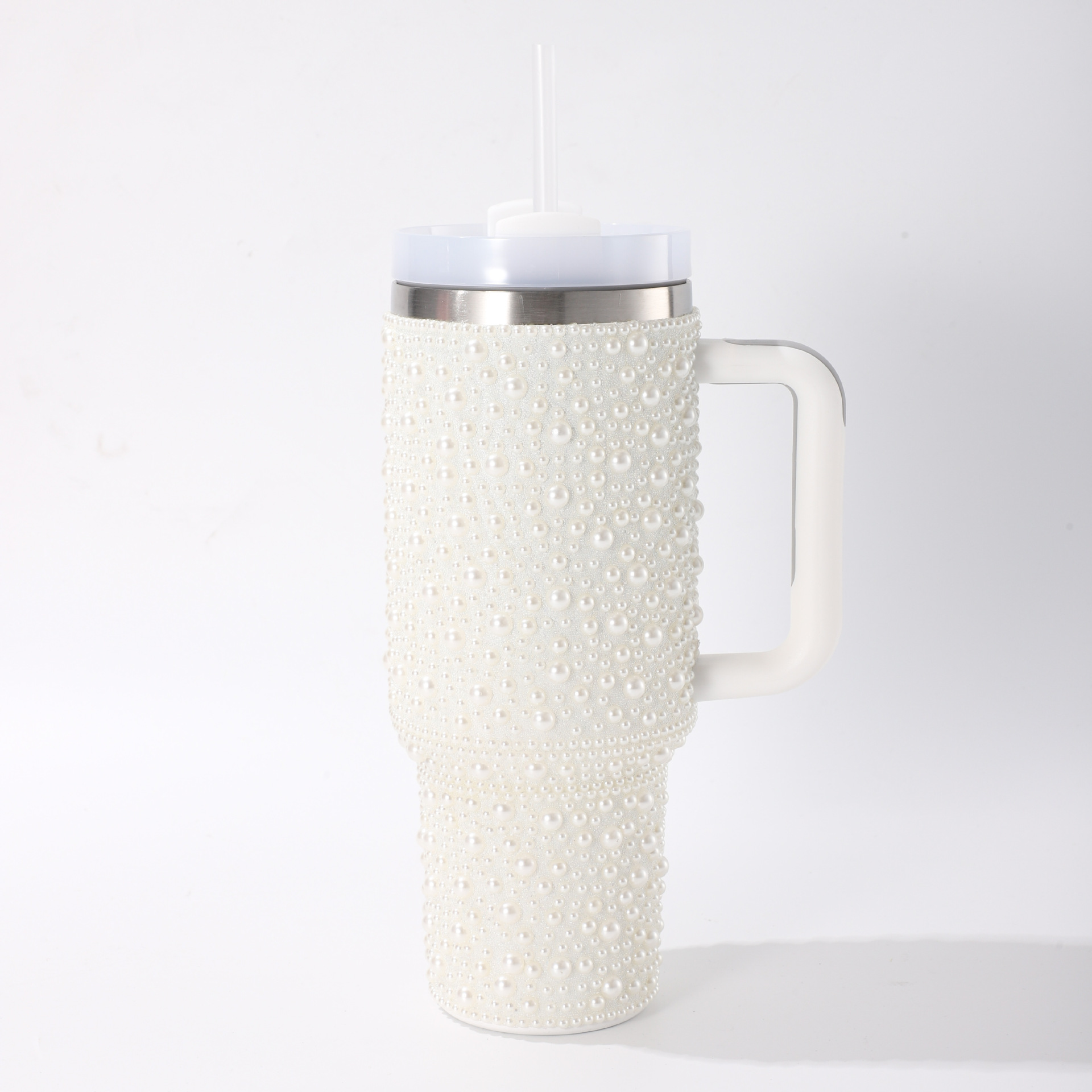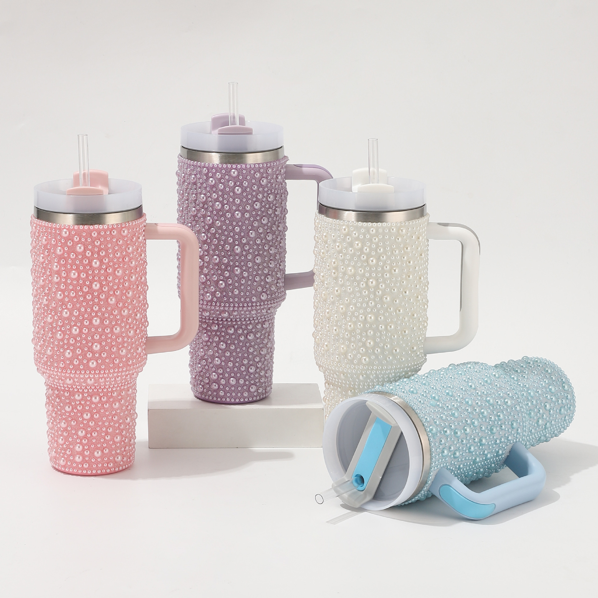 국경 간 진주 40oz 핸들 자동차 컵 304 스테인레스 스틸 보온병 컵 밀짚 자동차 차가운 보호 얼음 컵
