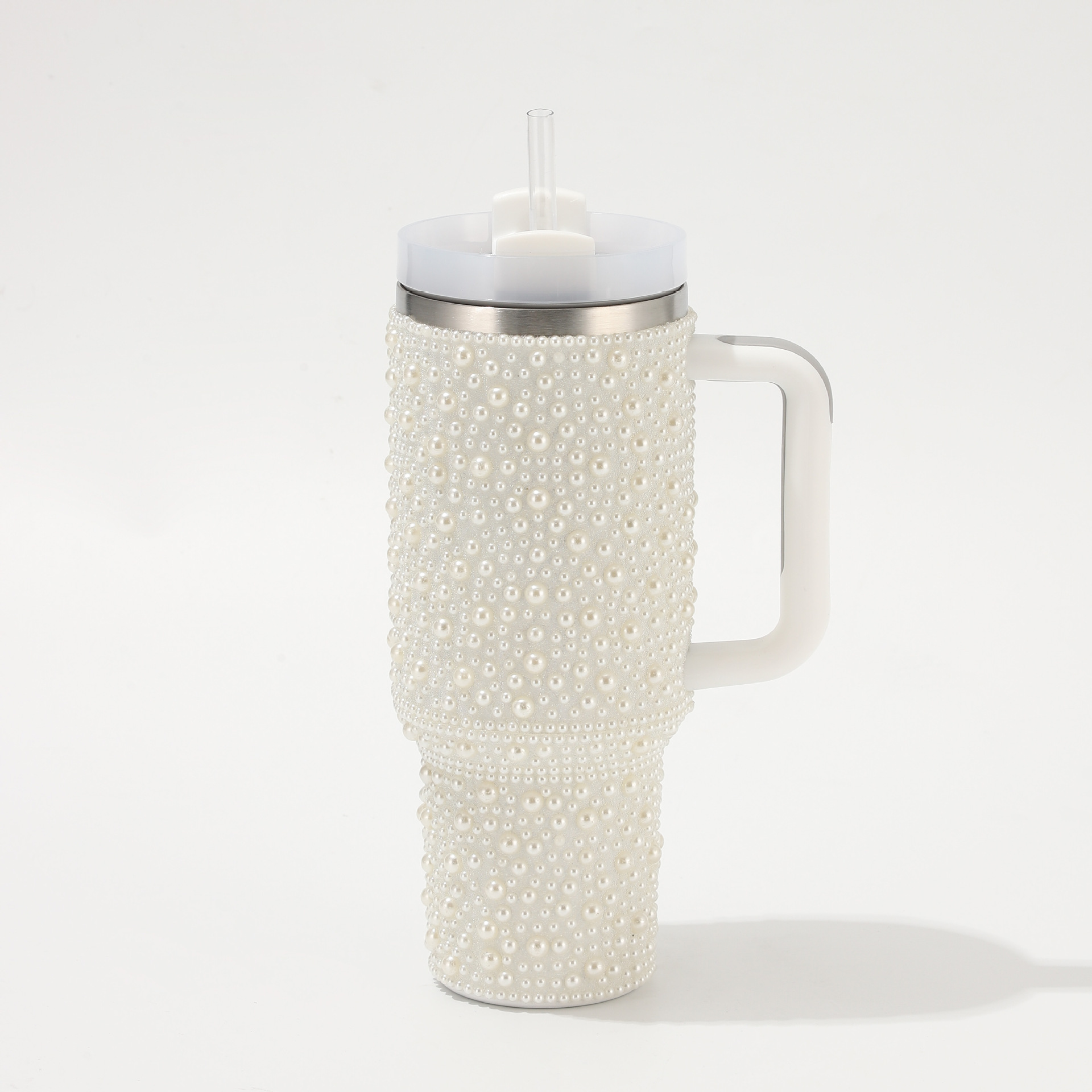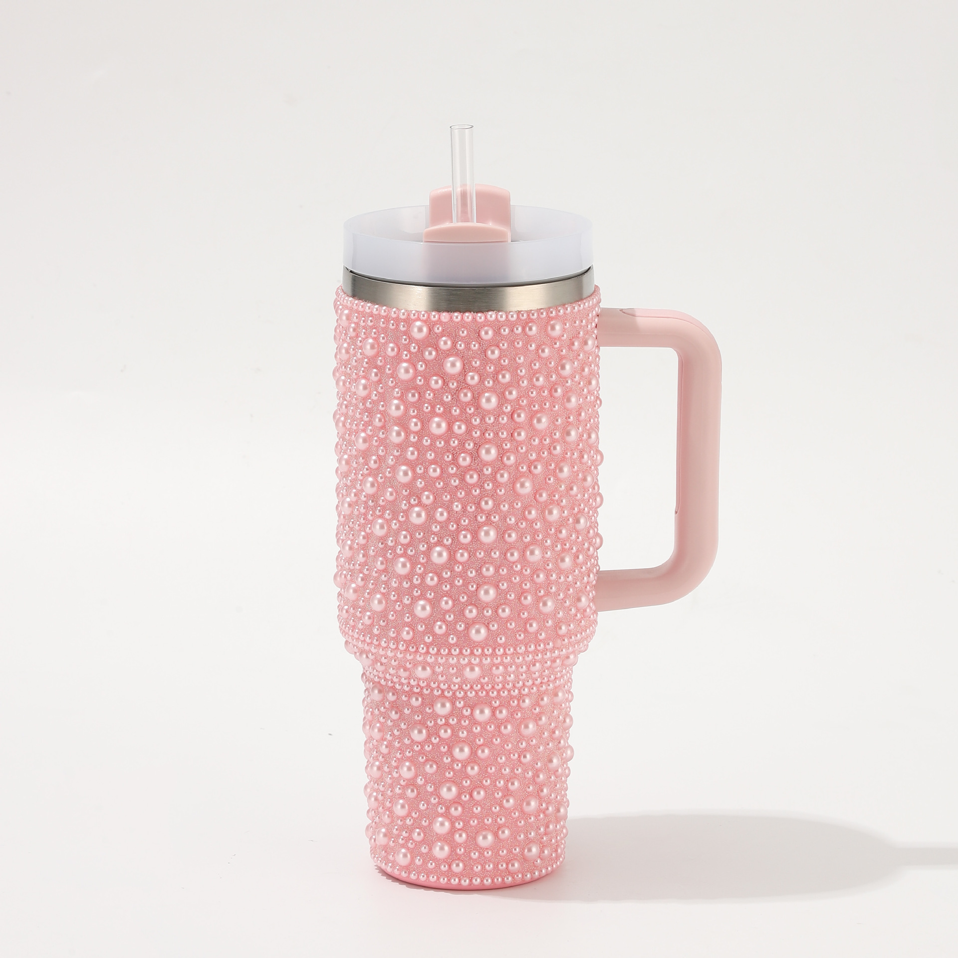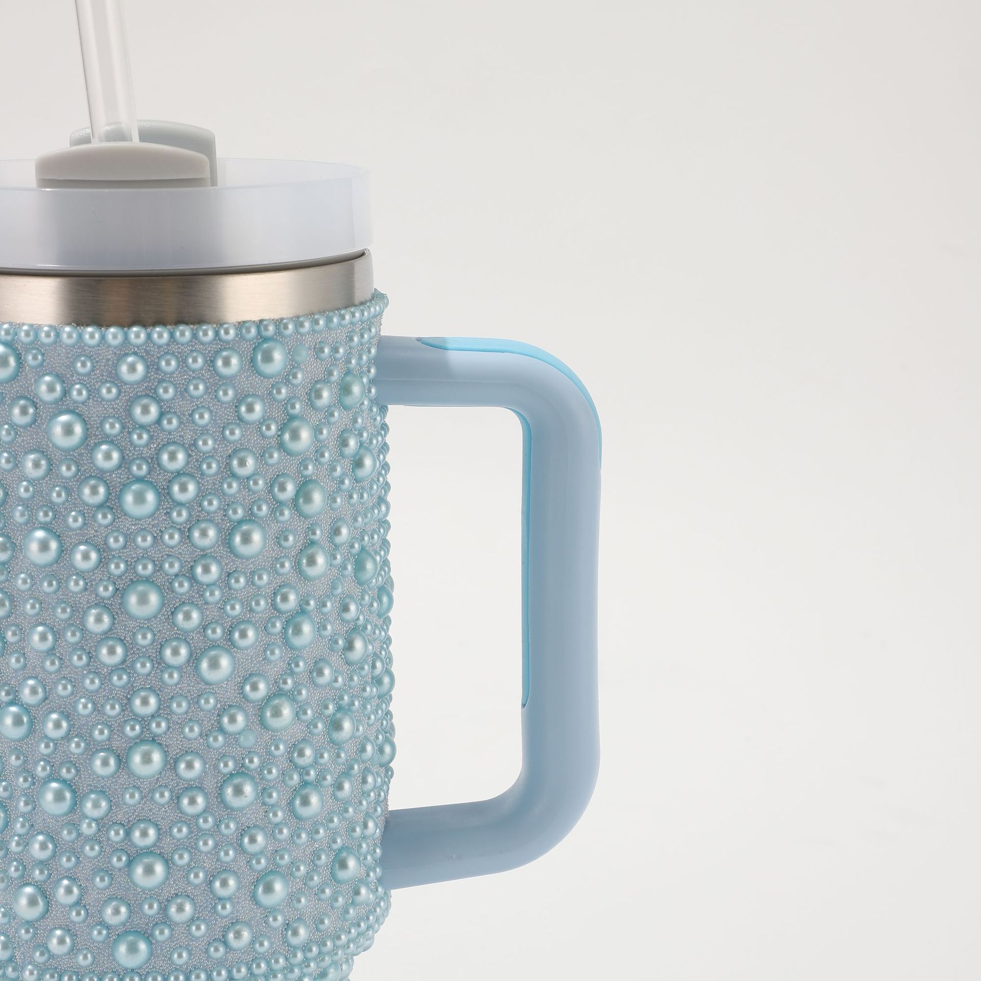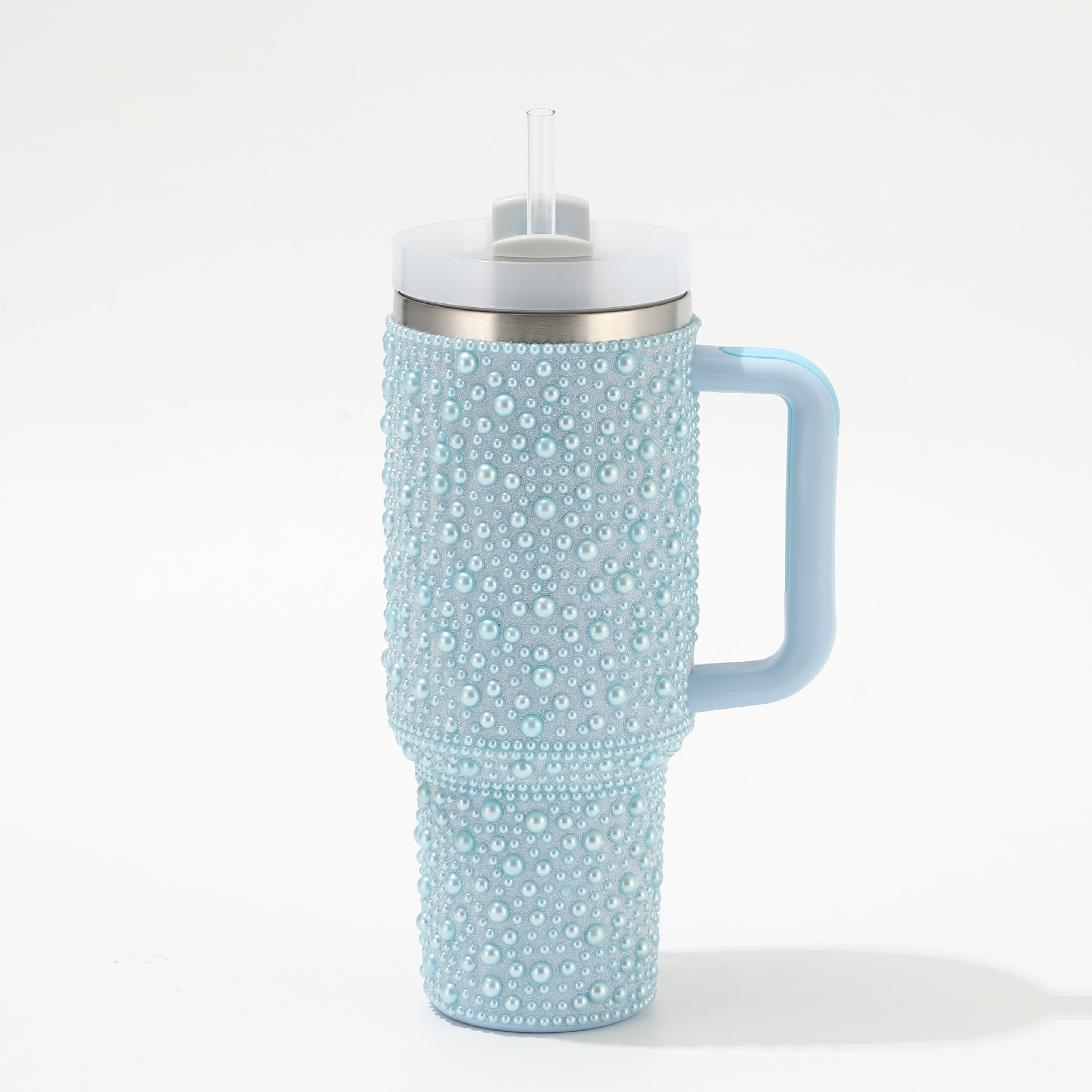 국경 간 진주 40oz 핸들 자동차 컵 304 스테인레스 스틸 보온병 컵 밀짚 자동차 차가운 보호 얼음 컵