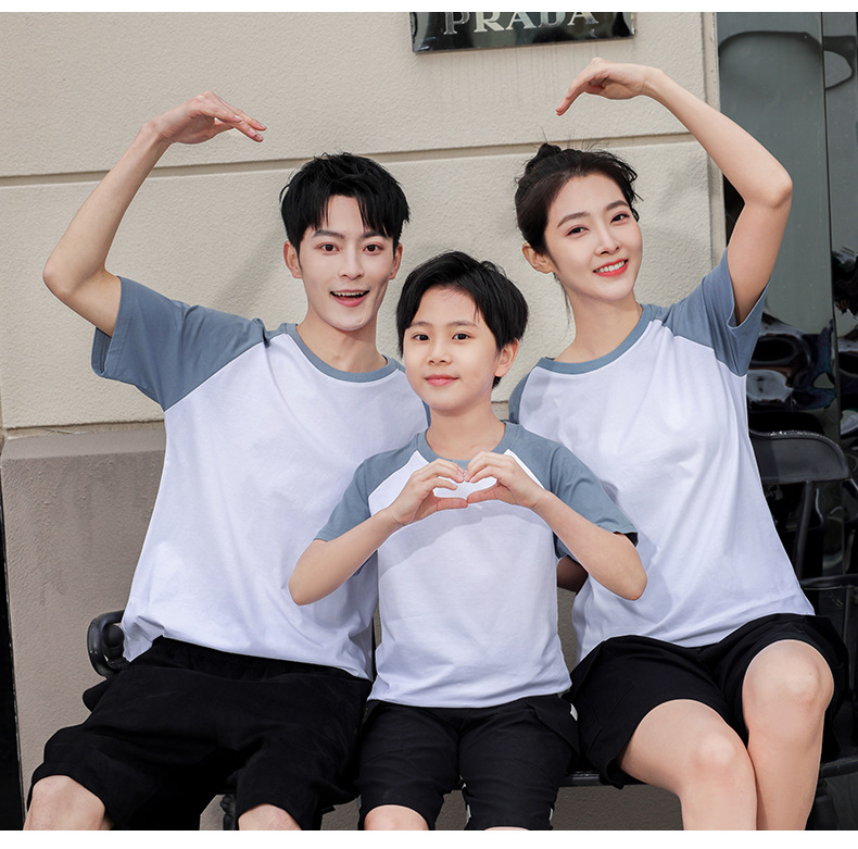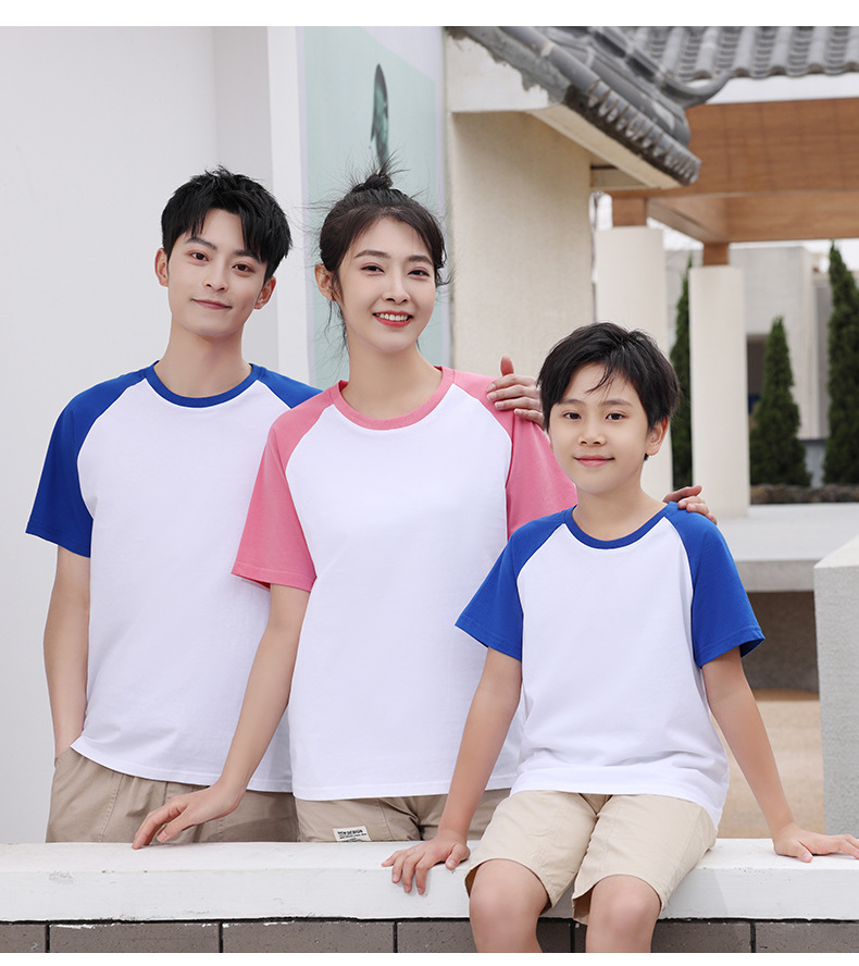 어린이용 래글런 티셔츠, 배색 라운드넥 유니폼, DIY 순면 반팔, 로고 프린팅, 팀워크 문화, 유아용스토어 가기