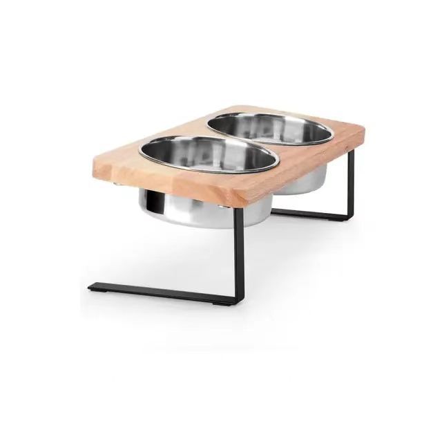 경추를 보호하는 경사형 이중 그릇 개 그릇 랙이 있는 국경 간 목재 애완 동물 식탁 고양이 식기 그릇 랙스토어 가기