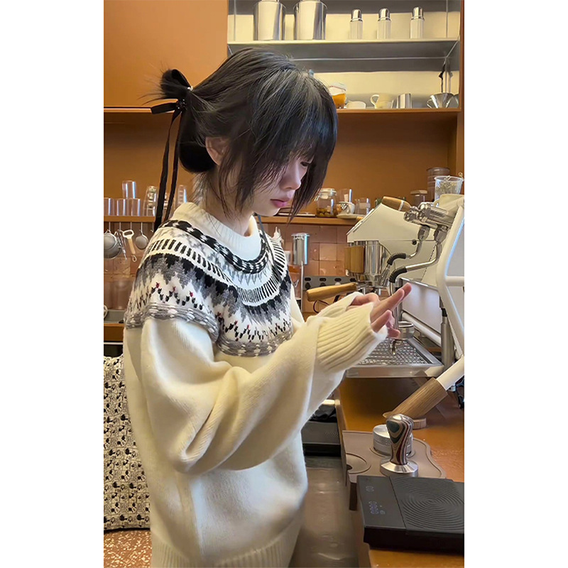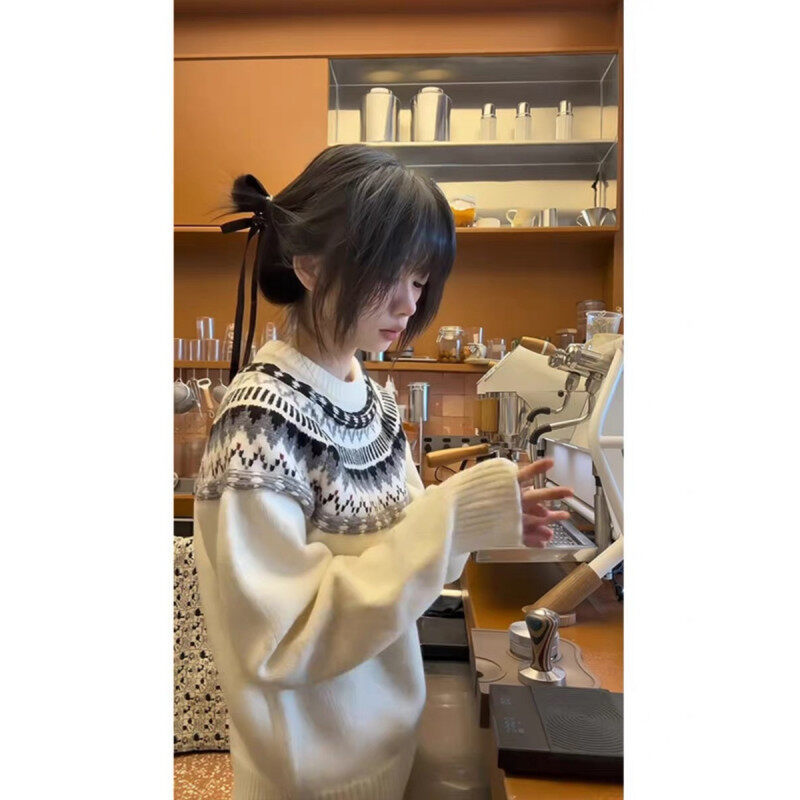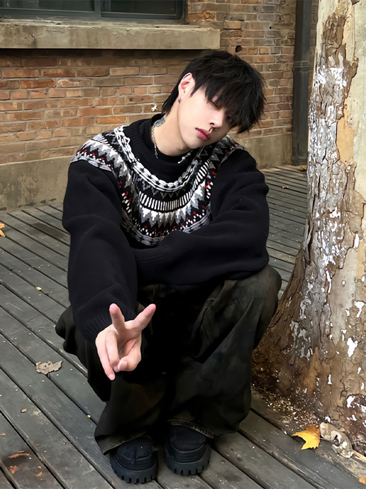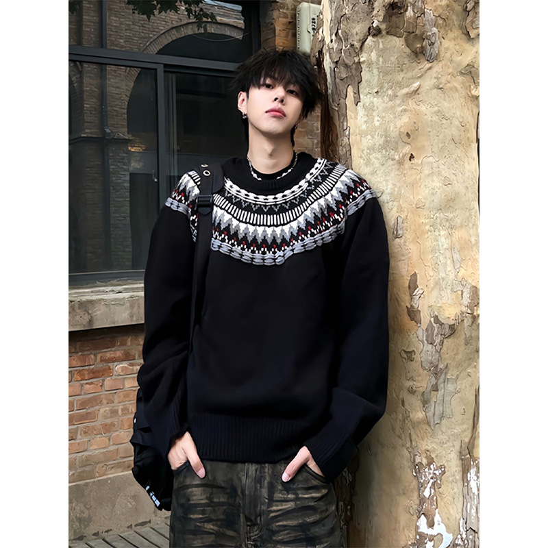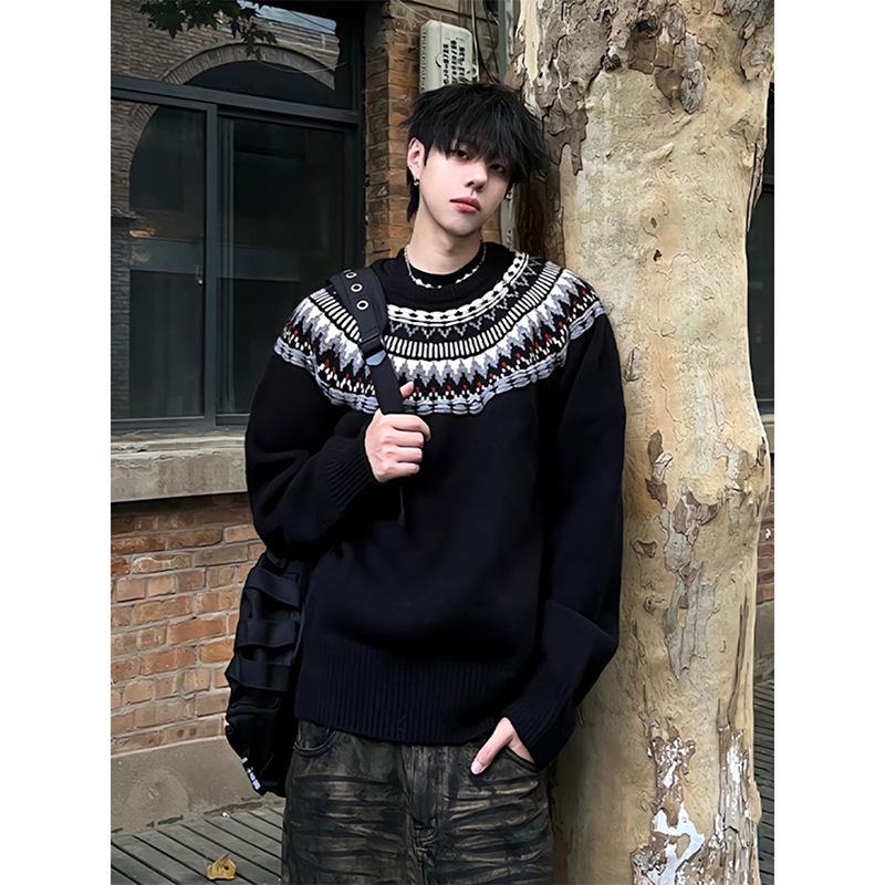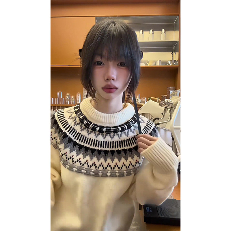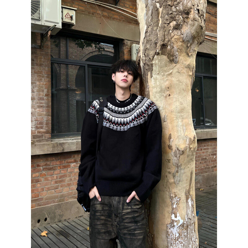 페어 아일랜드 크루 넥 스웨터 남자 겨울 레트로 게으른 스타일 자카드 스웨터 하이 엔드 미국 커플 재킷스토어 가기