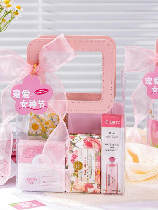 • 부드러운 분홍색 사각형, 작은 크기, 너비 16cm, 높이 18cm, 측면 너비 8cm, 작은 손잡이